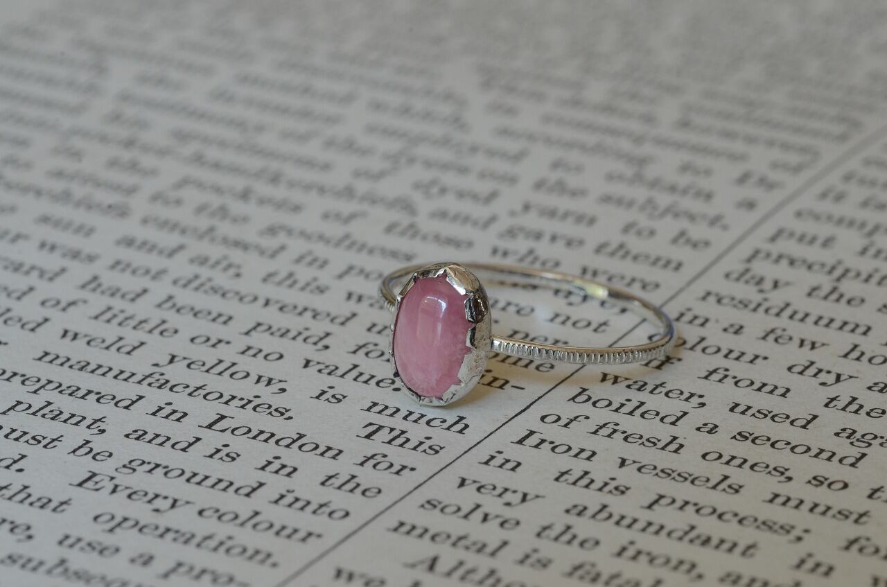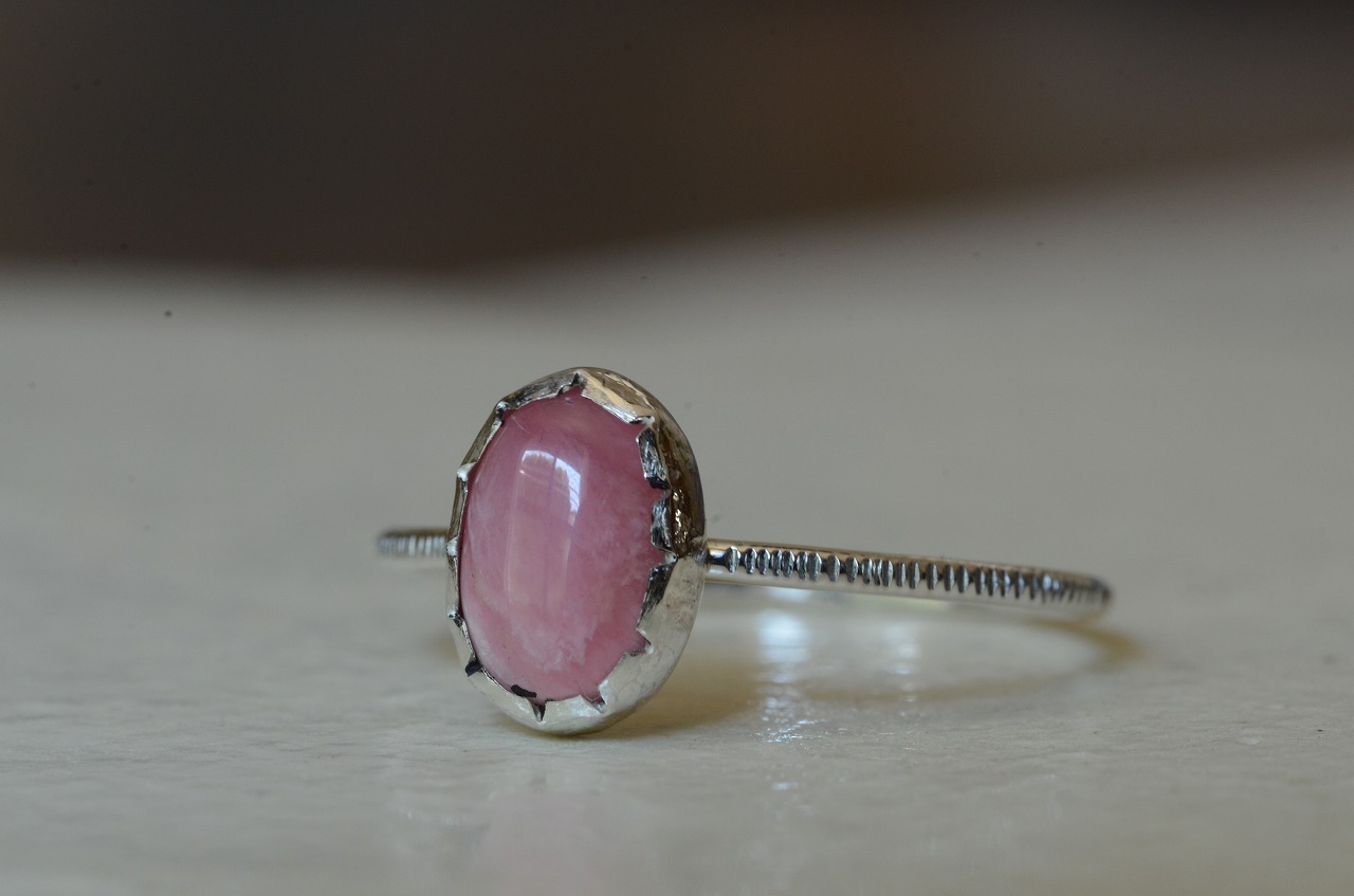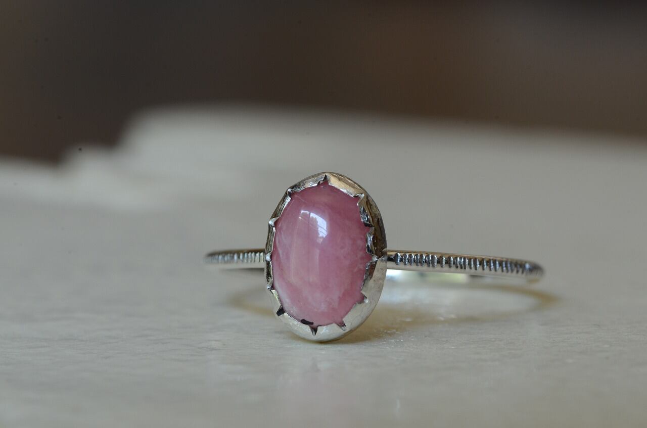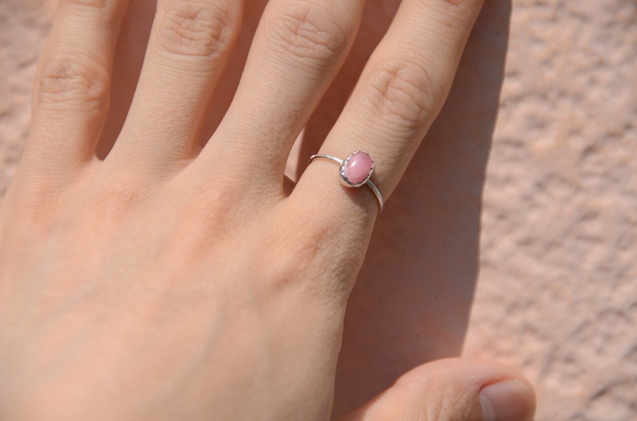 今回はインカローズとシルバーの組み合わせのリングで前作よりリングの幅を細身にして、ミルを打たずに刻みを入れてより繊細で華奢な印象に仕上げることができました。