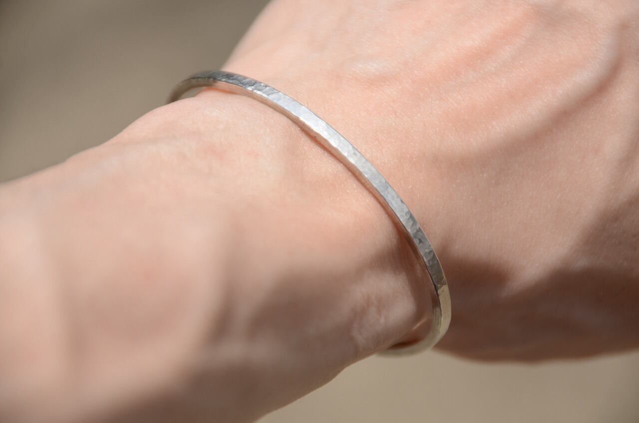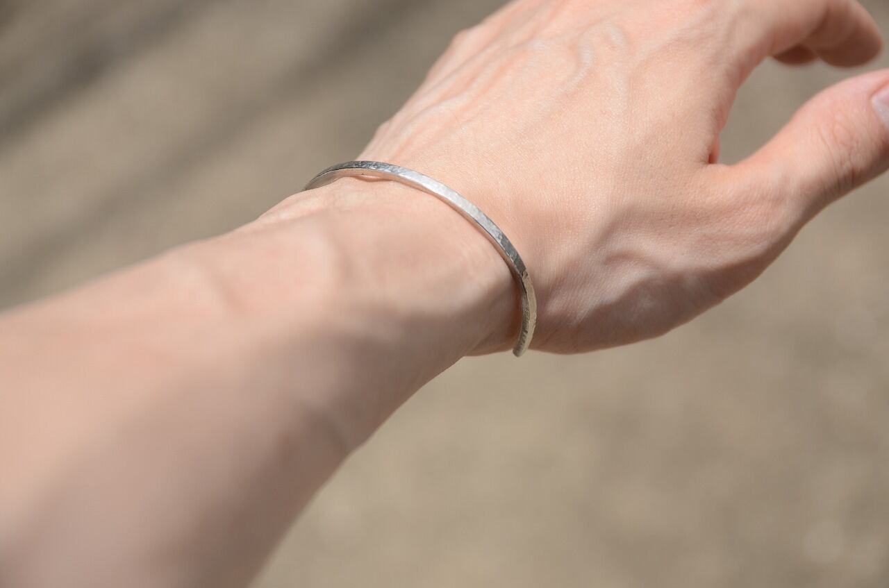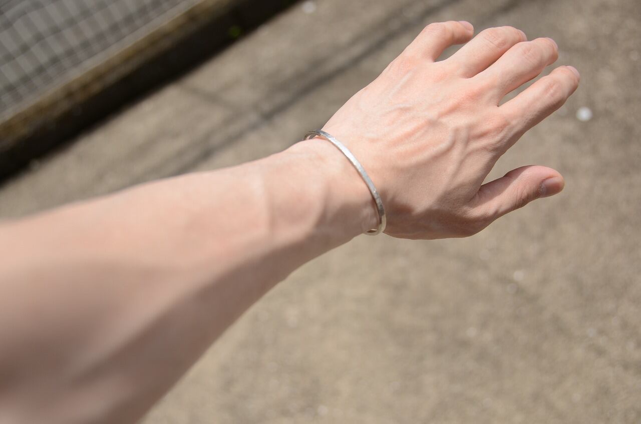 とってもシンプルなので男女関係なく身に着けやすいですし細身のバングルなので他のバングルなどと重ね着けをしてもいいかもしれません。