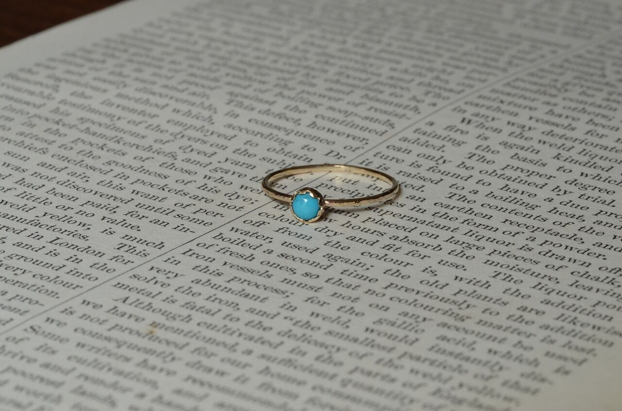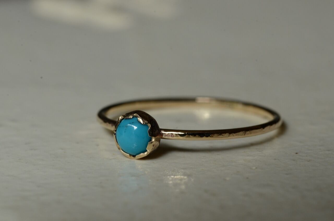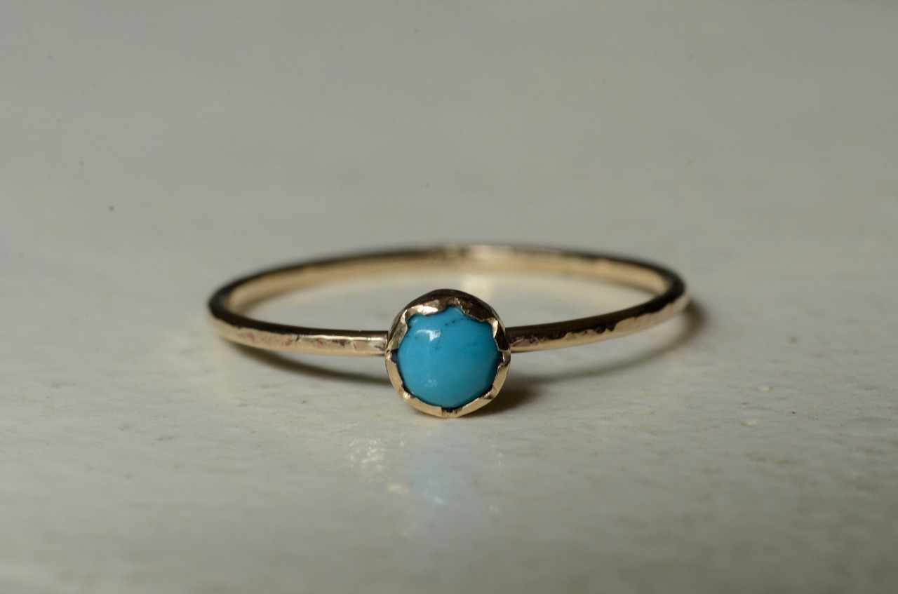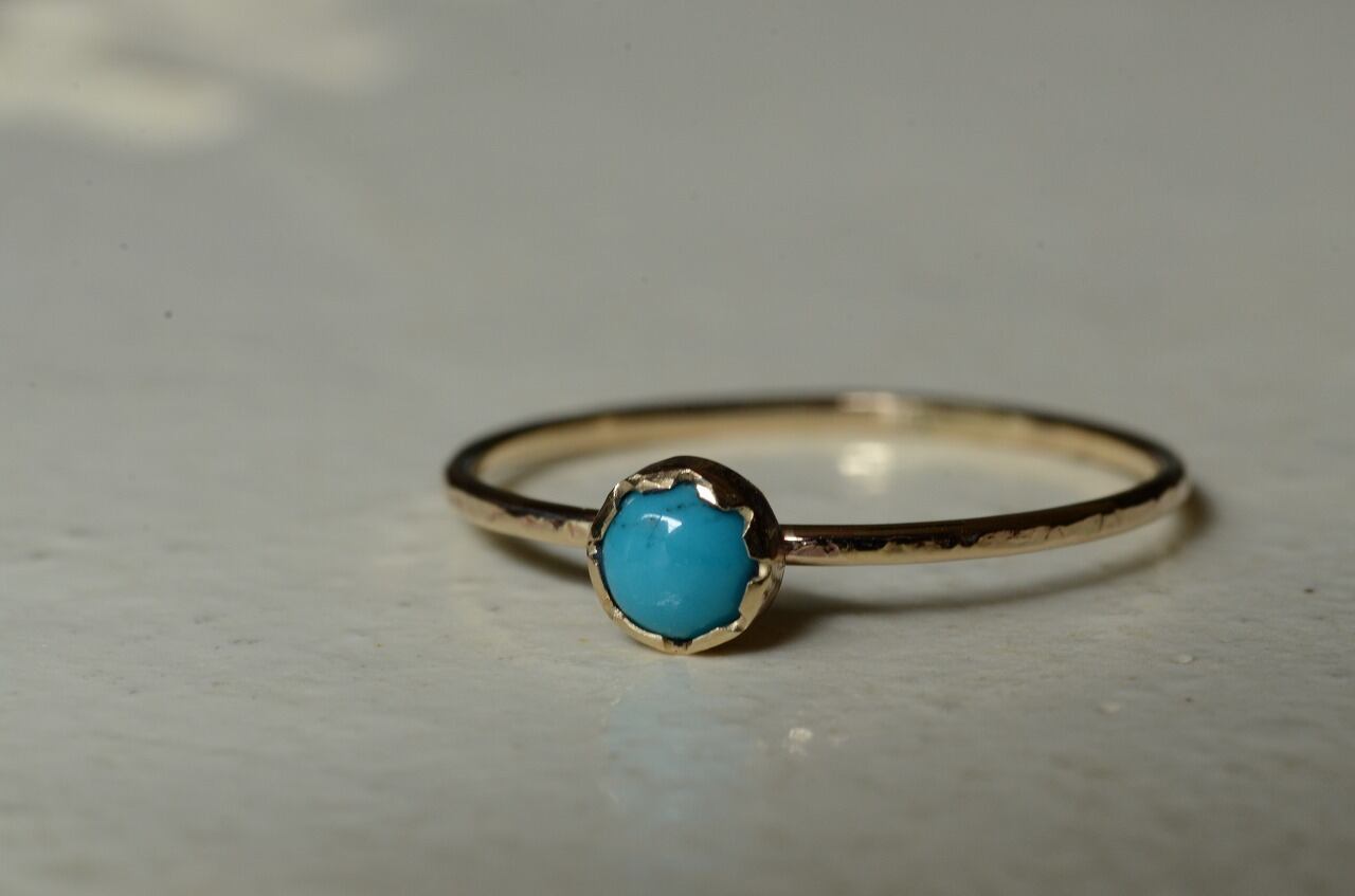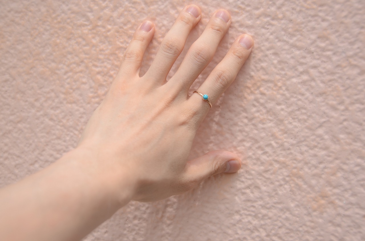 本来は12月のお誕生石であるターコイズですが印象的には夏の印象が強い石でもあります。美しいターコイズブルーは海や空を思わせてくれてそれだけで気分がなんだか明るくなります。明るい輝きの10金と合わせた今回の作品をじっくりと楽しんでもらえたら幸いです