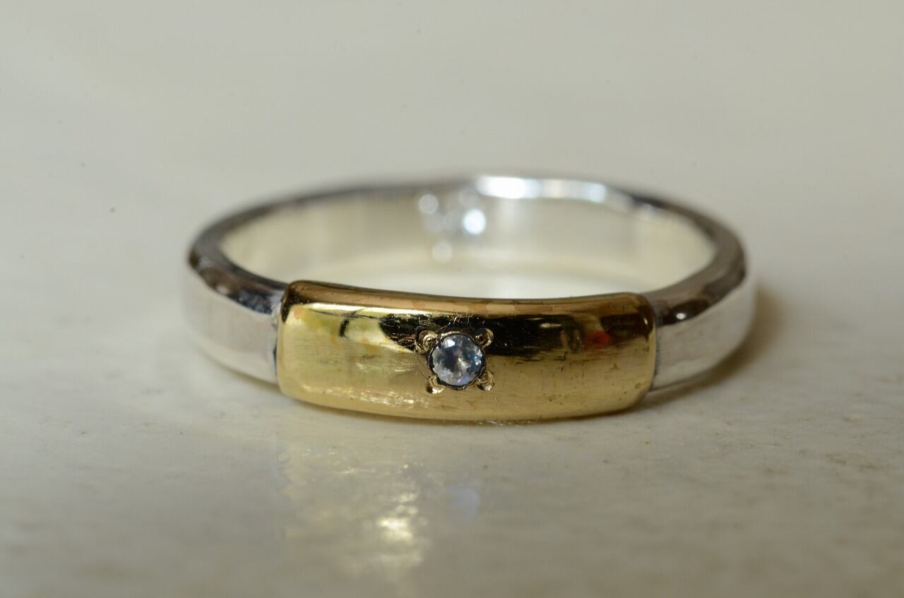 今回はブルームーンストーンを表に留めて内側にホワイトサファイアを留めて制作しております。