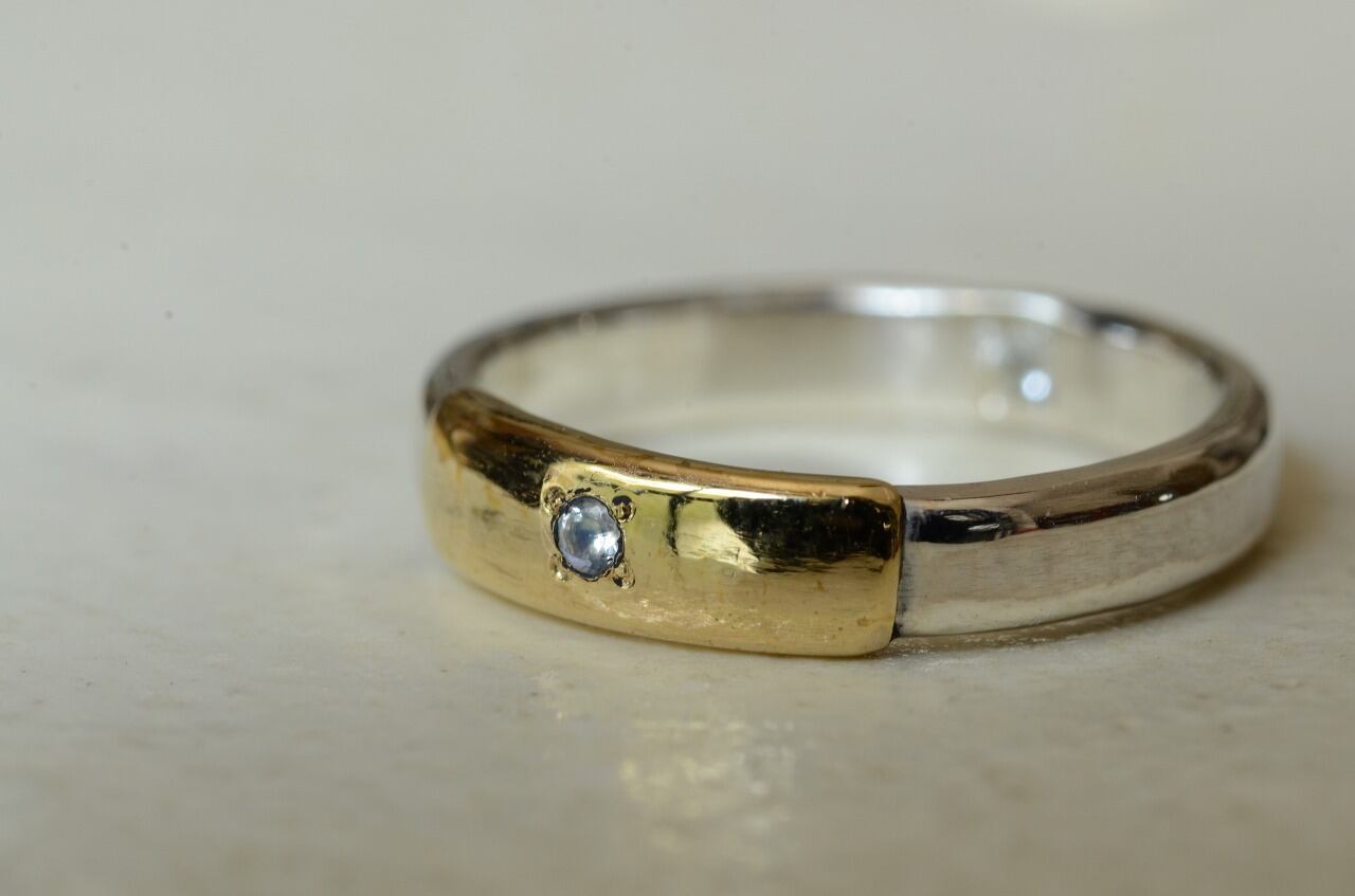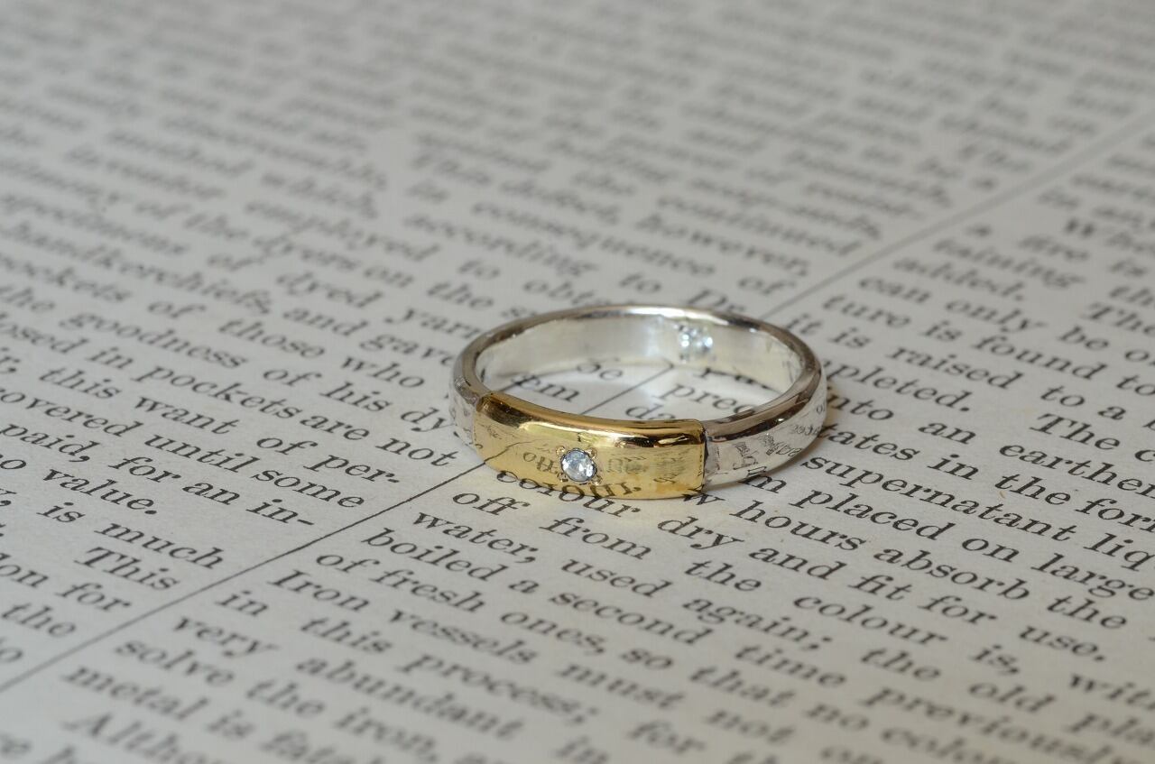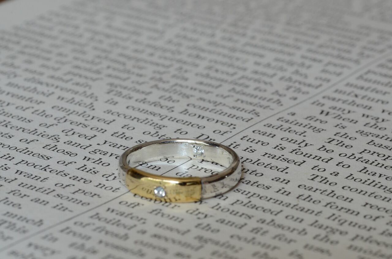 『何かを刻む物語』をベースに制作を行いリングの表面に石を一つ留めて、リングの内側にも一つ石を留めて制作を行いました。