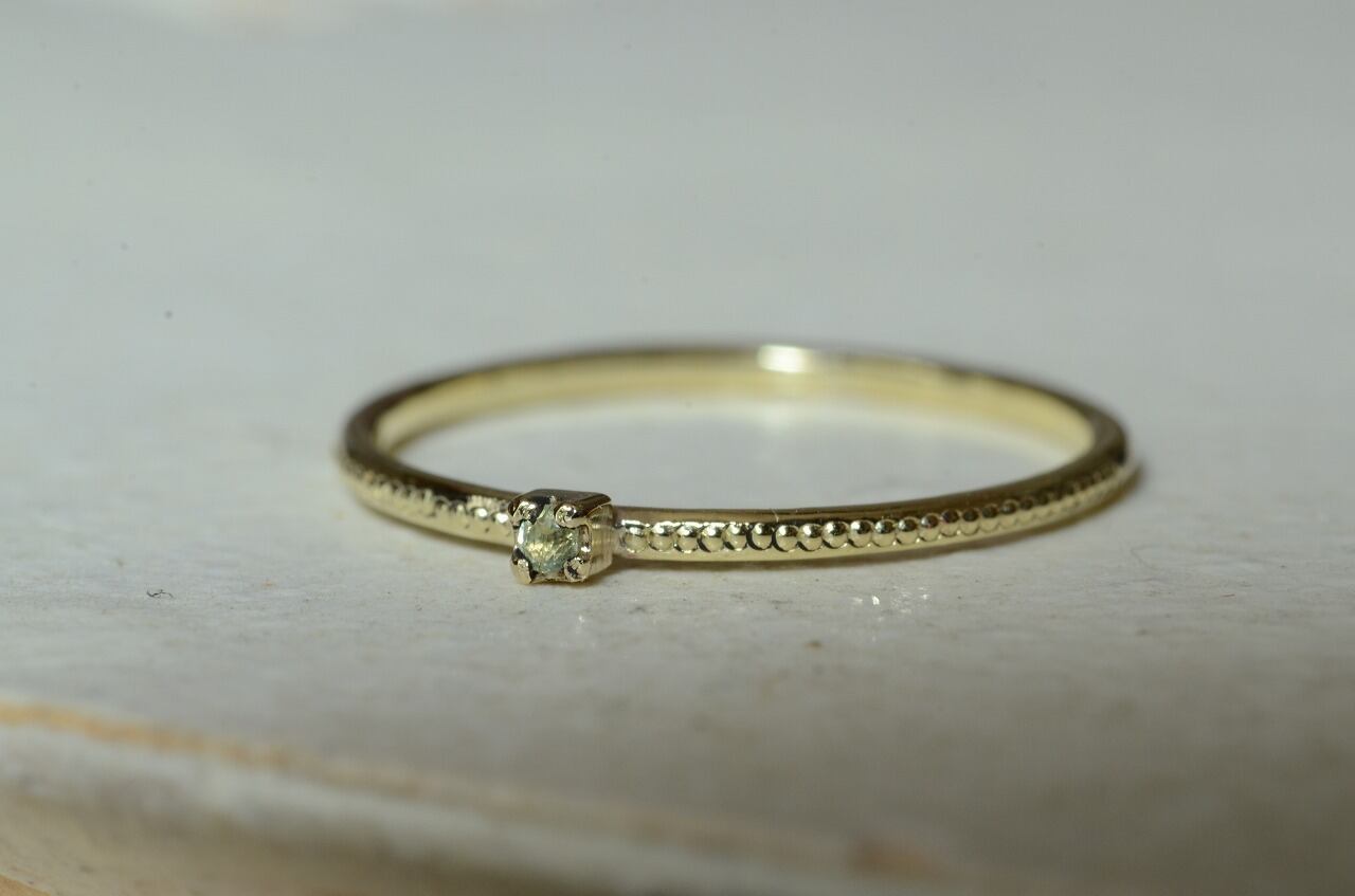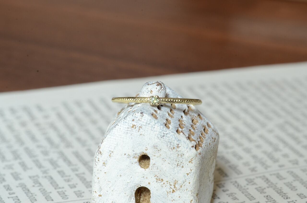 新緑色のイメージのペリドットと真鍮の組み合わせ。