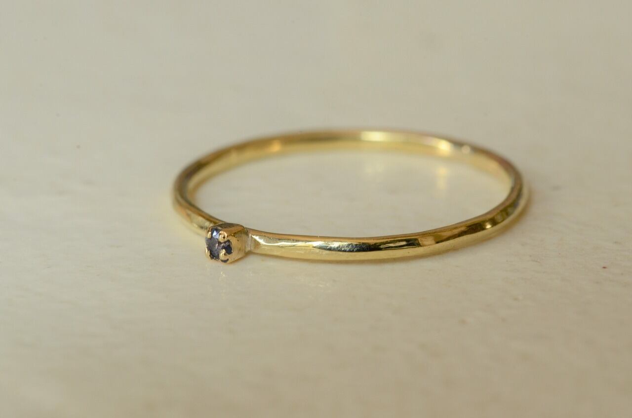 今回は真鍮とアイオライトの組み合わせのリングです。