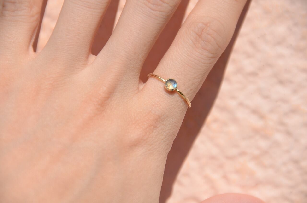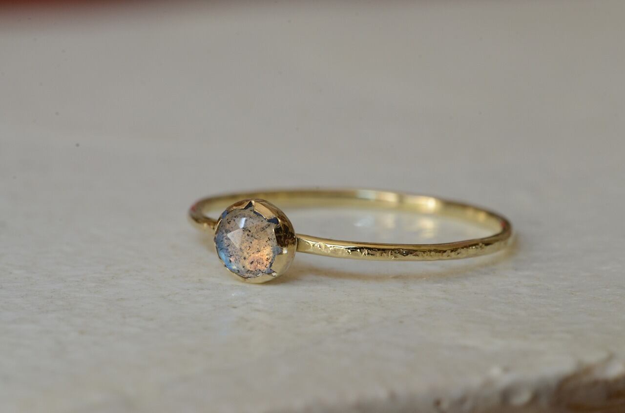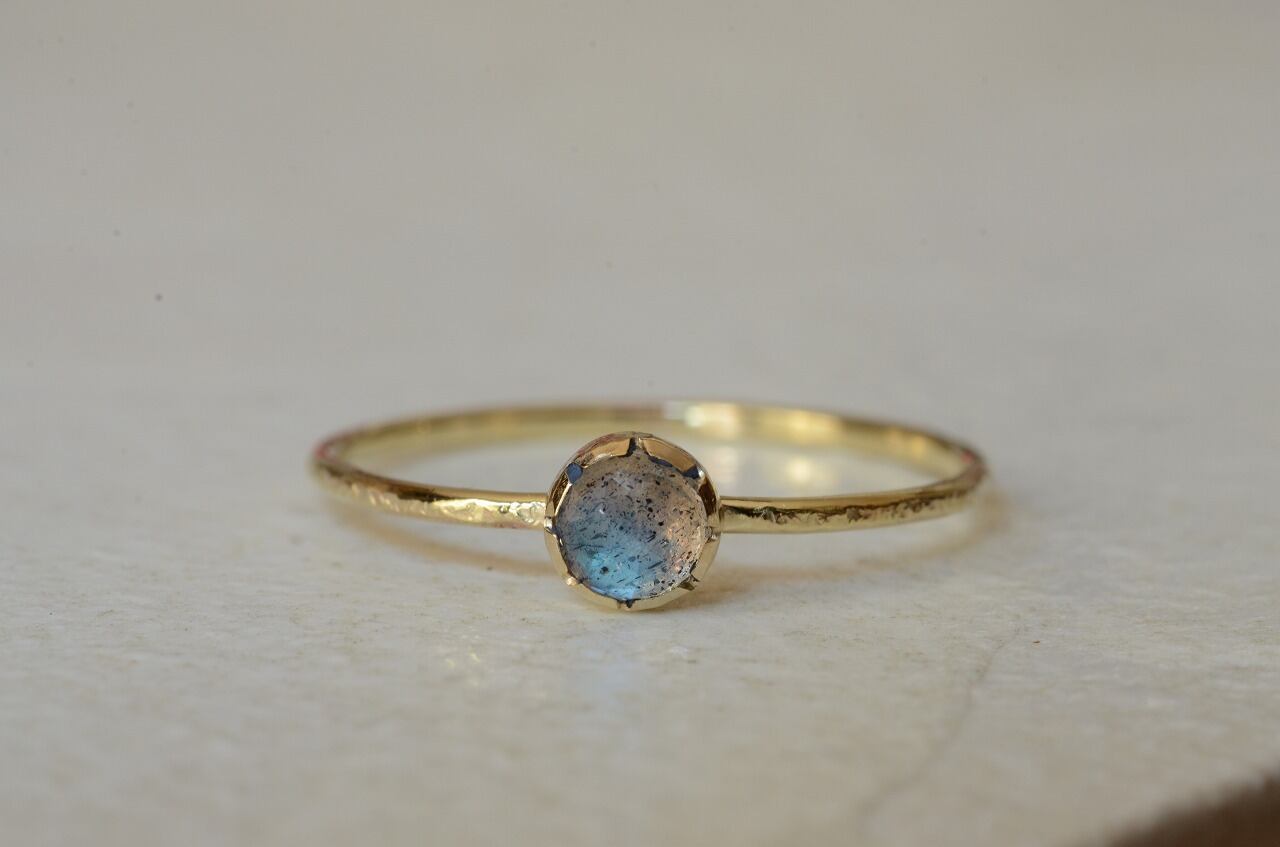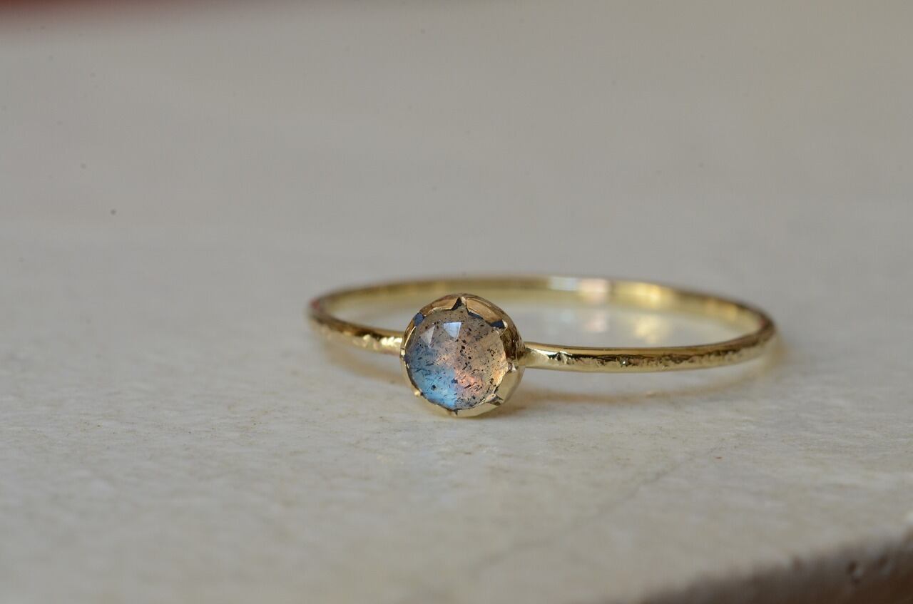 今回はローズカットのラブラドライトと真鍮の組み合わせのリングです