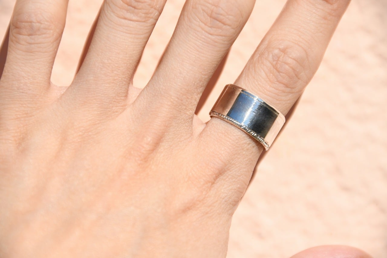 サイズは7号から20号でお作りいたします、通常の細身のリングよりも1~2サイズほど大きめのサイズでご注文いただいたほうがいいかと思います。