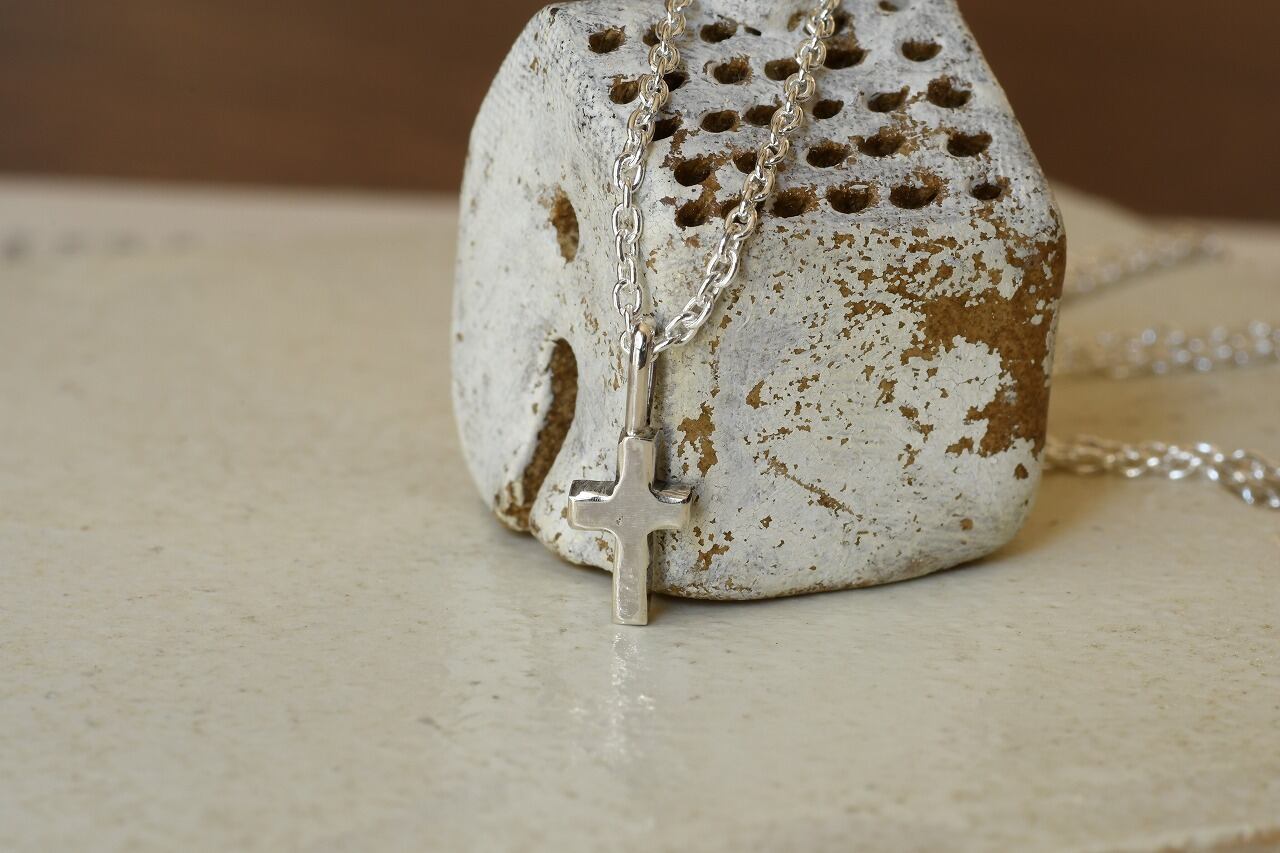 今回は普段よりすこし厚めの銀板を糸鋸で切り出してクロスモチーフを作り