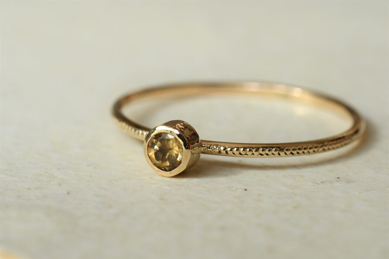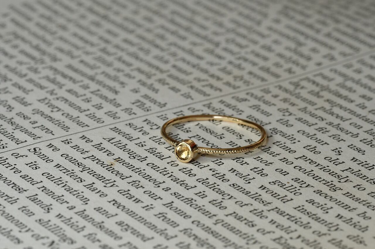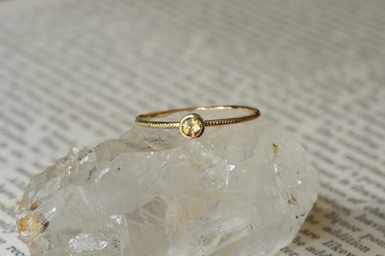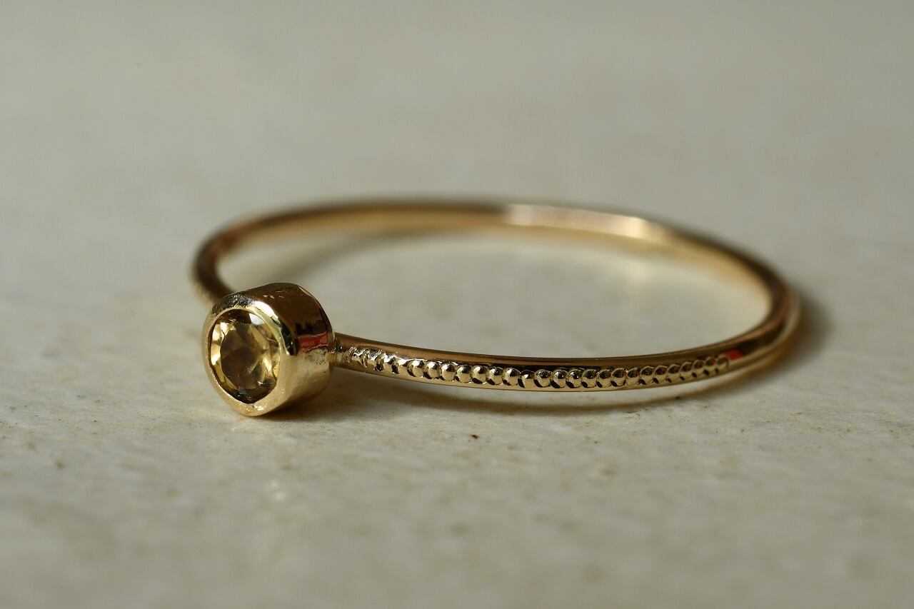 今回はカジュアルに楽しめるインペリアルトパーズが手に入ったので太陽の光の雰囲気を同時に楽しめるように10金と組み合わせて制作を行いました