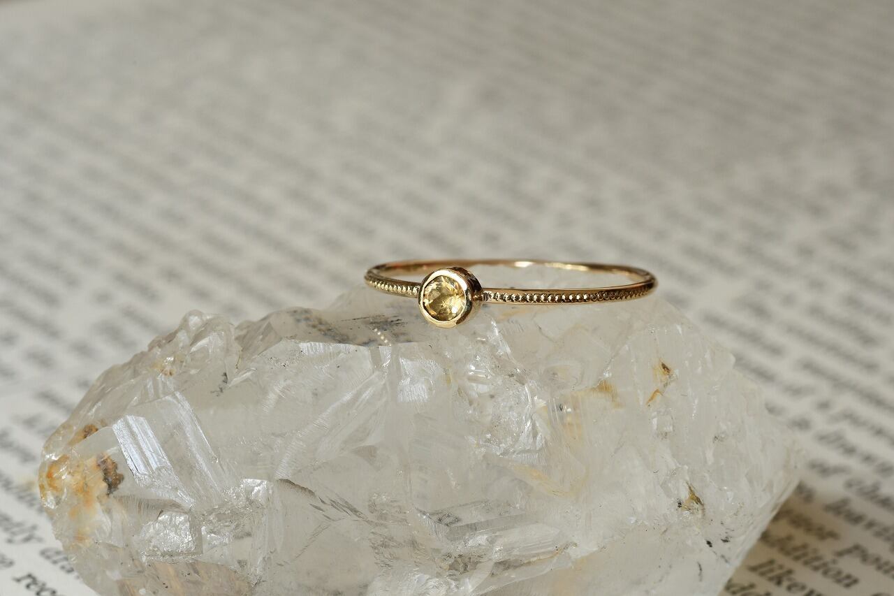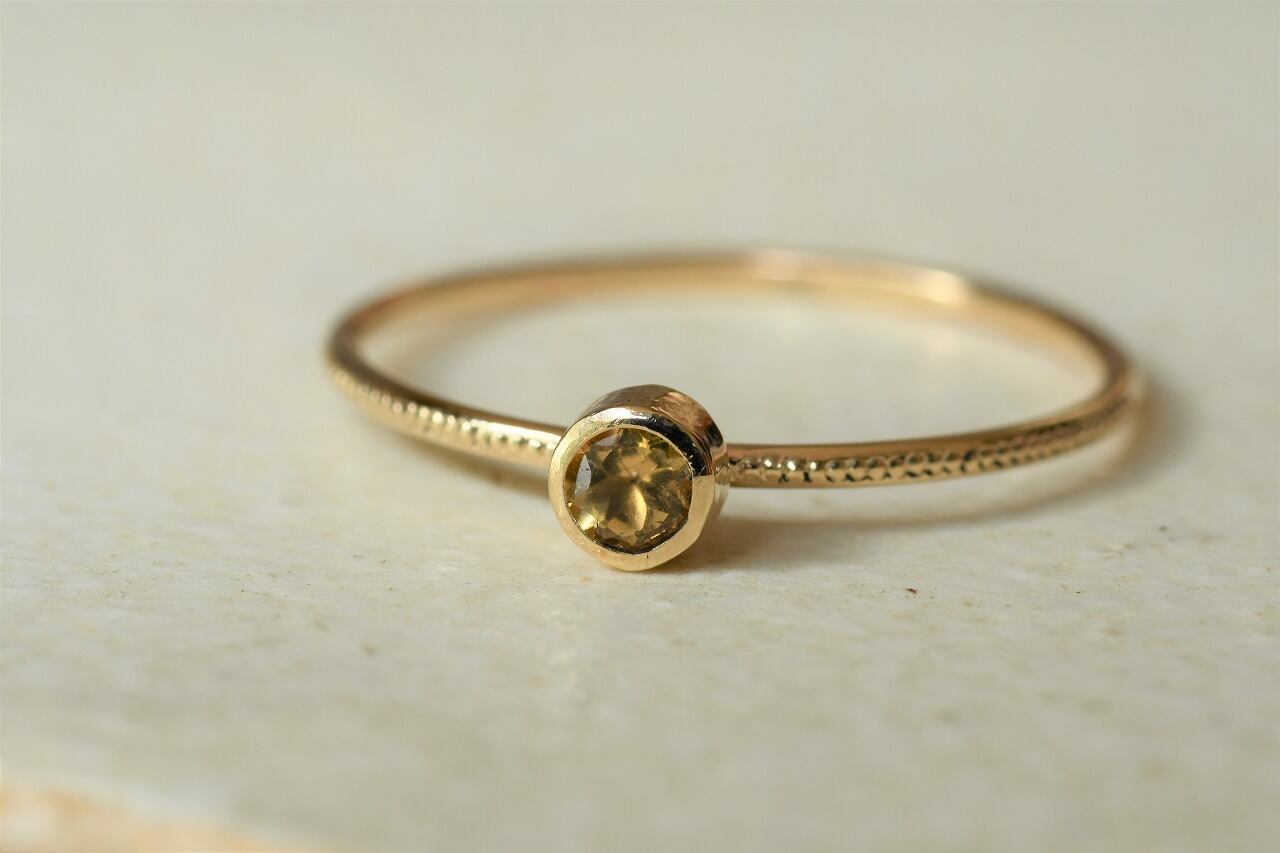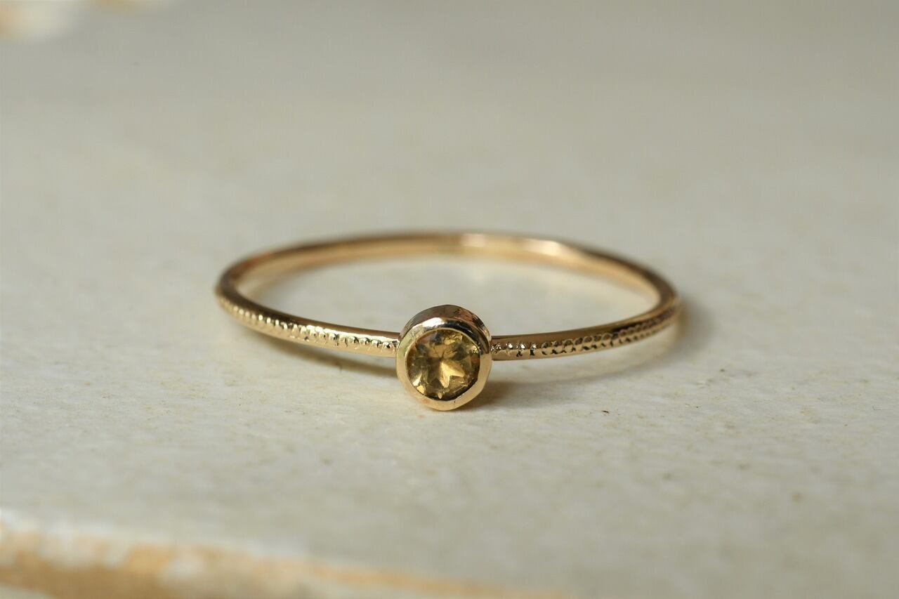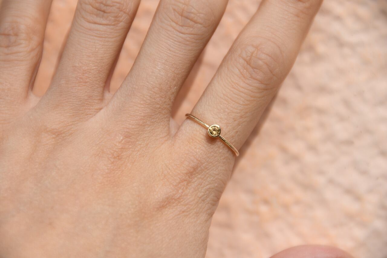 今回はカジュアルに楽しめるインペリアルトパーズが手に入ったので太陽の光の雰囲気を同時に楽しめるように10金と組み合わせて制作を行いました
