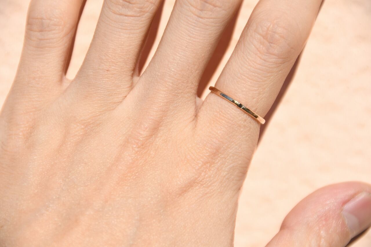 リングの幅を細くして、小さな天然石を一粒留めるそんな作品です。