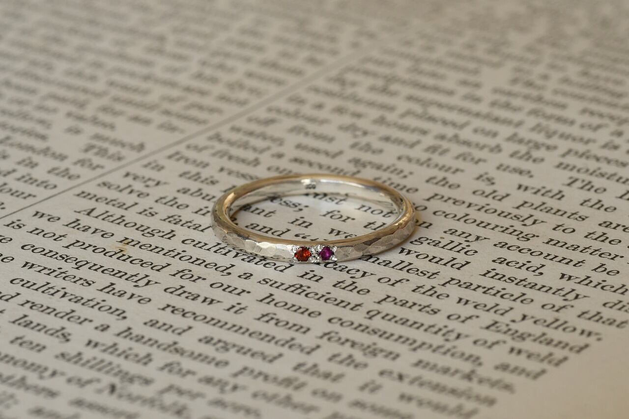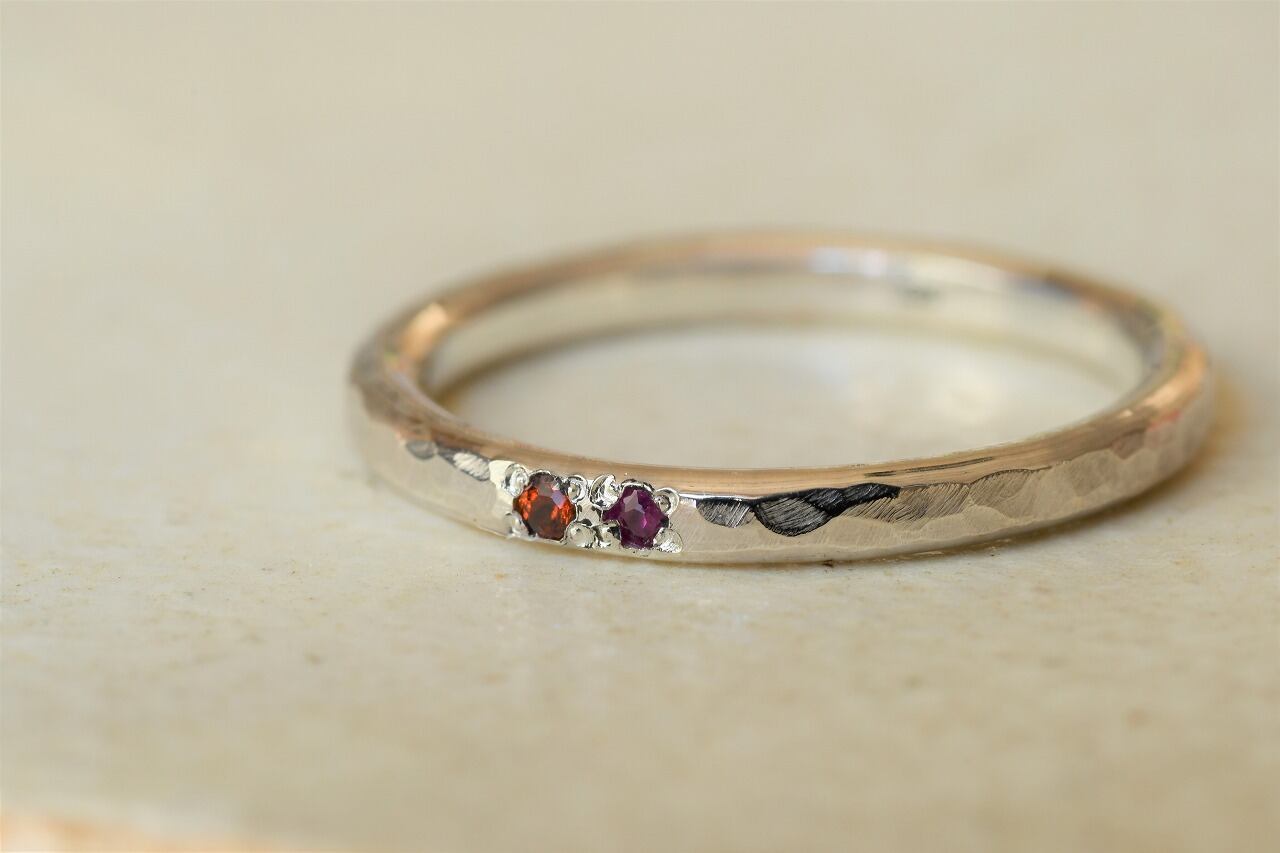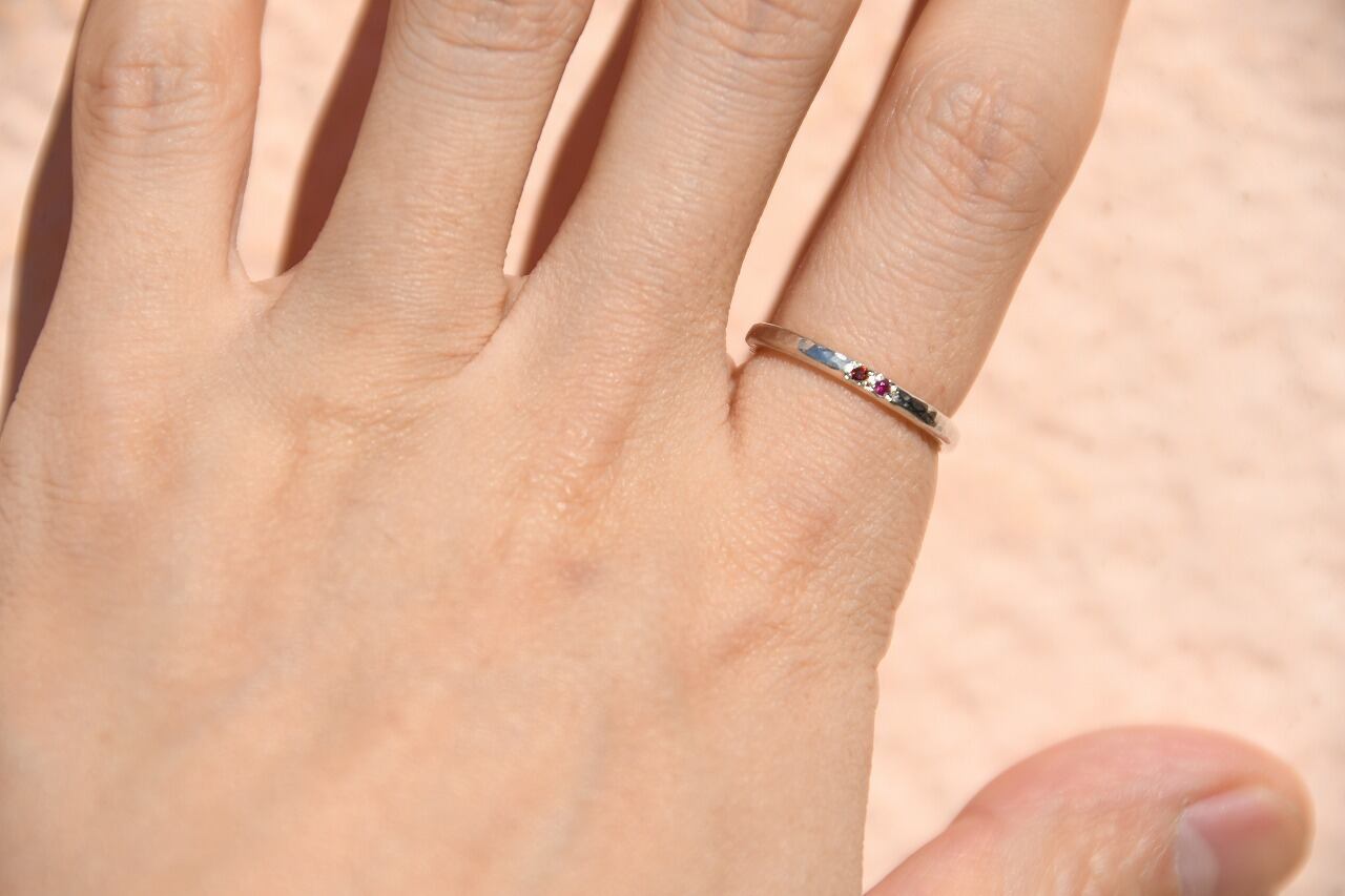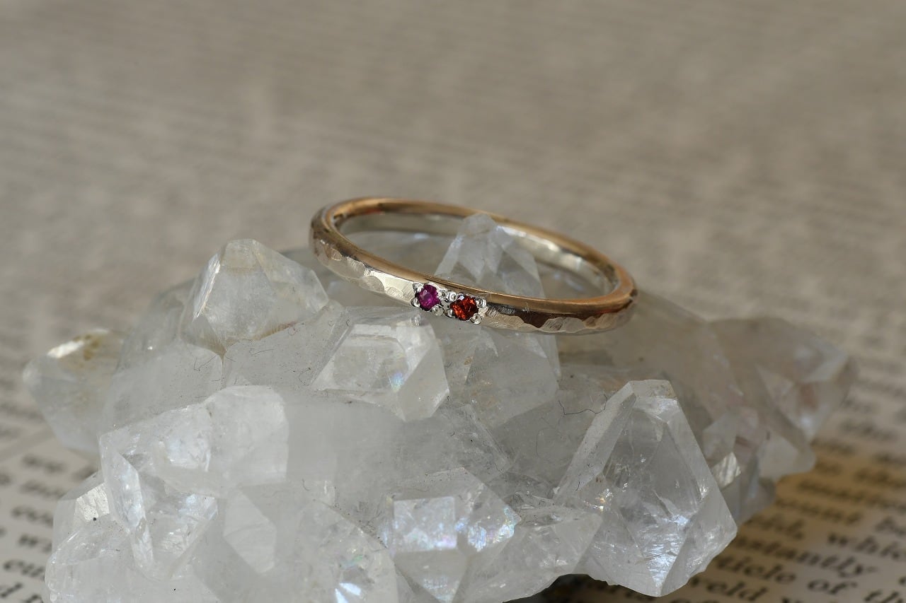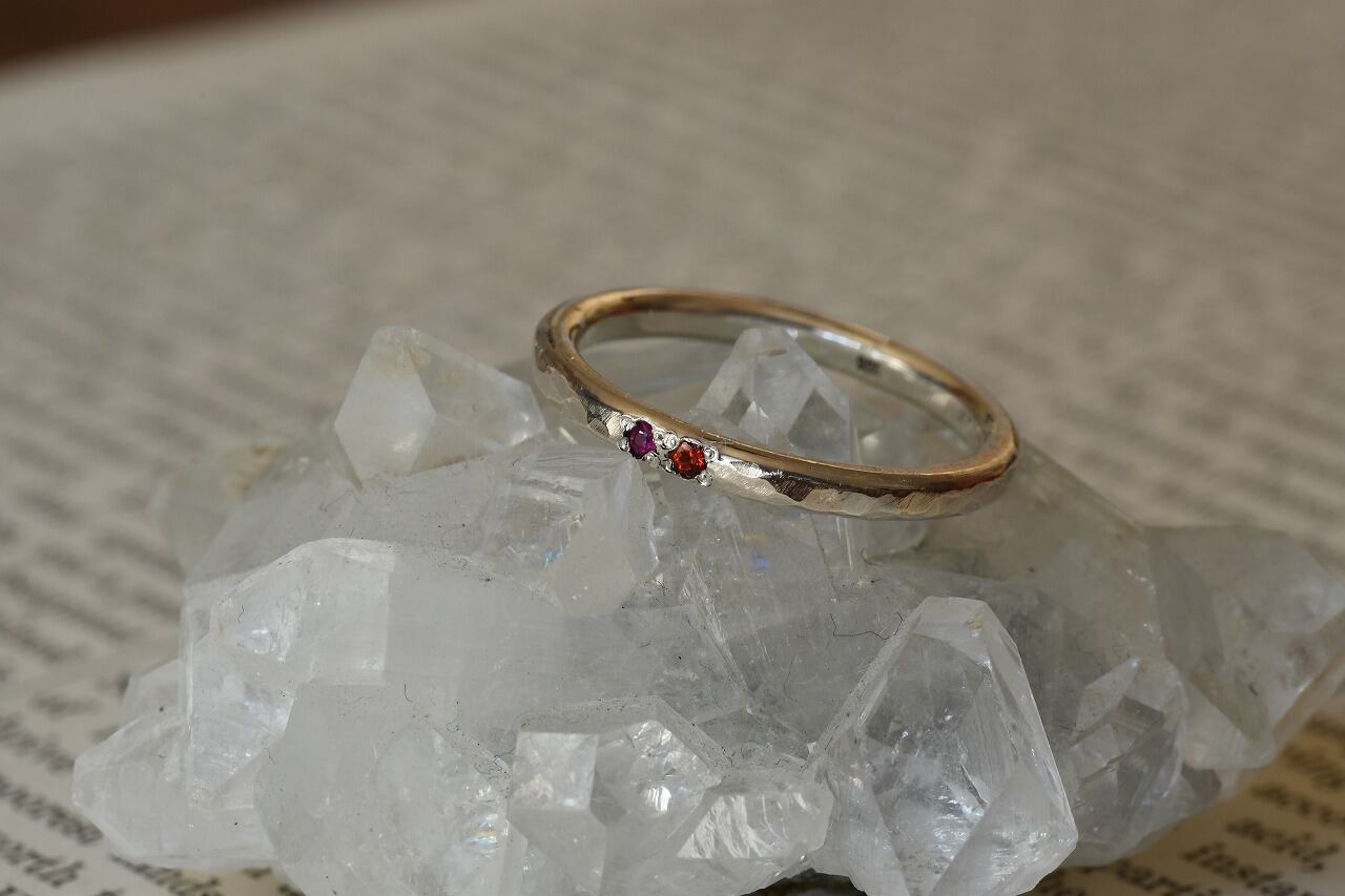 今回はルビーとガーネットの二つの石を使って制作を行いました