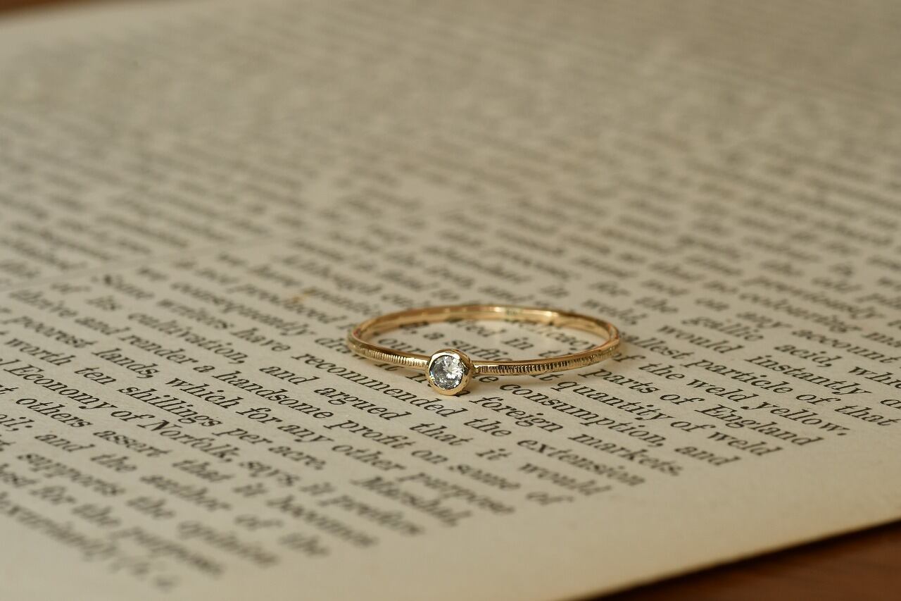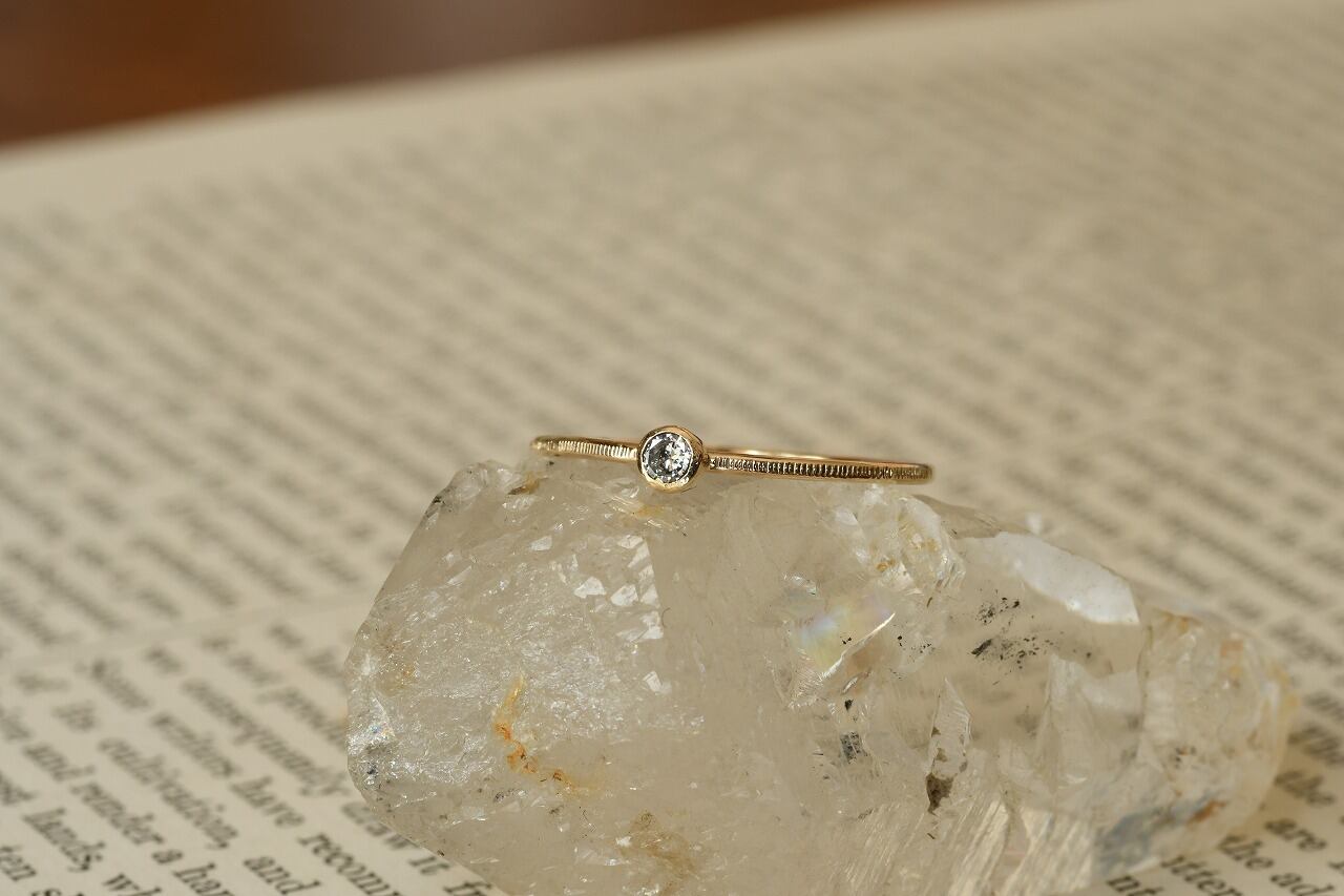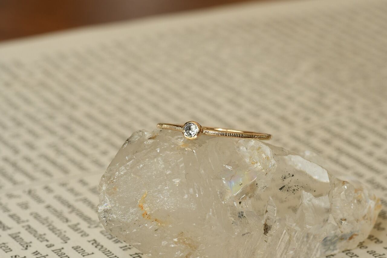 前作はリング部分にミルを打って制作を行いましたが今回はミルではなく刻みデザインと槌目の組み合わせにしてみました。きらりと輝く美しい光をじっくりと楽しんでもらえたら幸いです