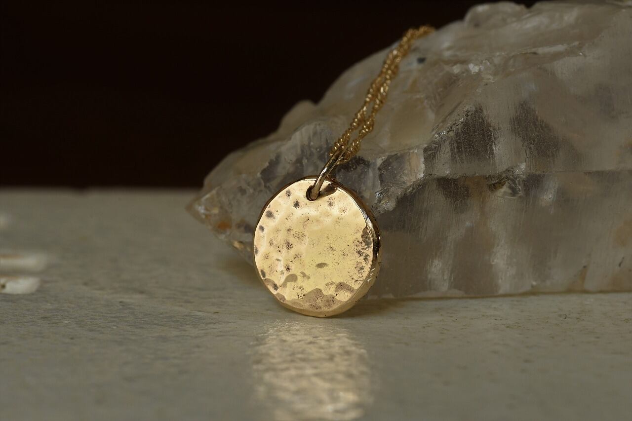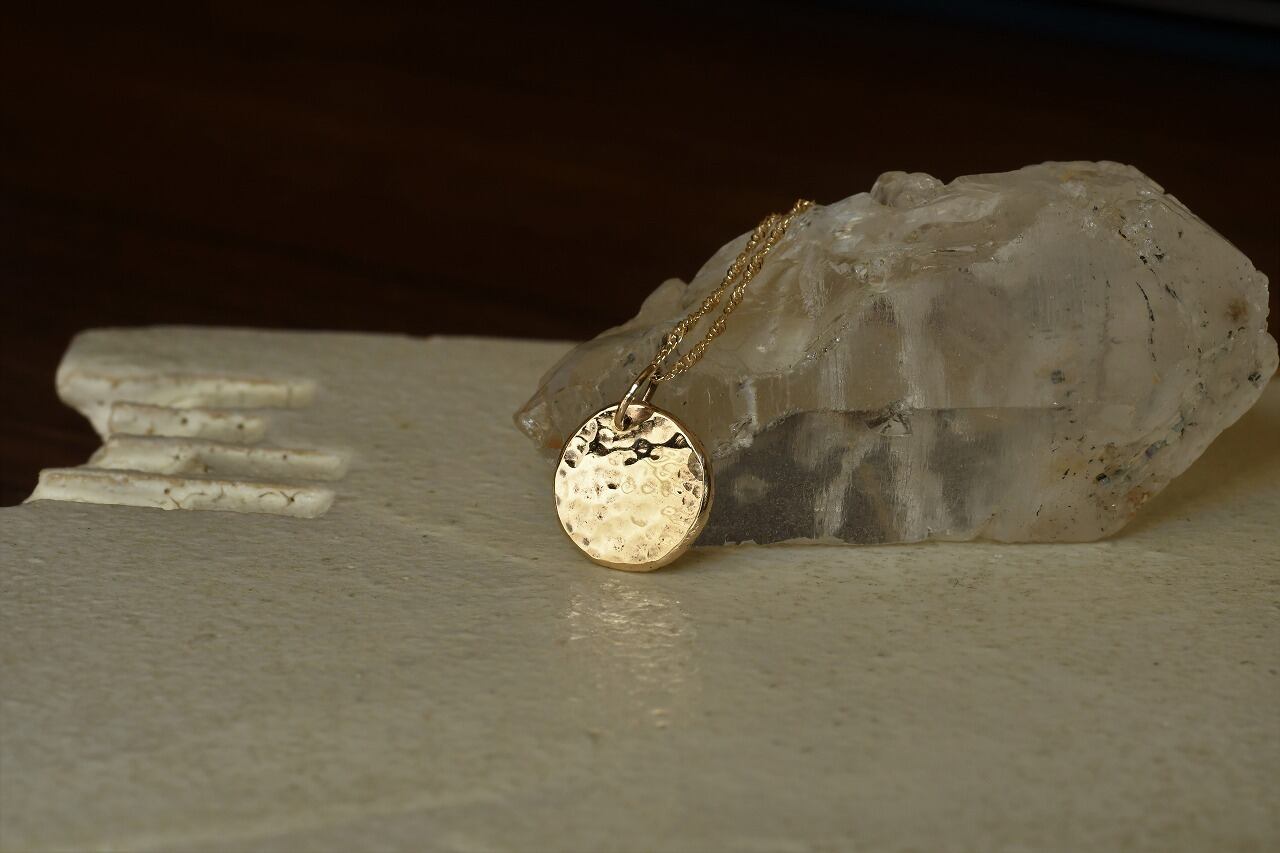 裏面には槌目を打って制作をおこないリバーシブルなペンダントトップとしても身に着けられるようにいたしました。
