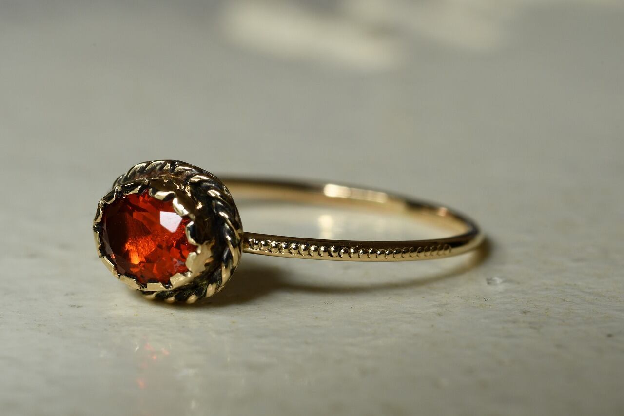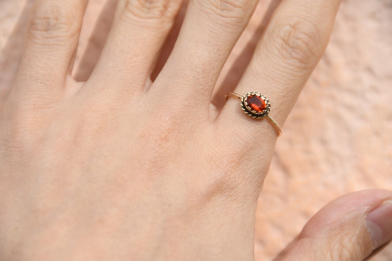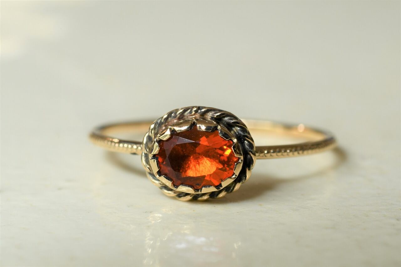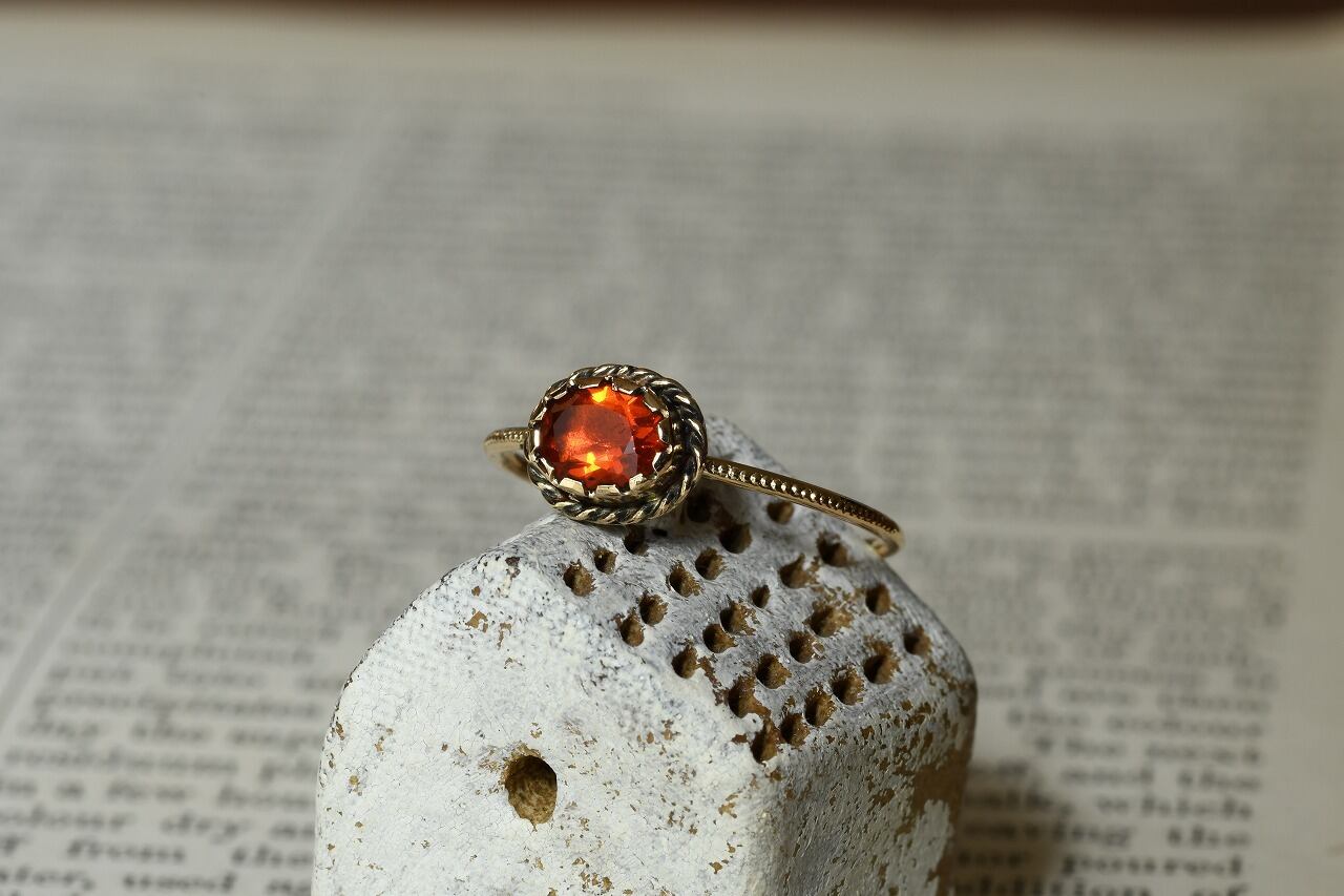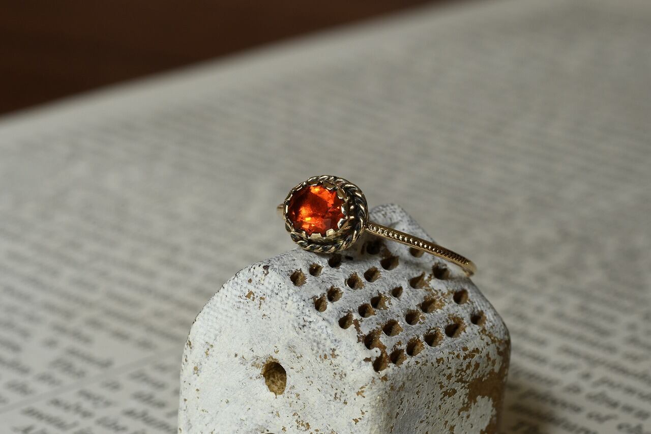 アンティークな雰囲気がぴったりの美しいファイアオパールのリングで手元を華やかにしてくれますが日常でもさらりと身に着けられる作品に仕上がったと思っております。