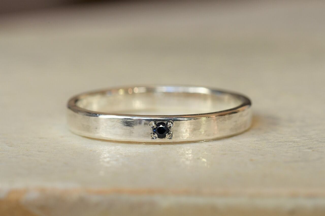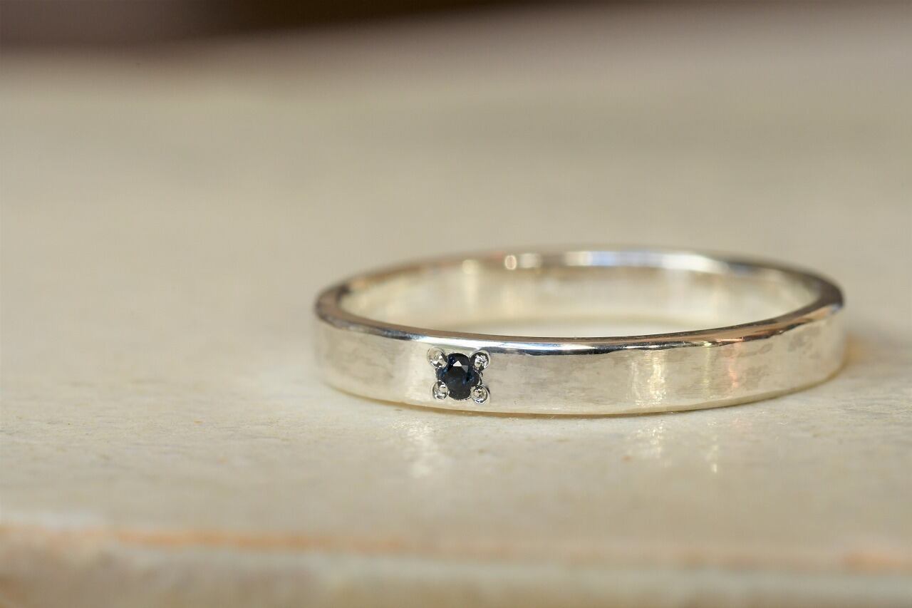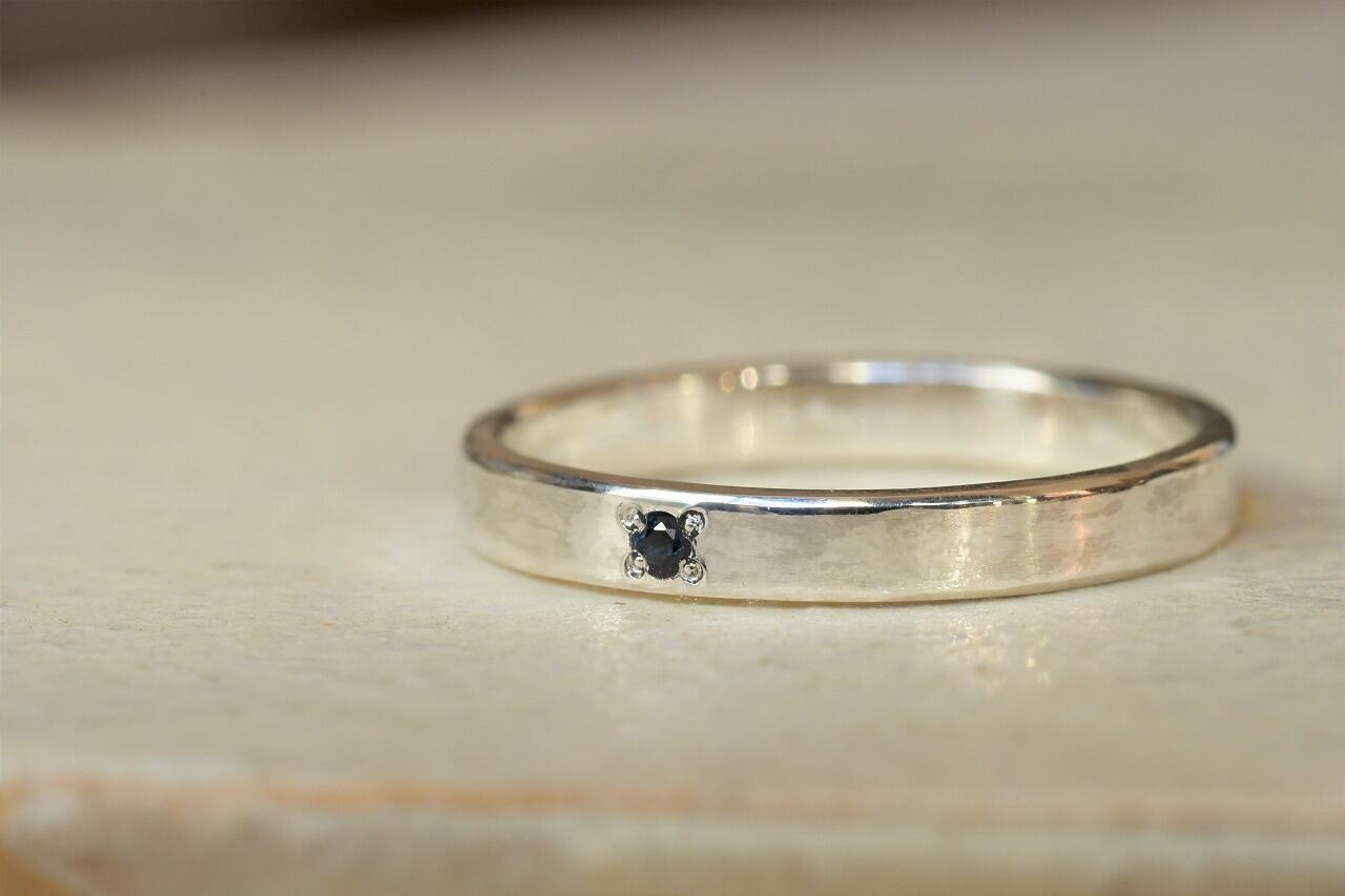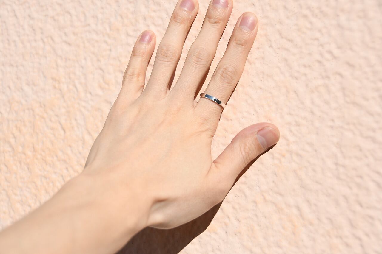 シンプルな平打ちリングに美しいサファイアを一粒留めて