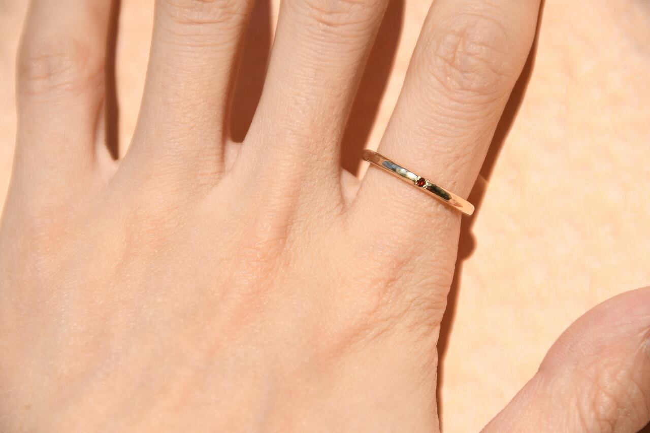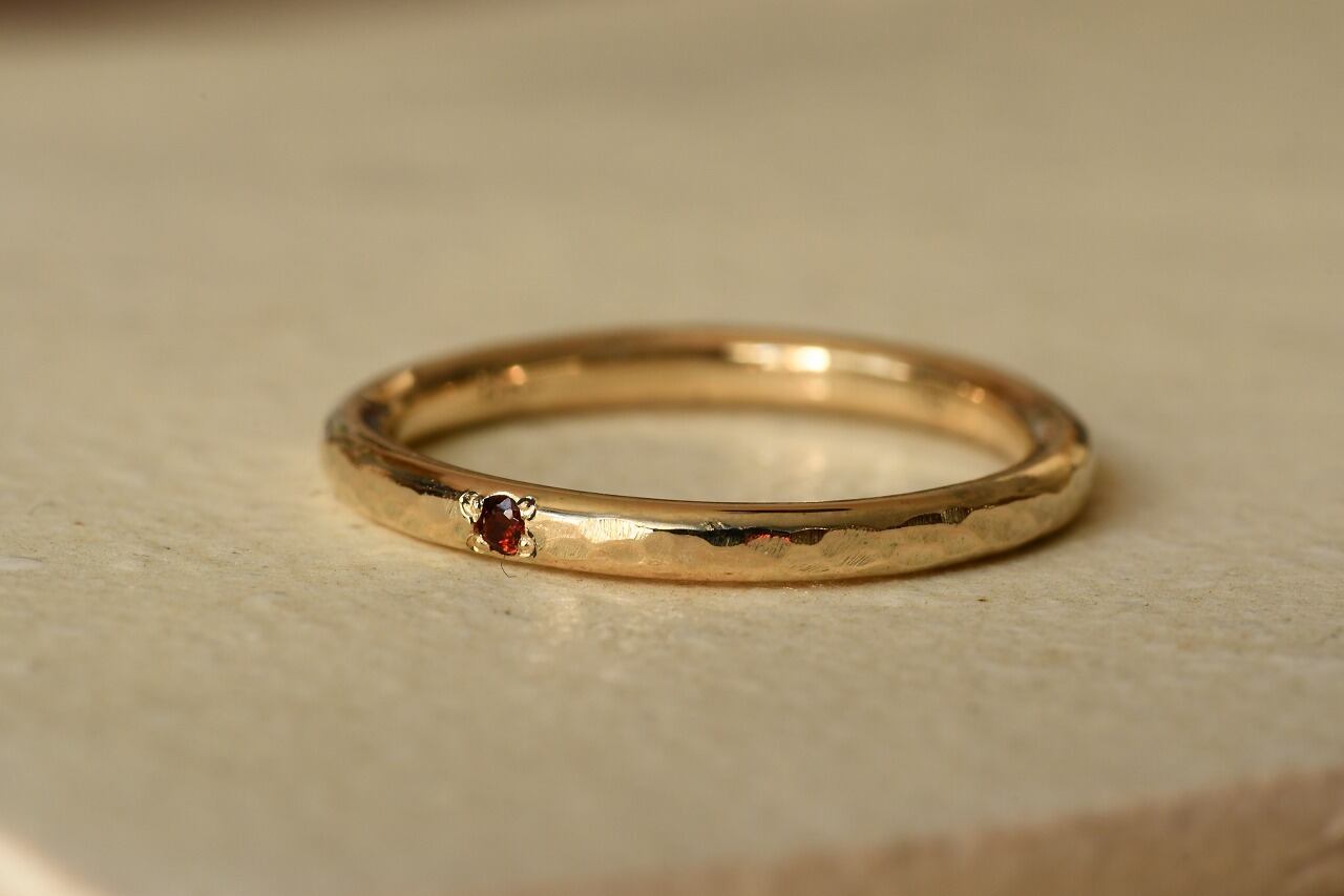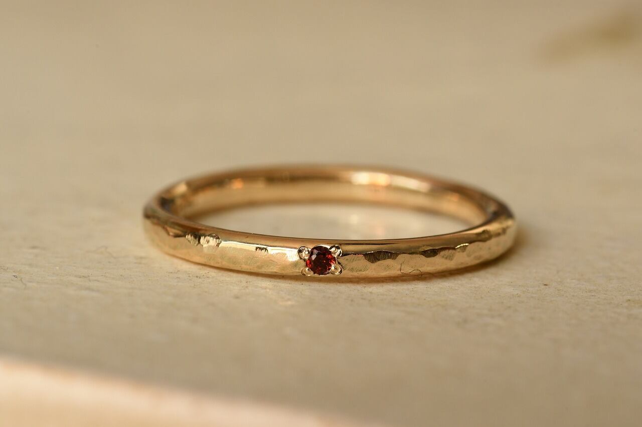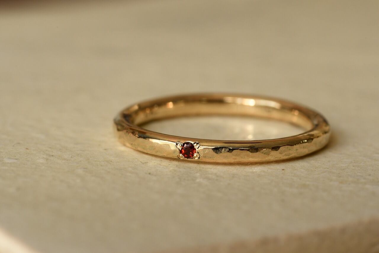 今回は深い赤色が美しいガーネットと10金の組み合わせのリングです