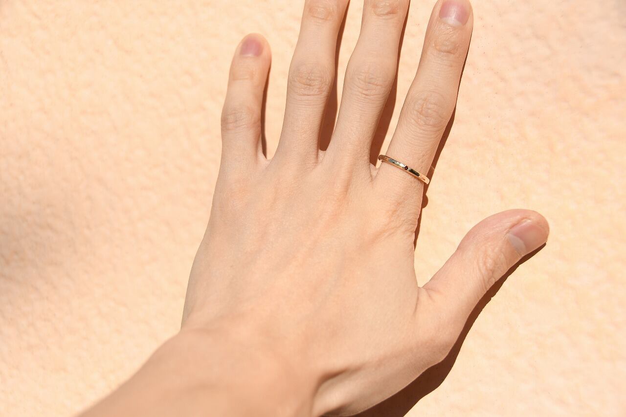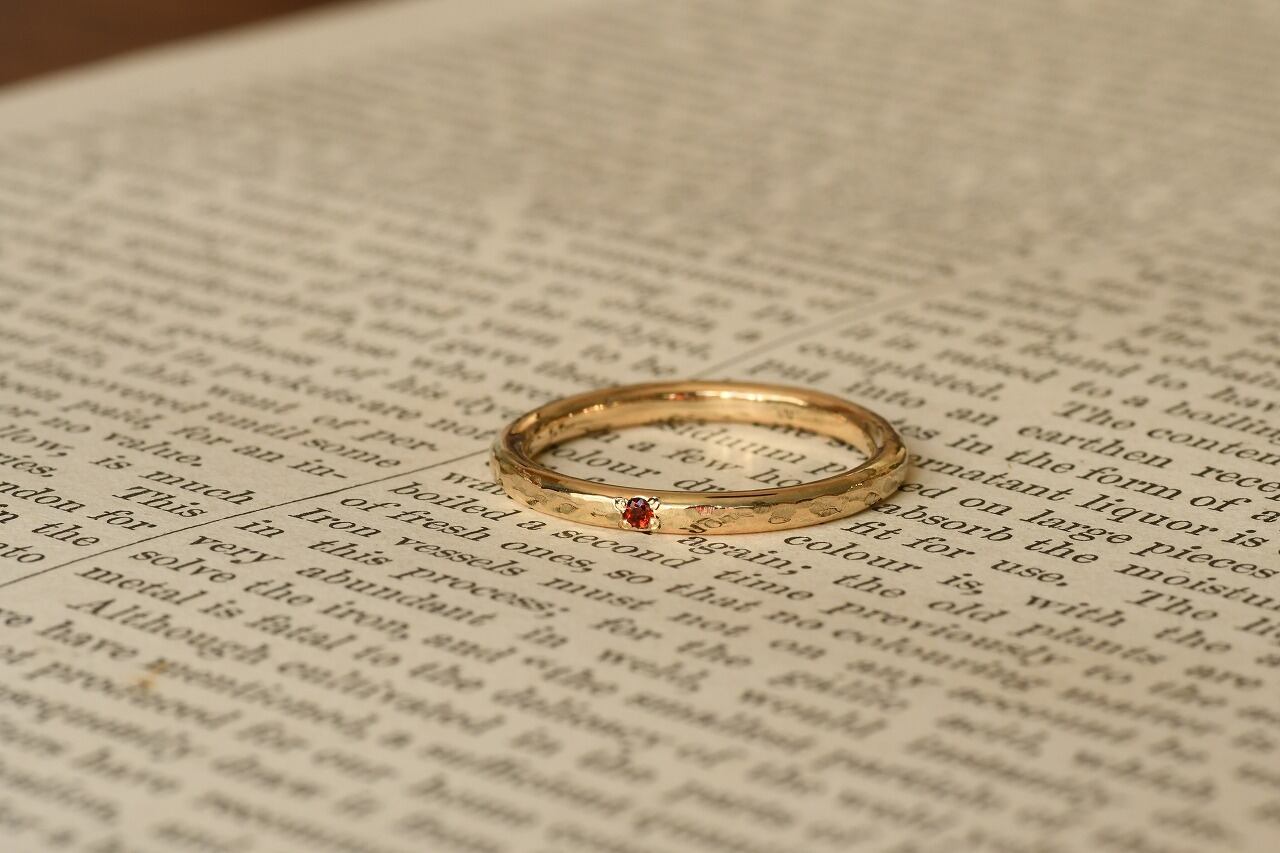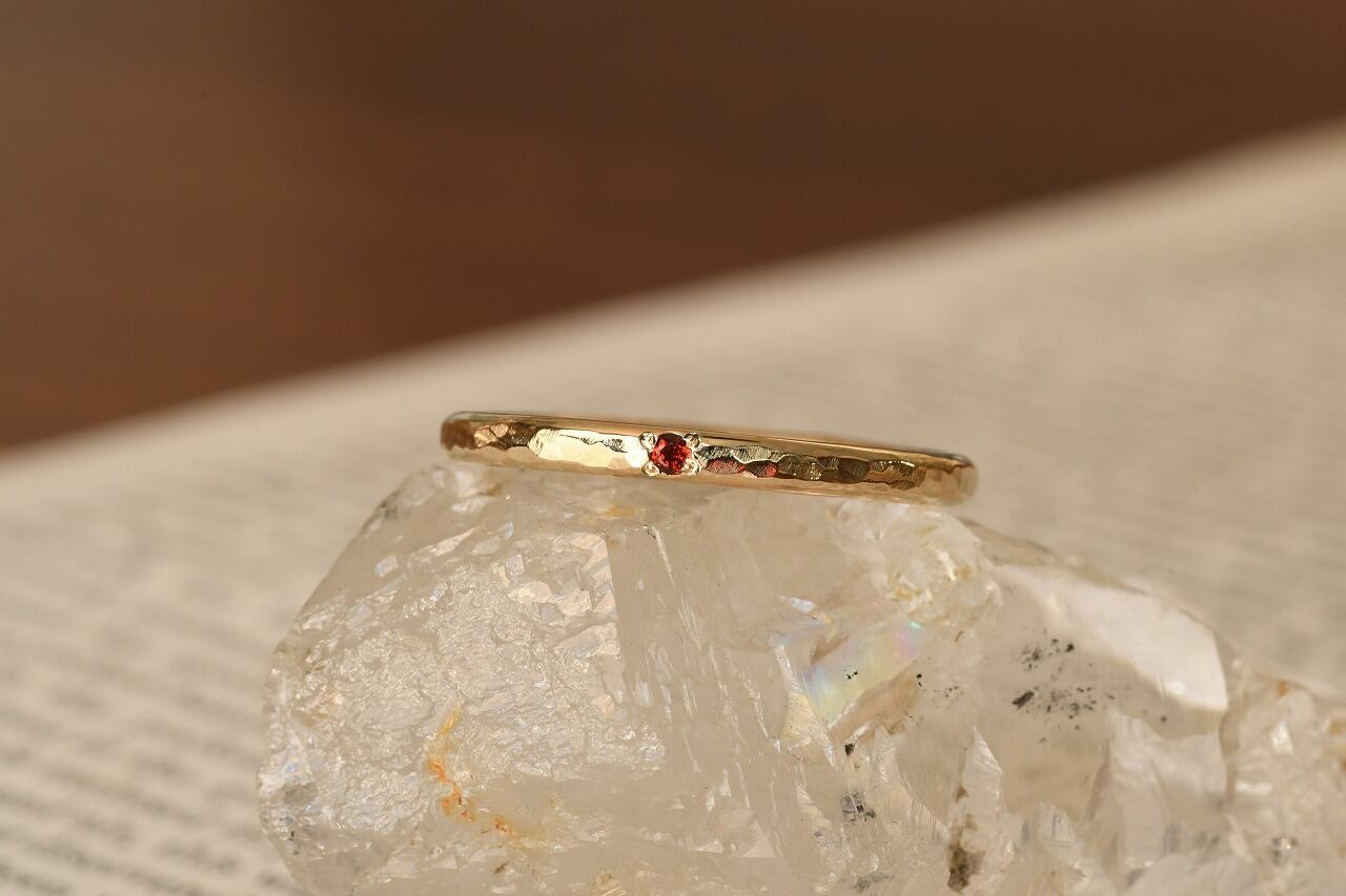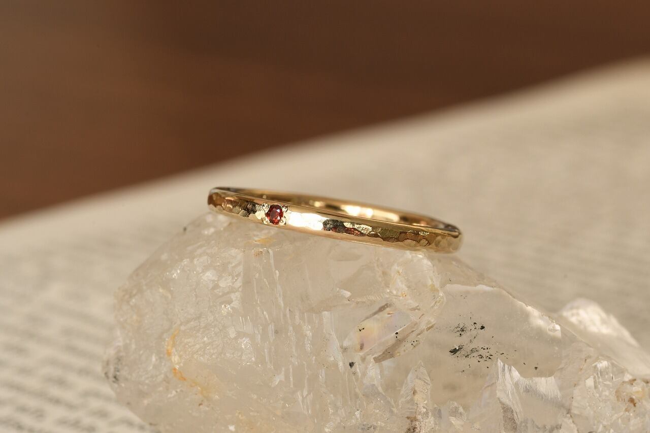 今回は深い赤色が美しいガーネットと10金の組み合わせのリングです