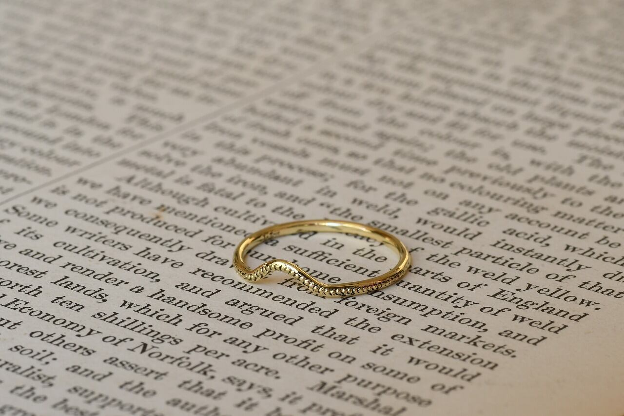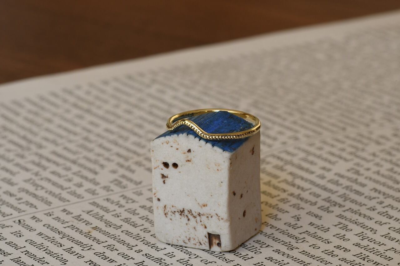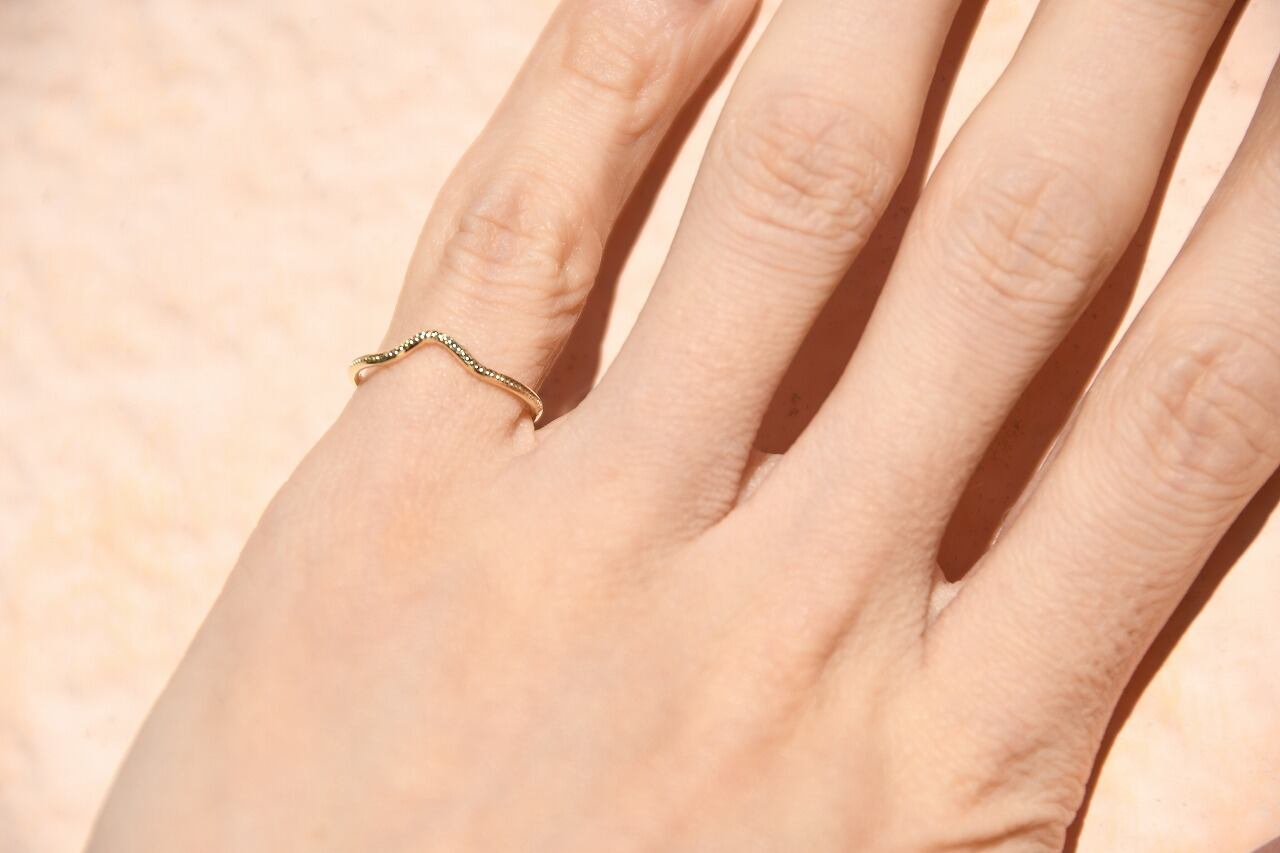 さらりと身に着けやすくてそれでいて個性もある、お手持ちの他のリングとの重ね着けにもぴったりのそんな作品だと思います