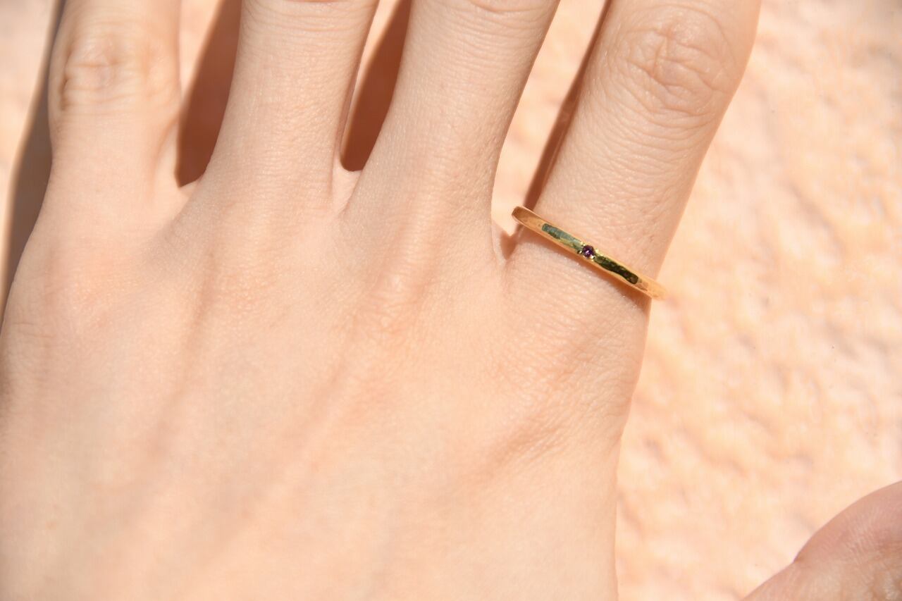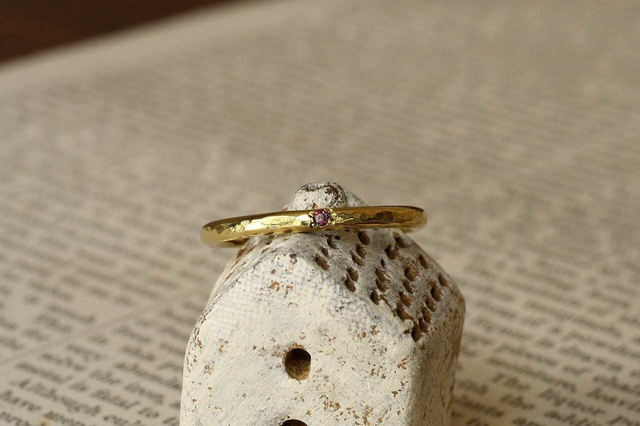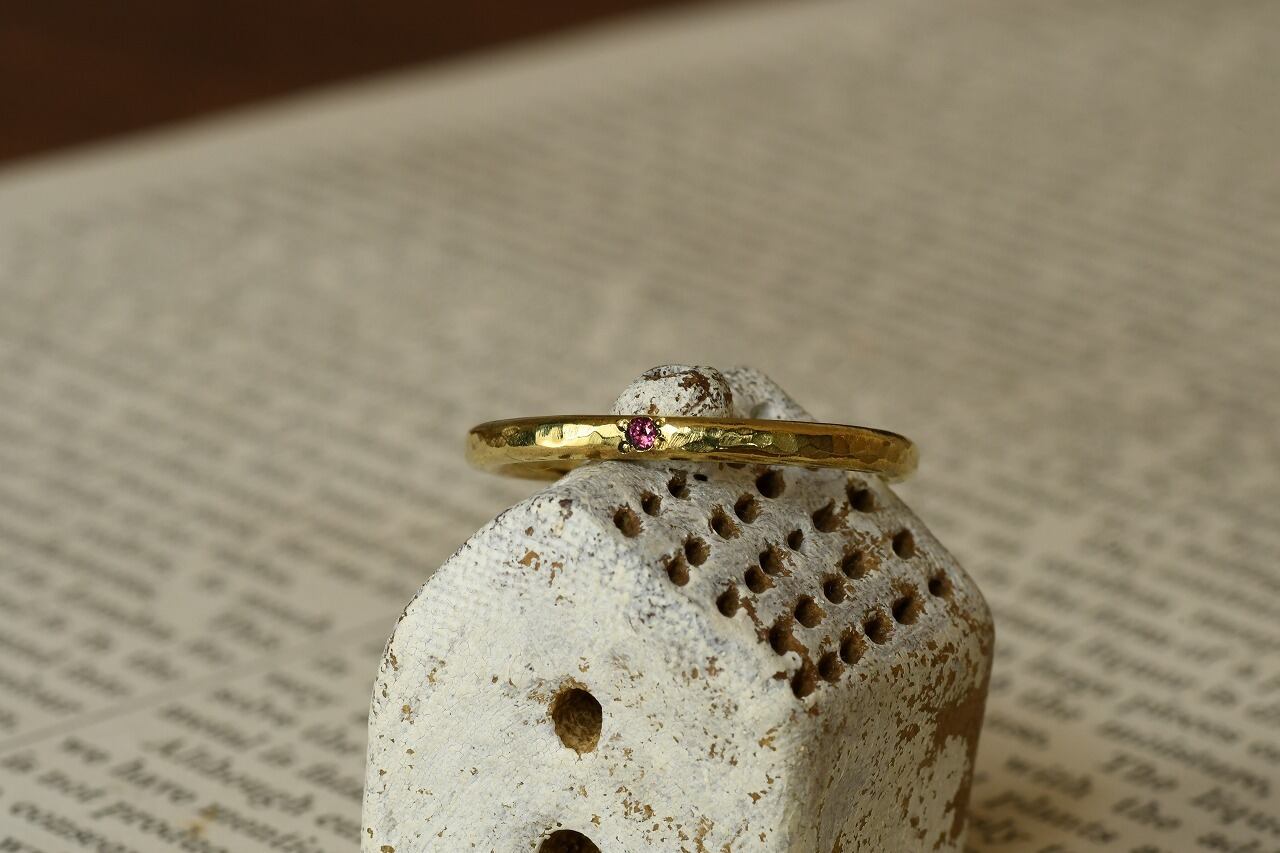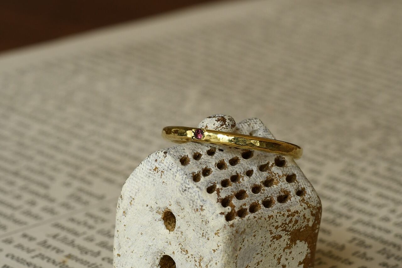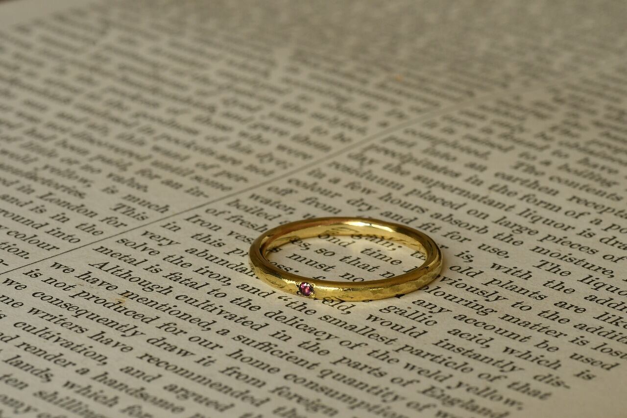 真鍮のリングで制作を行っている古き日々の物語を今回はロードライトガーネットで制作してみました。古いものを表現するのに最適な真鍮をつかい、せっかくならロードライトガーネットの赤紫色にも合わせてみようと思い制作を行いました。