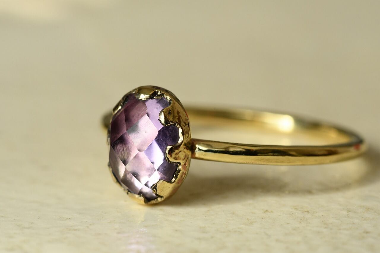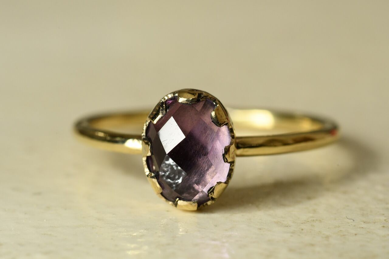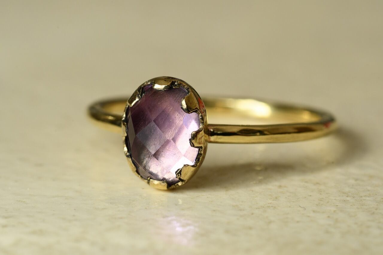 2月の誕生石であるアメジストはその透明な紫色の輝きが最大の特徴で、古来、エジプトやユダヤ教、キリスト教世界などで装飾品などに使われ、特にキリスト教世界では司教の石といわれ全員がこの指輪をはめていたといわれています。石の効力は調和と調整と統合の力がつよく、人の精神状態を安定の方向へ導き自分自身の内面的調和と統合だけでなく他人との調和をとるのにも大きな効力を発揮します。古くから「酔わない」と伝えれれていますが、酒に酔わないというよりも、感情の乱れに流されないという側面が強いような気がします。