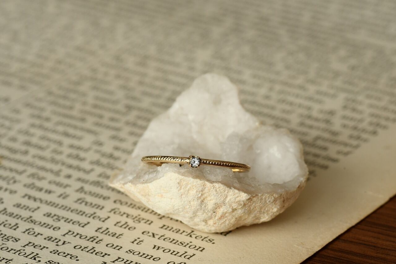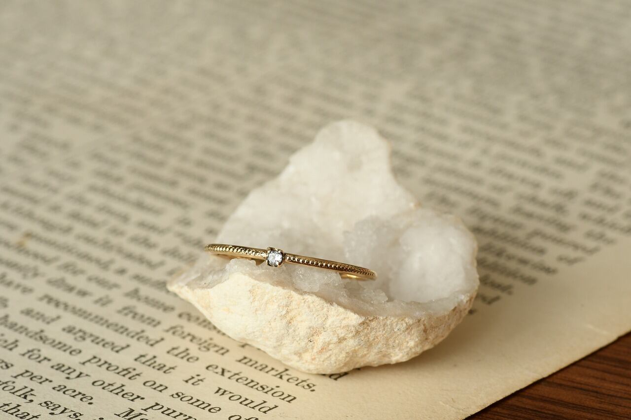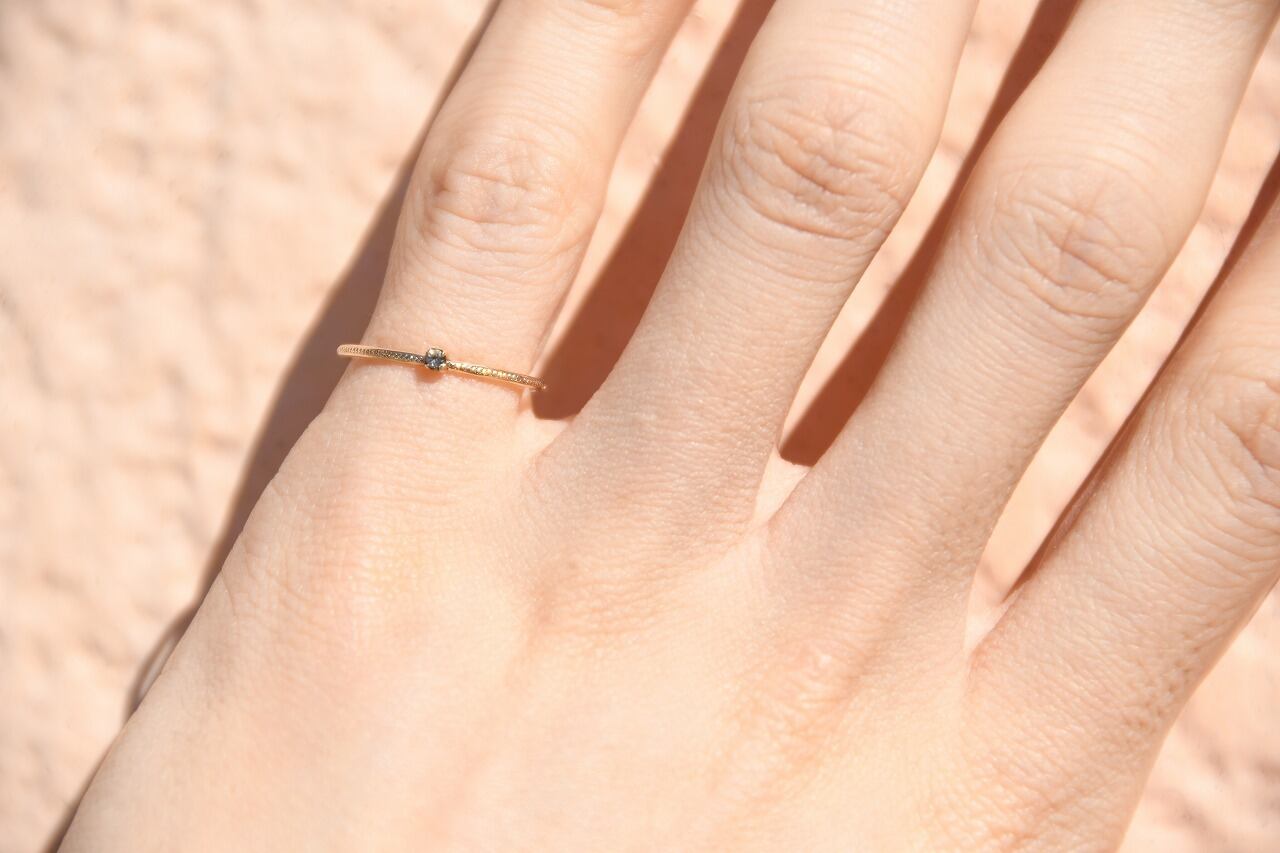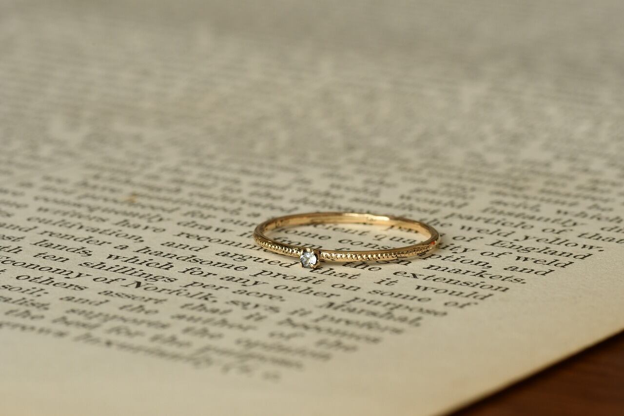 リング部分には半周に渡ってミルを打つくことで10金の持つ輝きをより楽しめるようにすることができたと思います。