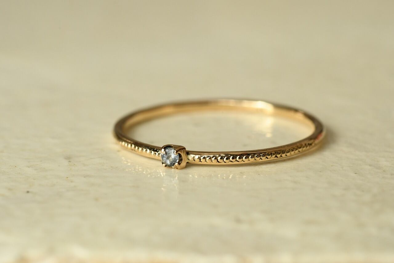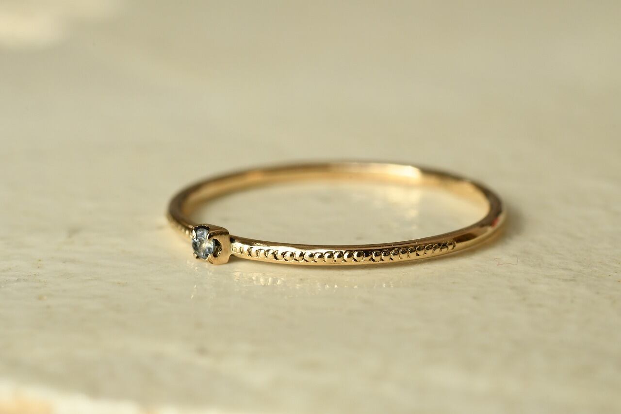 小さくとも美しいアクアマリンとK10の組み合わせのリングです。