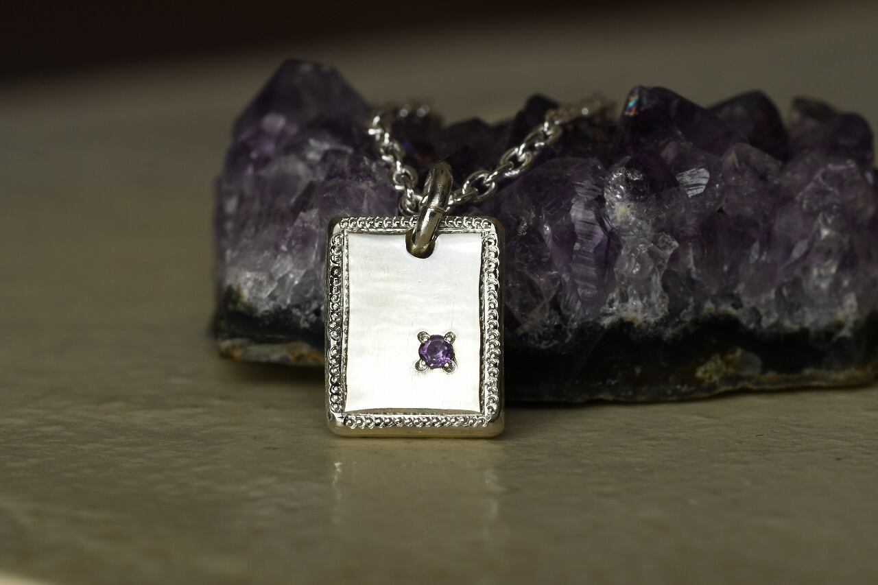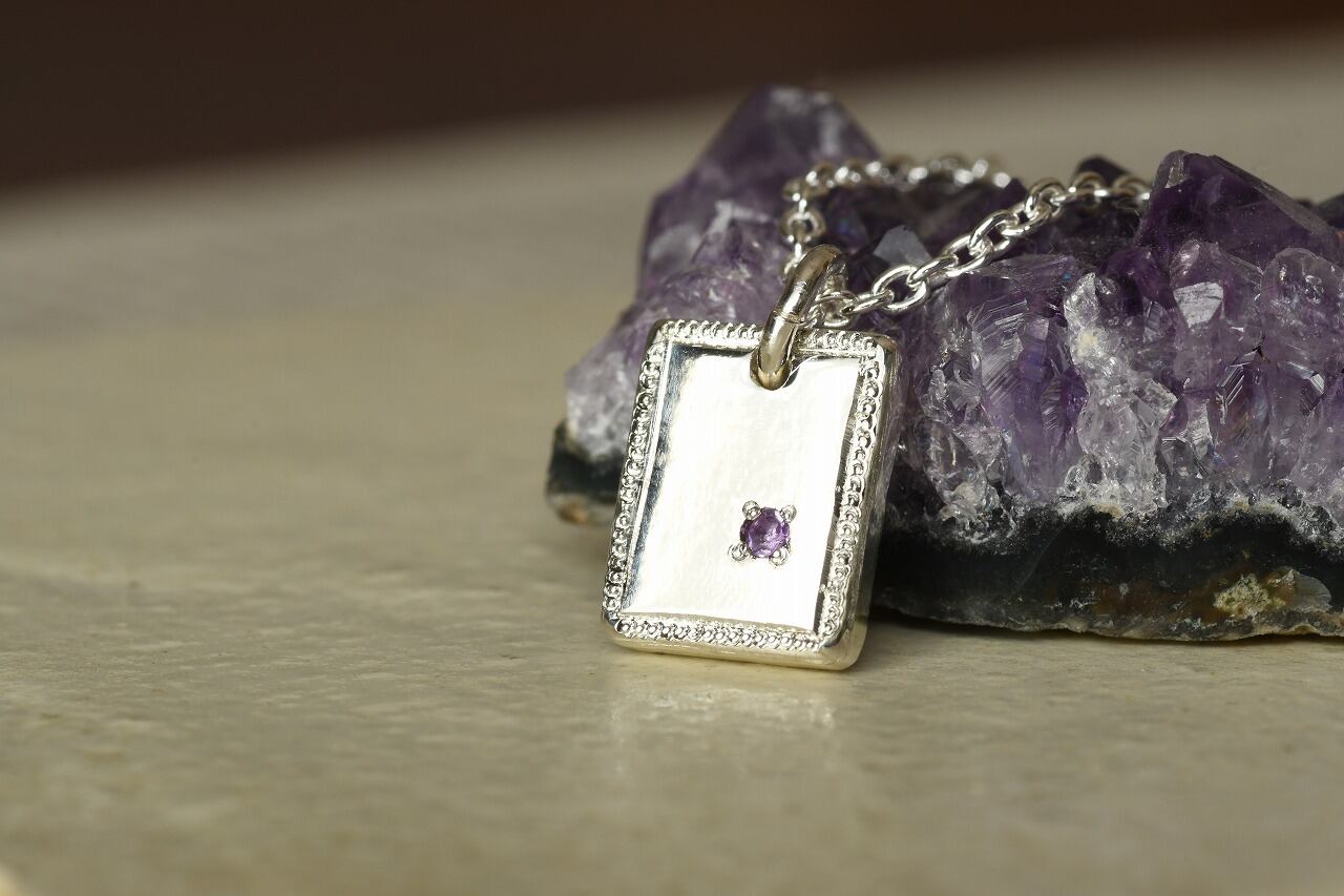 少し厚みのあるシルバーで制作して一粒留めたのはアメジスト