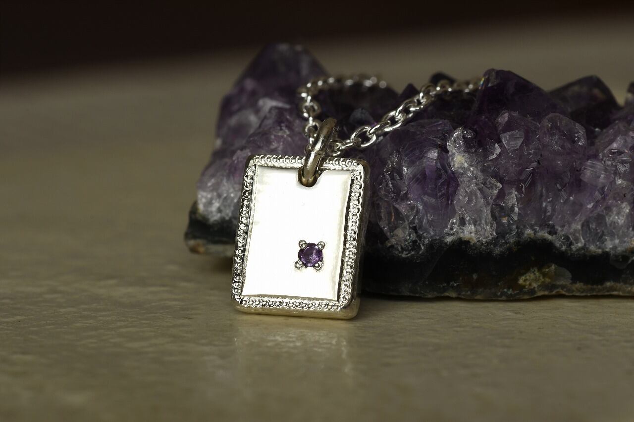 2月の誕生石であるアメジストはその透明な紫色の輝きが最大の特徴で、古来、エジプトやユダヤ教、キリスト教世界などで装飾品などに使われ、特にキリスト教世界では司教の石といわれ全員がこの指輪をはめていたといわれています。石の効力は調和と調整と統合の力がつよく、人の精神状態を安定の方向へ導き自分自身の内面的調和と統合だけでなく他人との調和をとるのにも大きな効力を発揮します。古くから「酔わない」と伝えれれていますが、酒に酔わないというよりも、感情の乱れに流されないという側面が強いような気がします。