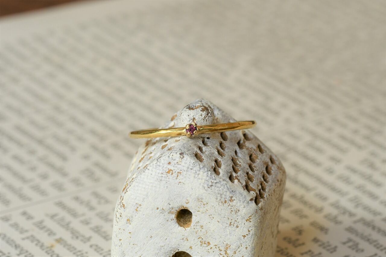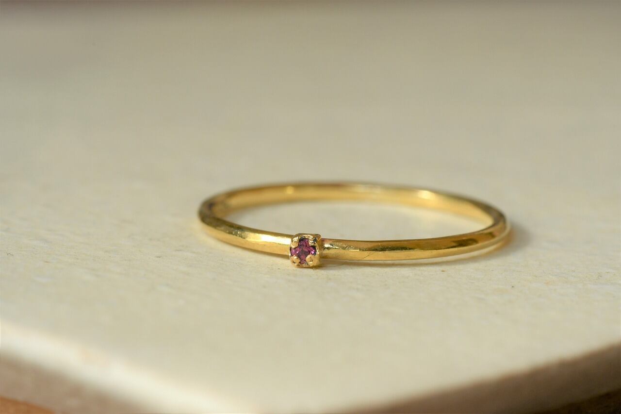 今回の時を経る物語はワインレッドカラーが美しいロードライトガーネットで制作しました。