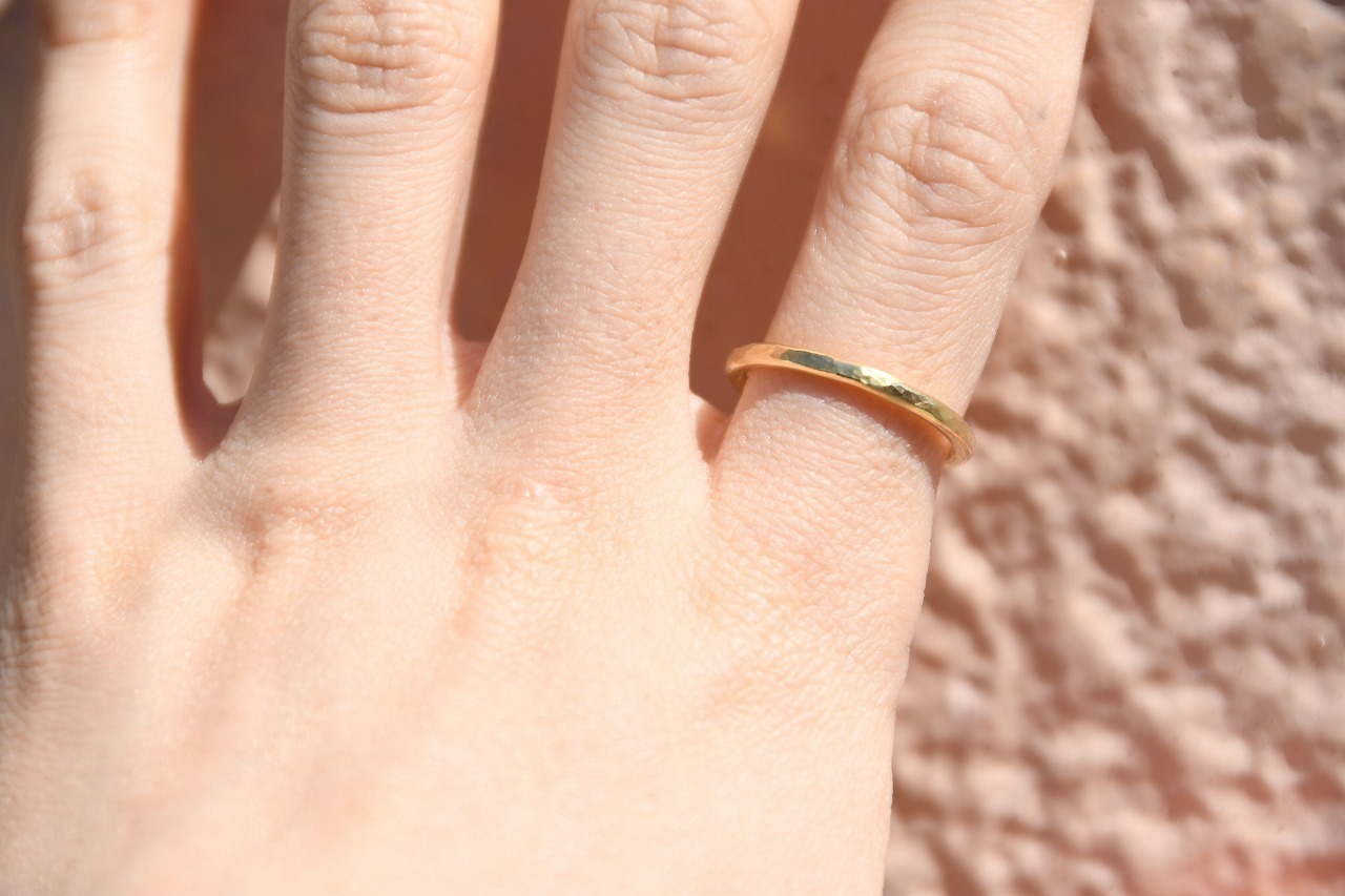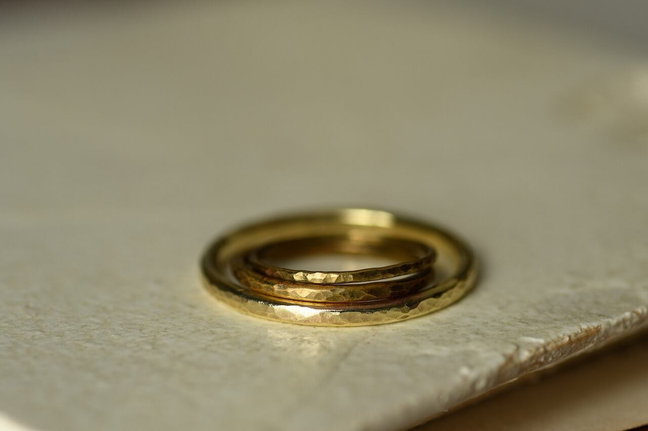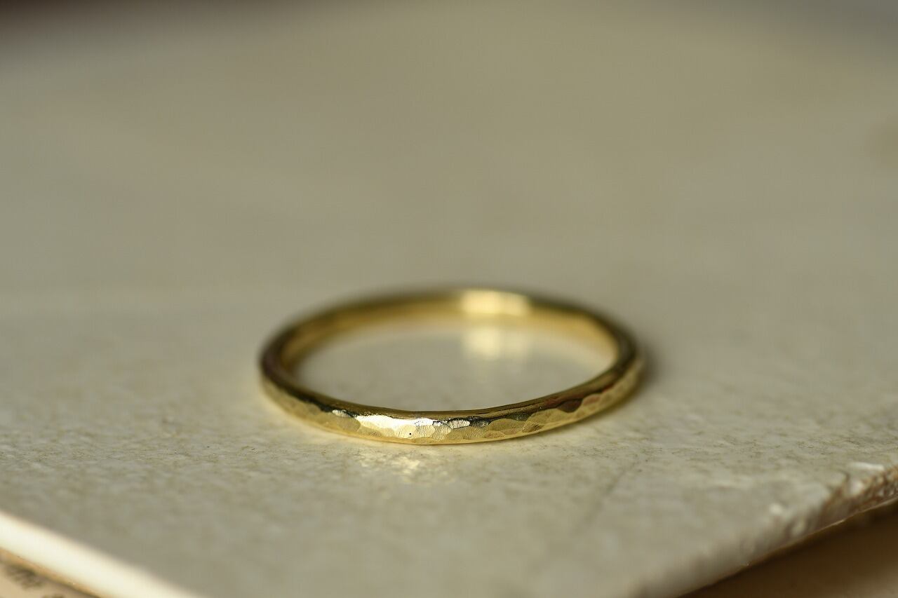 シンプルだけれどそれゆえに根強い人気のある槌目のリング