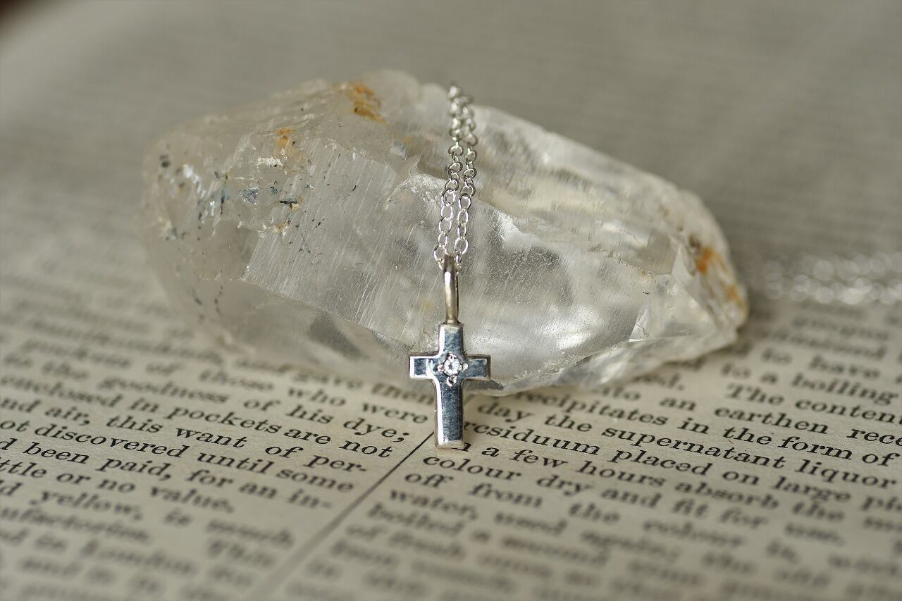今回も普段よりすこし厚めの銀板を糸鋸で切り出してクロスモチーフを作り