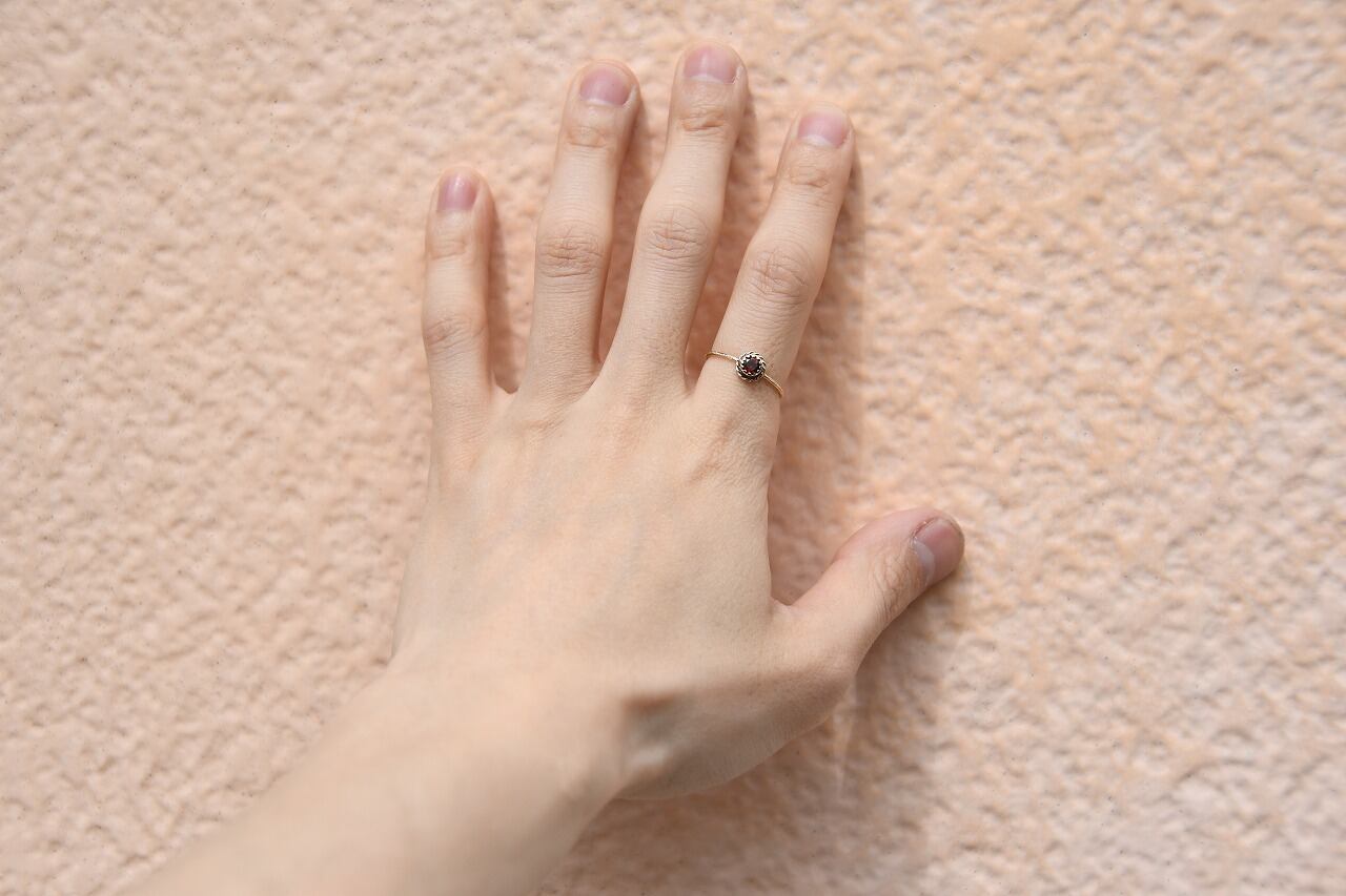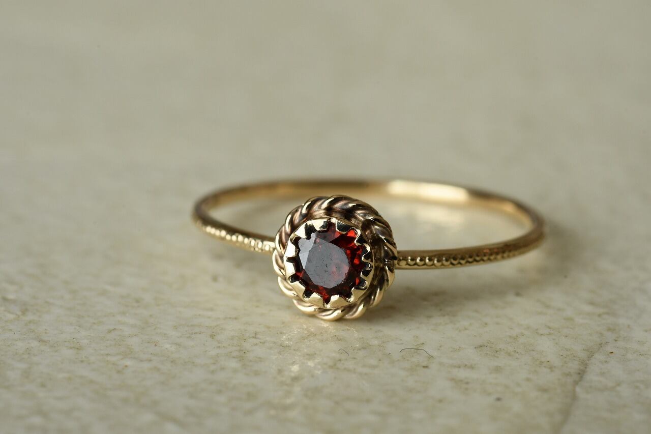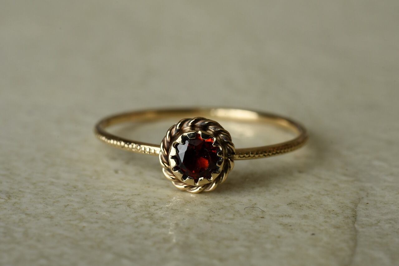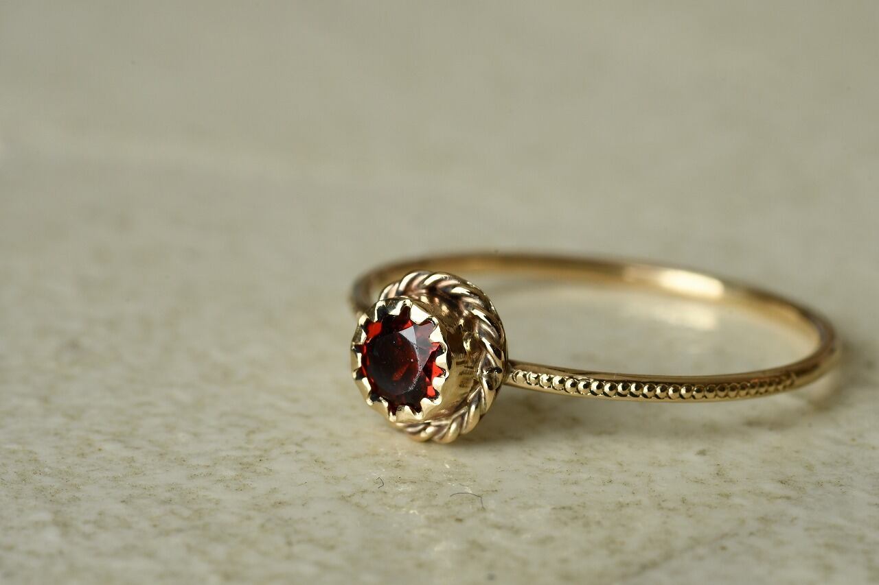 アンティークっぽさを表現したいと考えたときに一番最初に思い浮かんだ石はやっぱり深紅のガーネット。美しさと落ち着きのバランスが絶妙でその輝きに心を惹かれるます。
