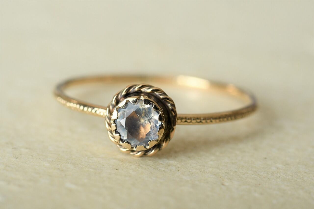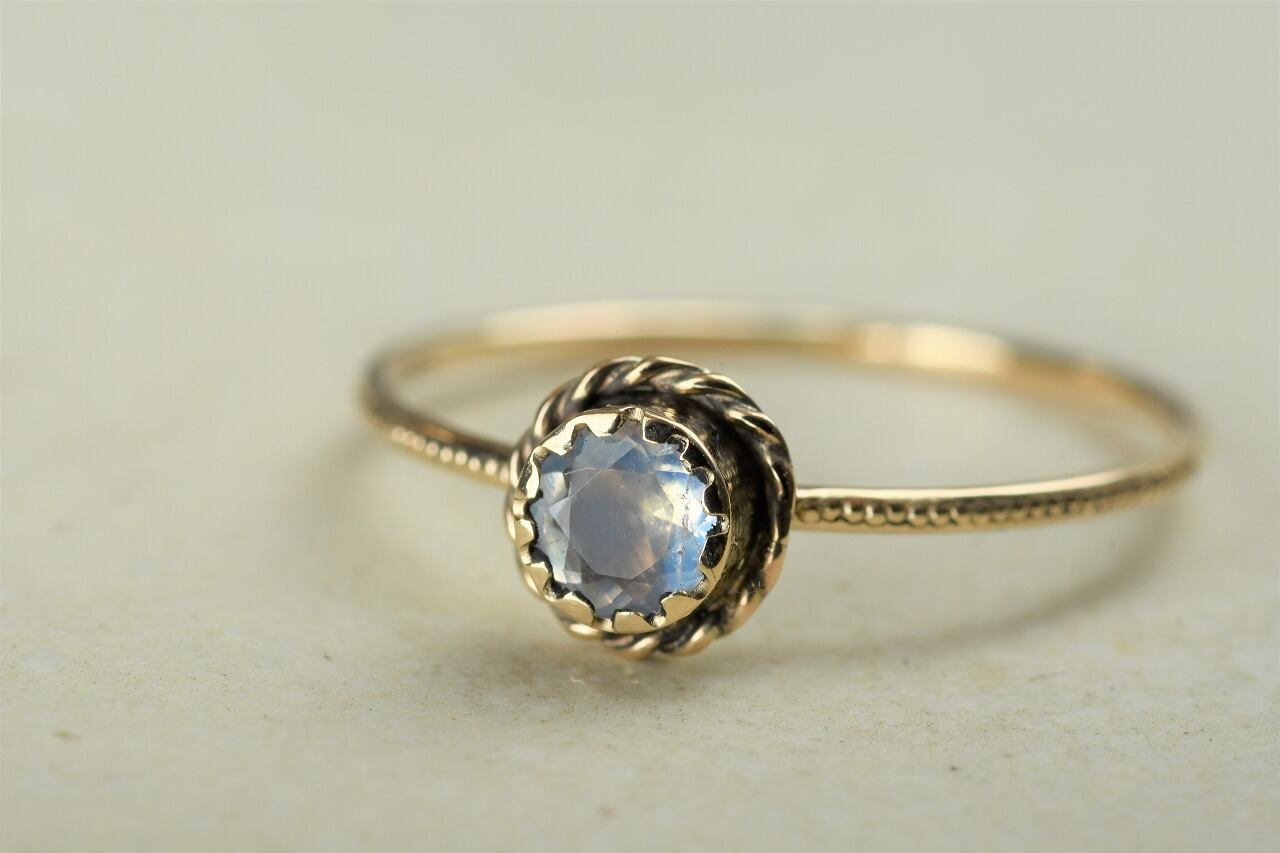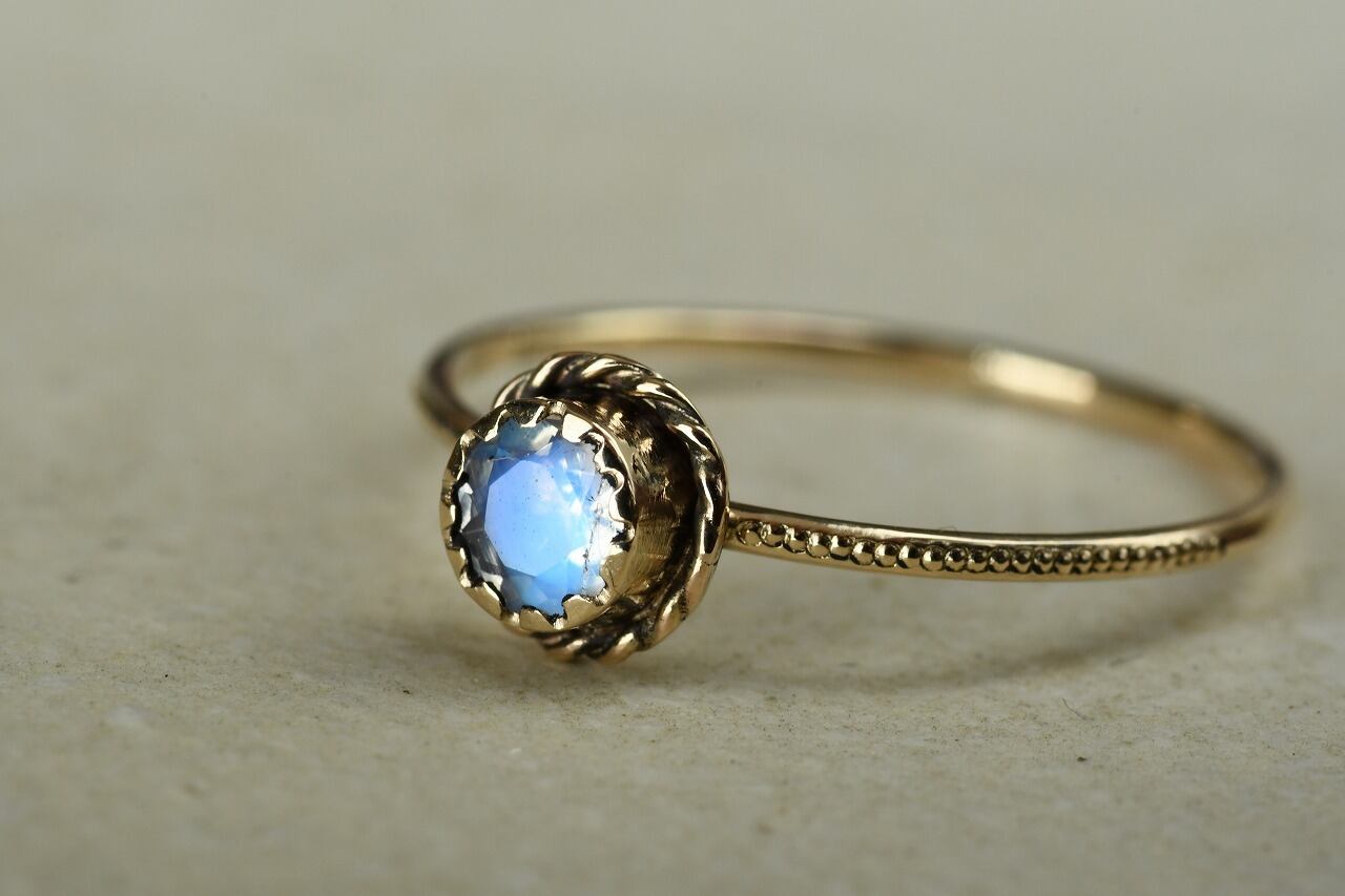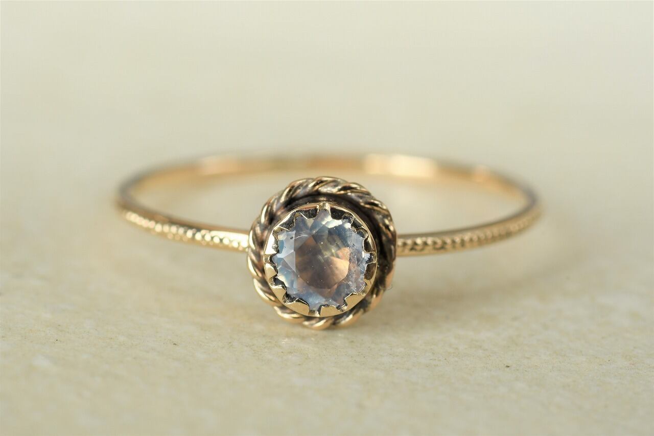 光の当たり方によって美しく輝くブルームーンストーンの輝きとK10の明るい輝き