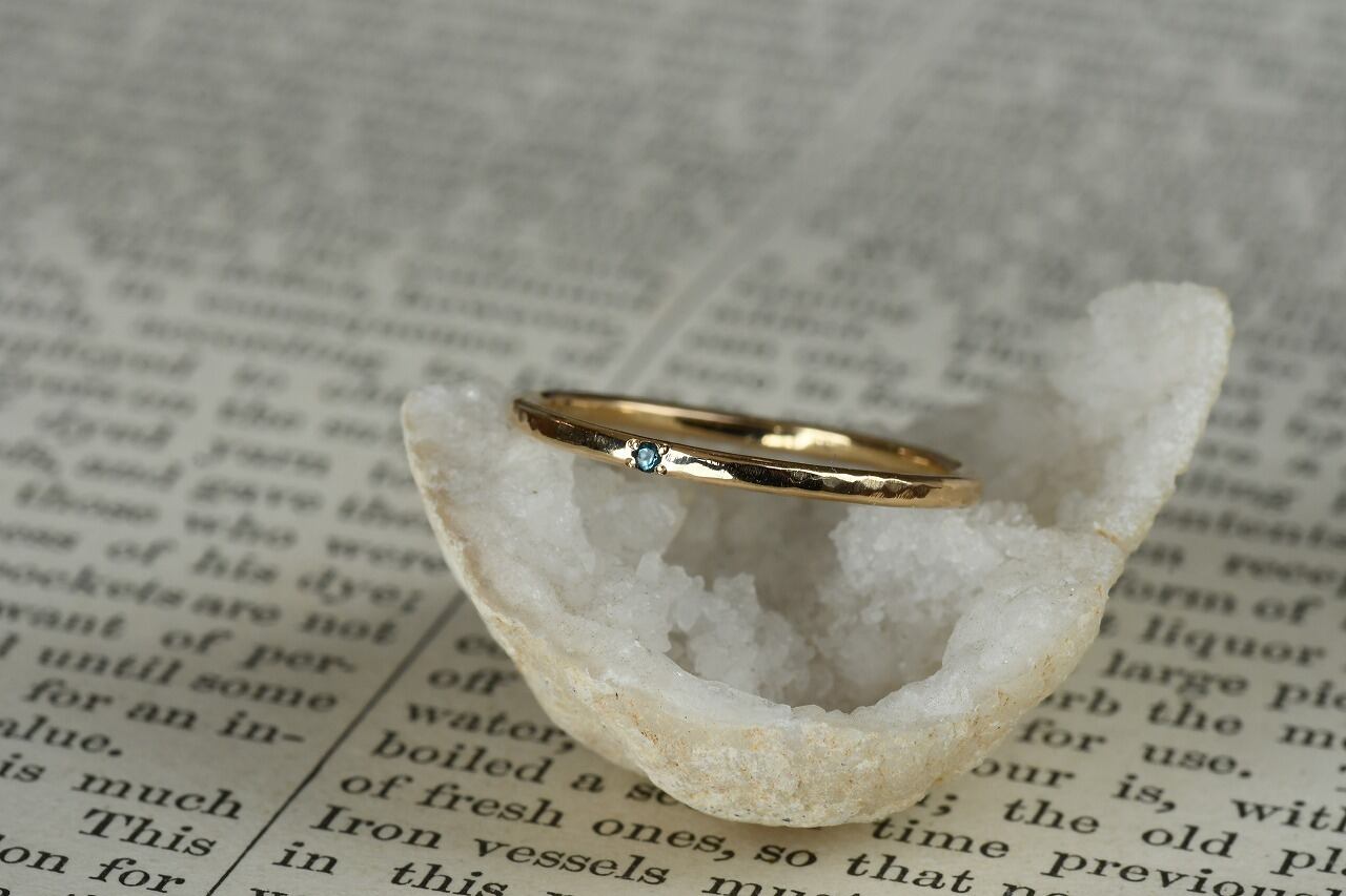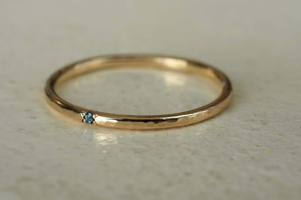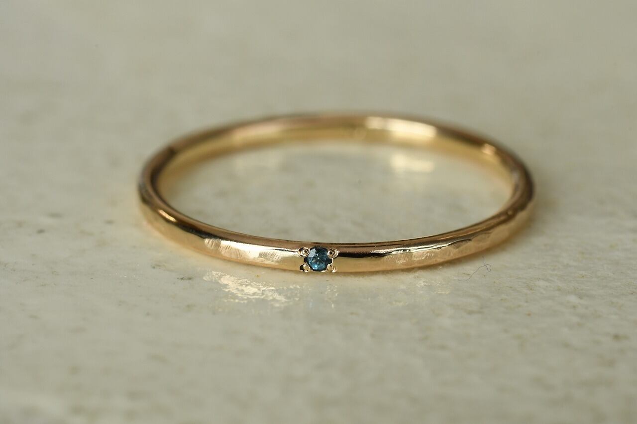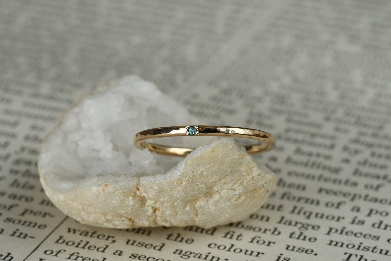 リングの幅を細くして、小さな天然石を一粒留めるそんな作品です。