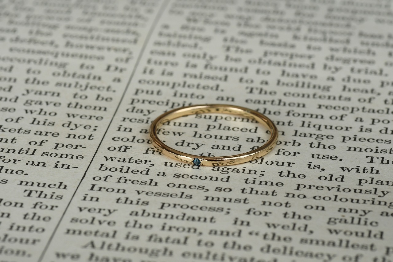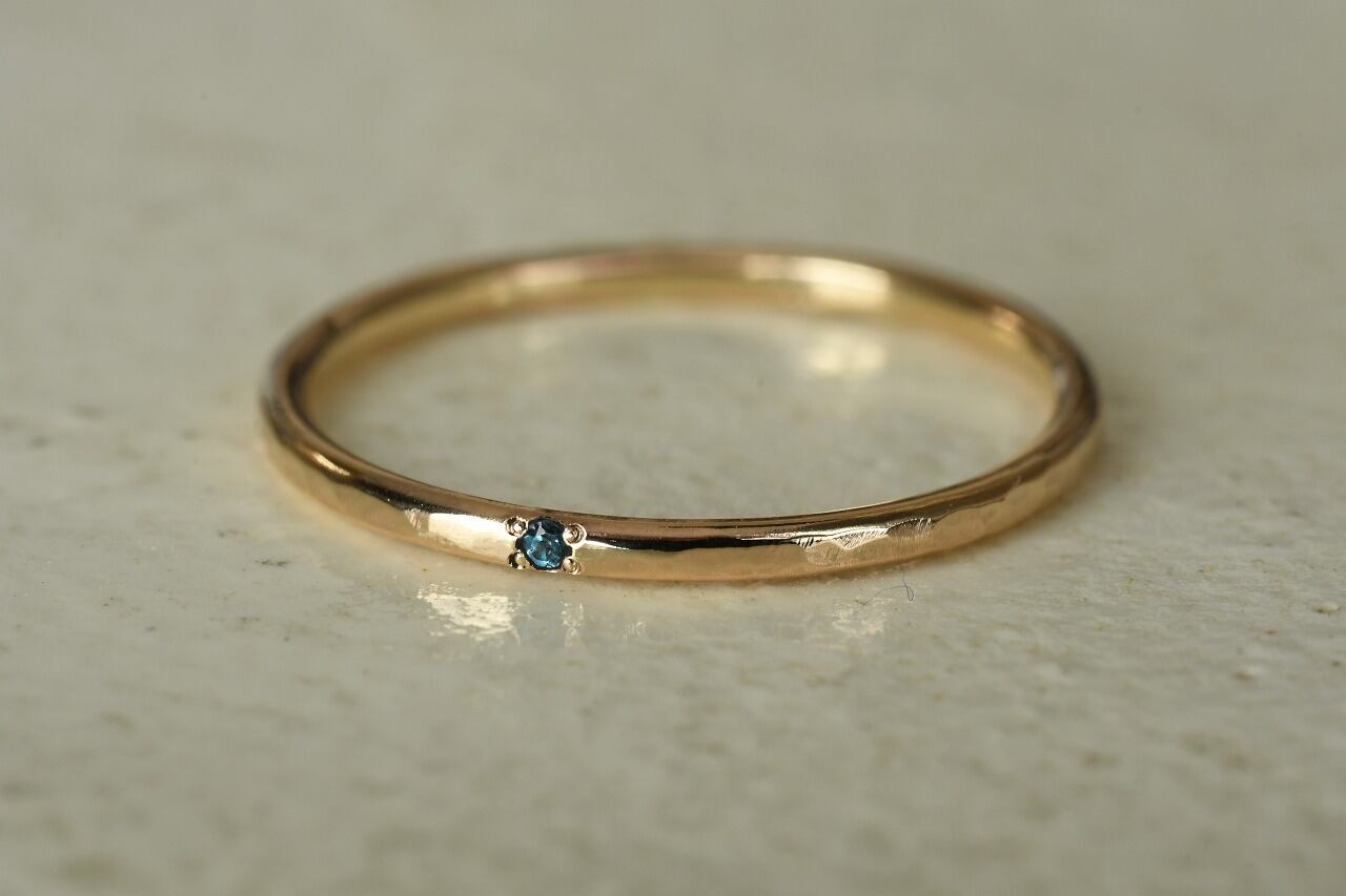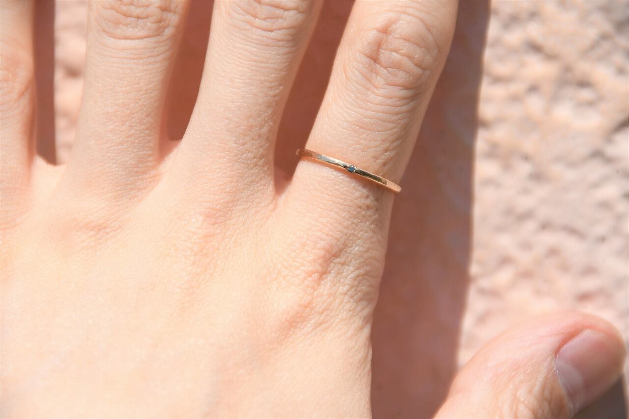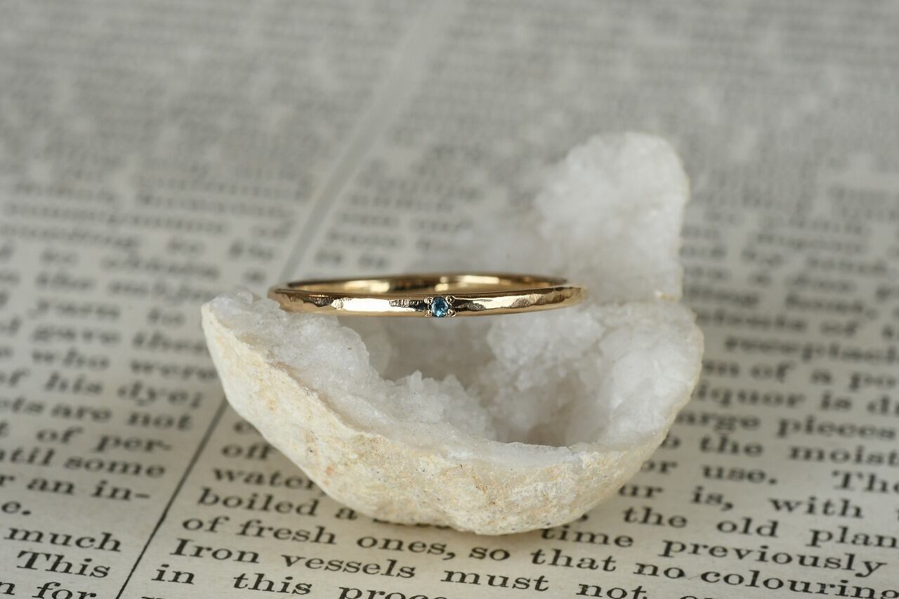 リングの幅を細くして、小さな天然石を一粒留めるそんな作品です。