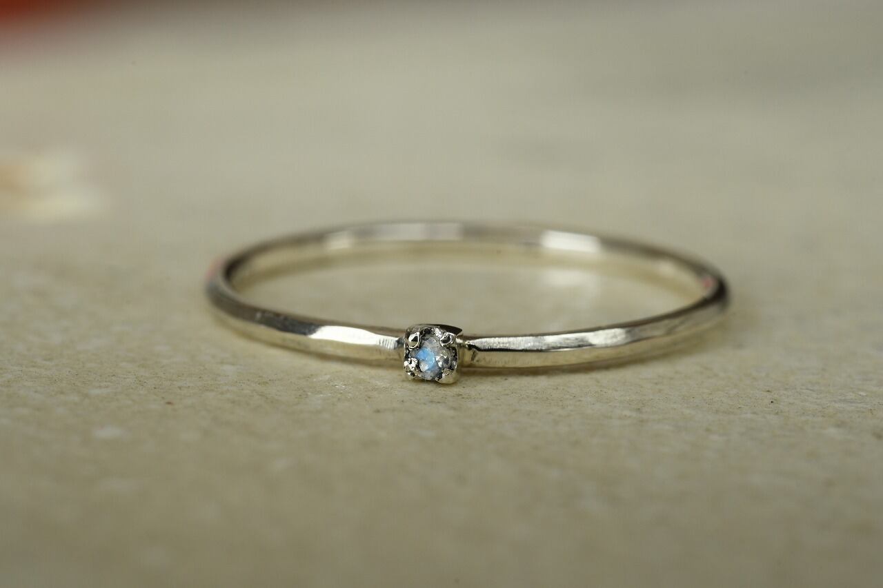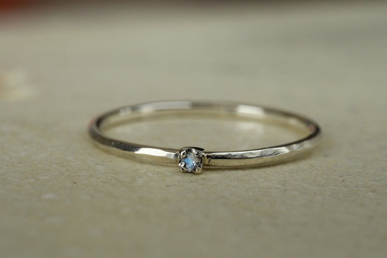 光の当たり方によって色を変化させる美しいムーンストーンとすっきりとしたシルバーの組み合わせ