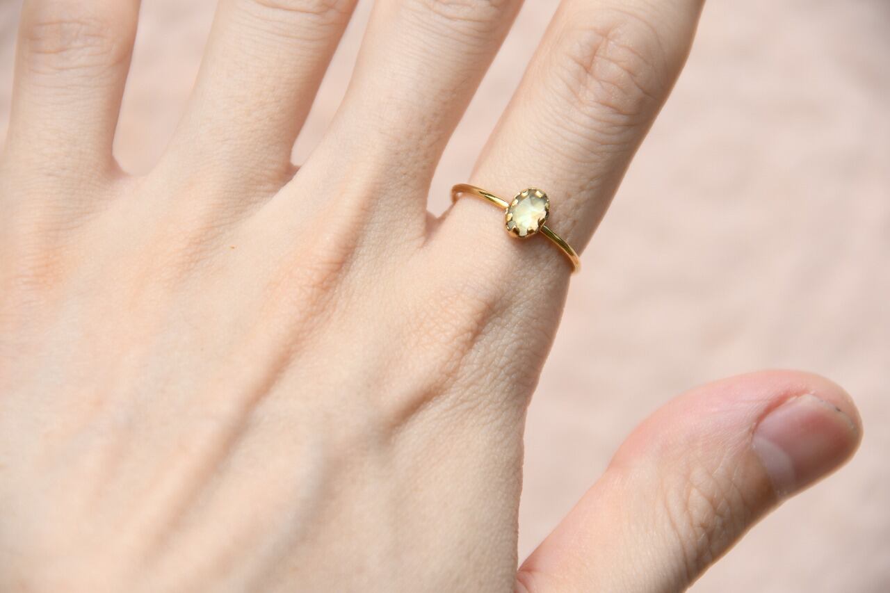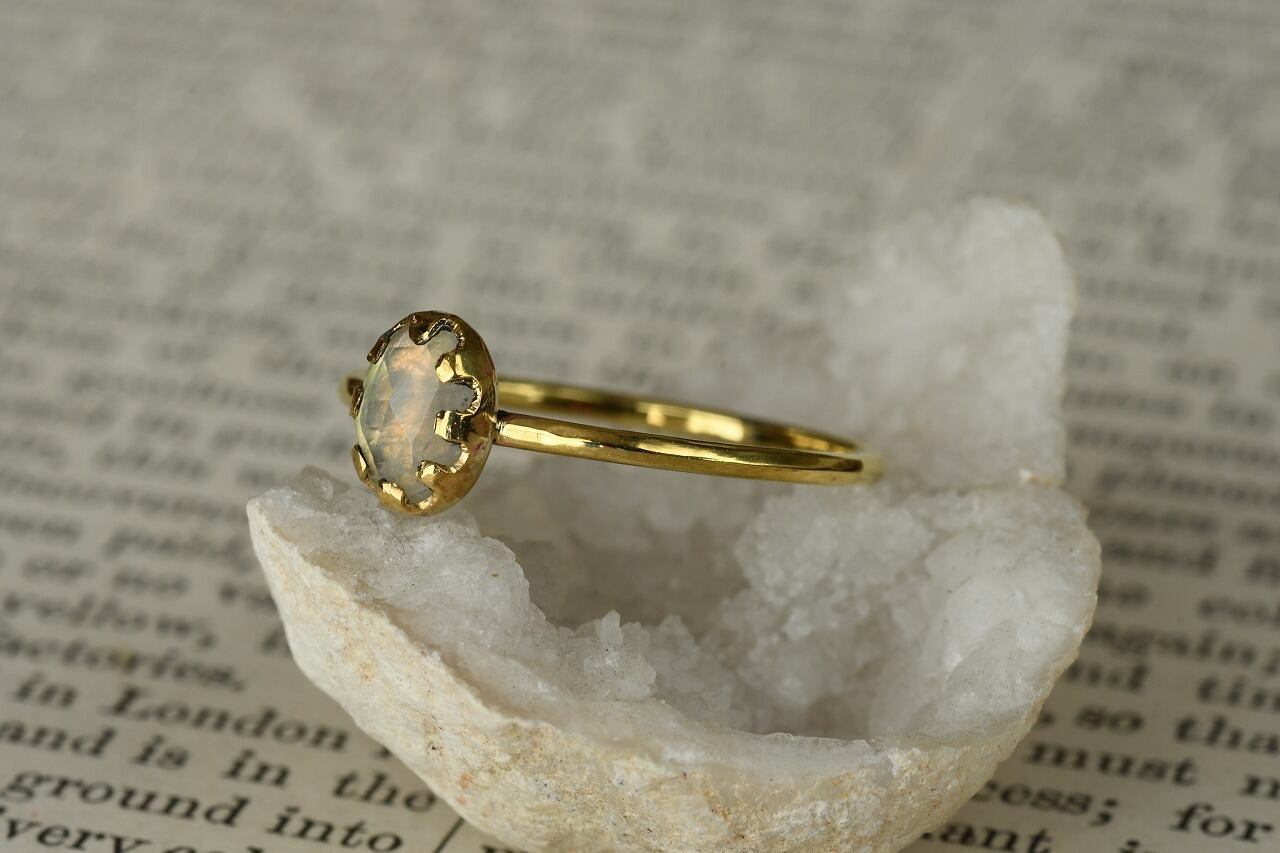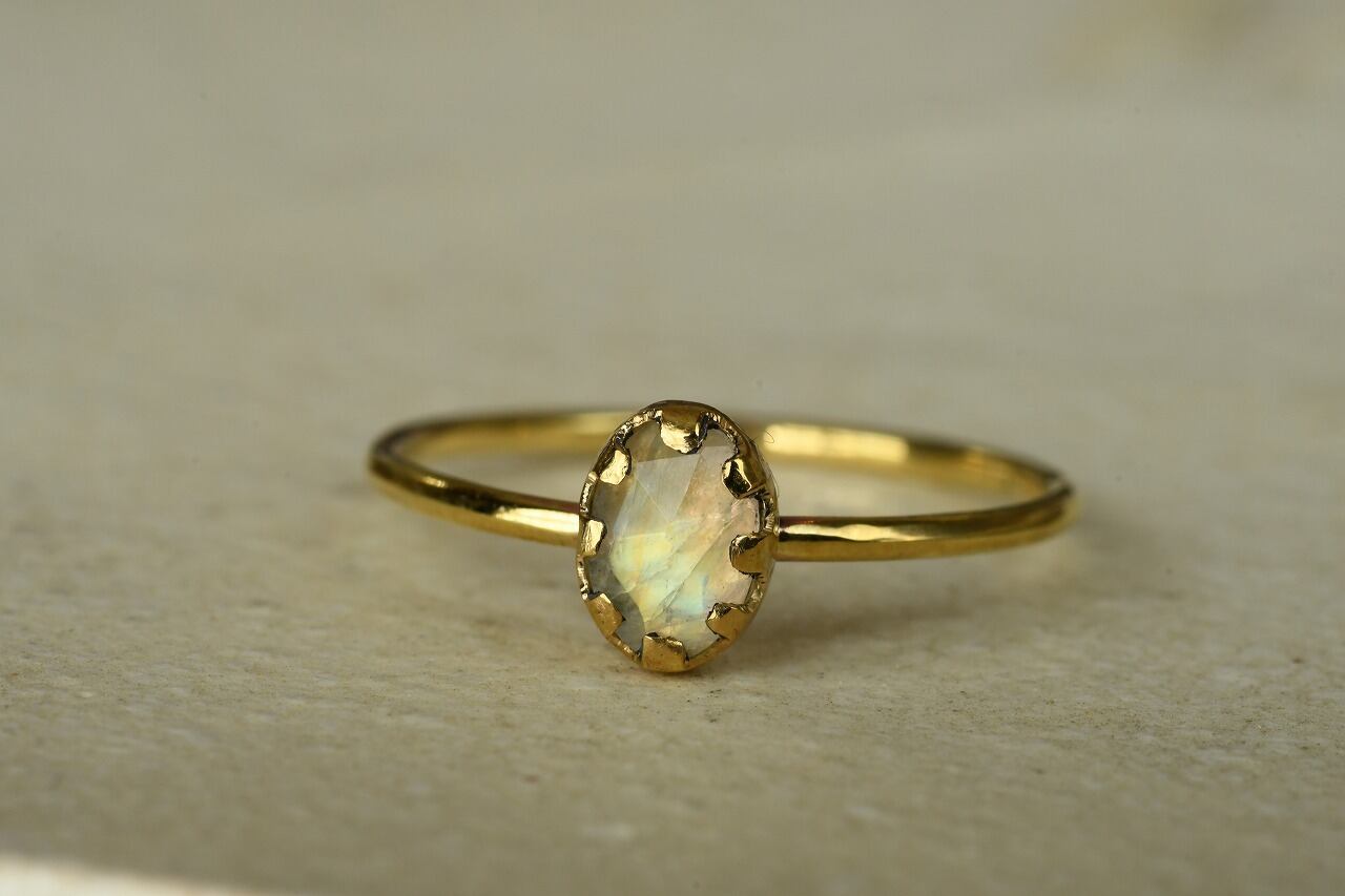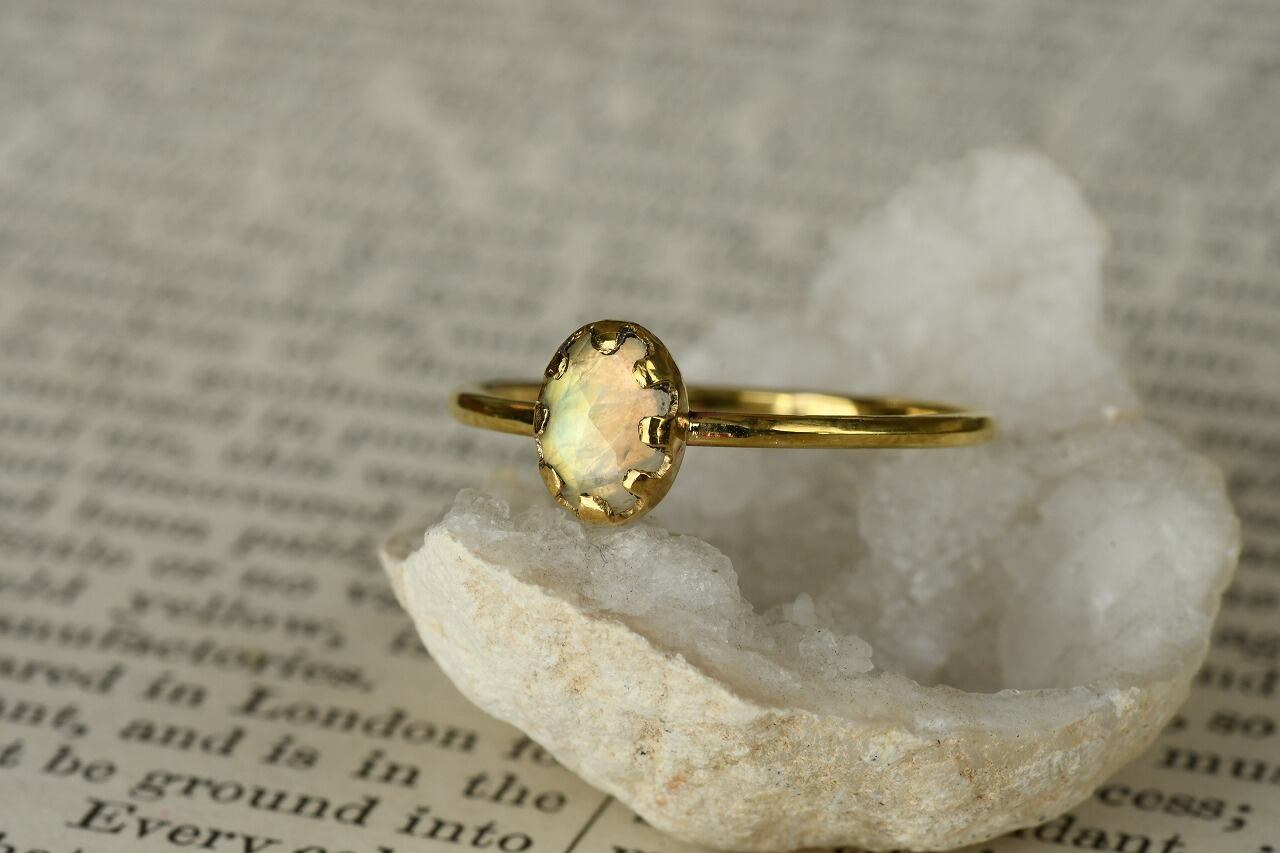 時間の経過と共に落ち着いた色合いになっていく真鍮と美しくも優しい色のレインボームーンストーンの組み合わせを長い間じっくりと楽しんでもらえたらと思います。