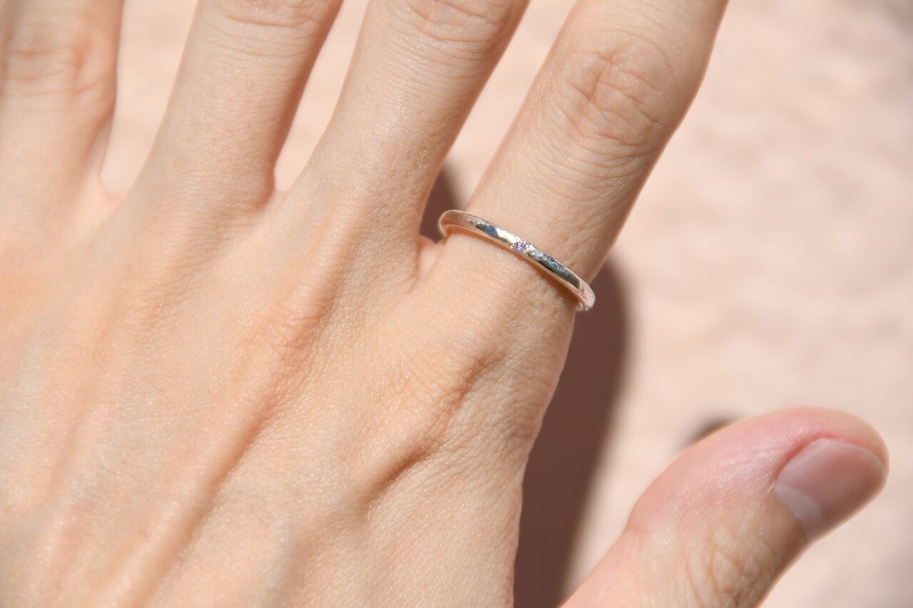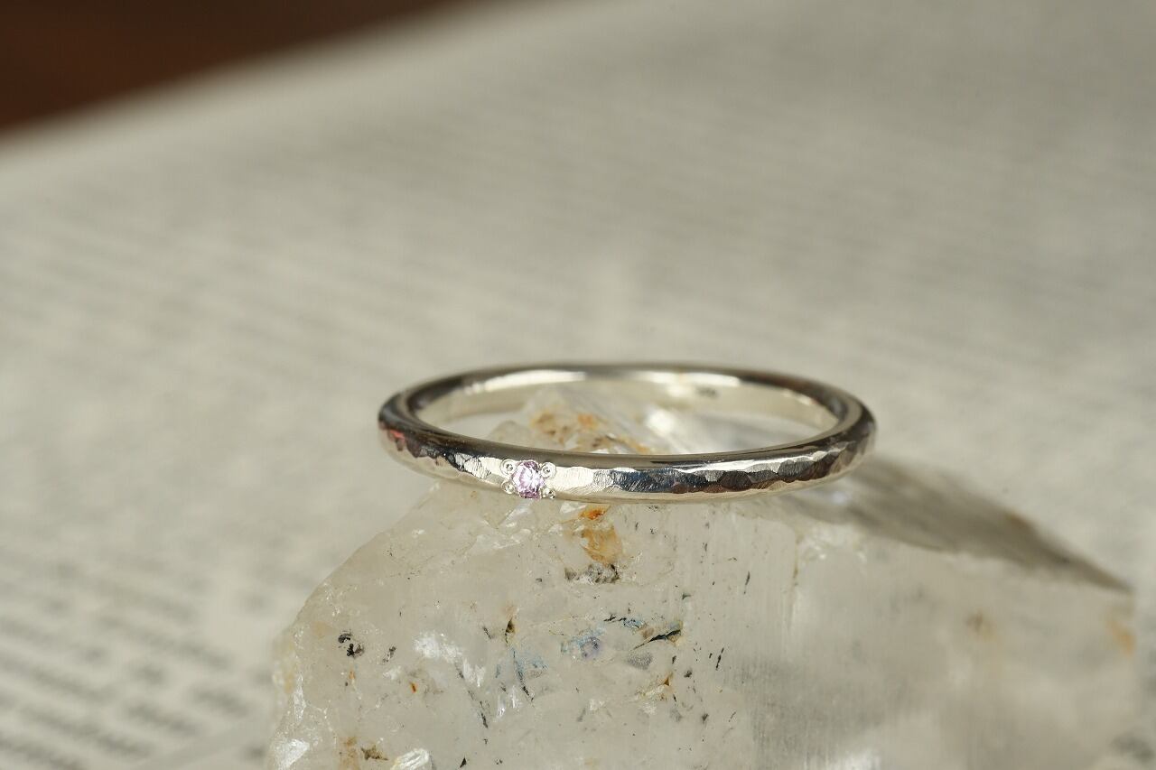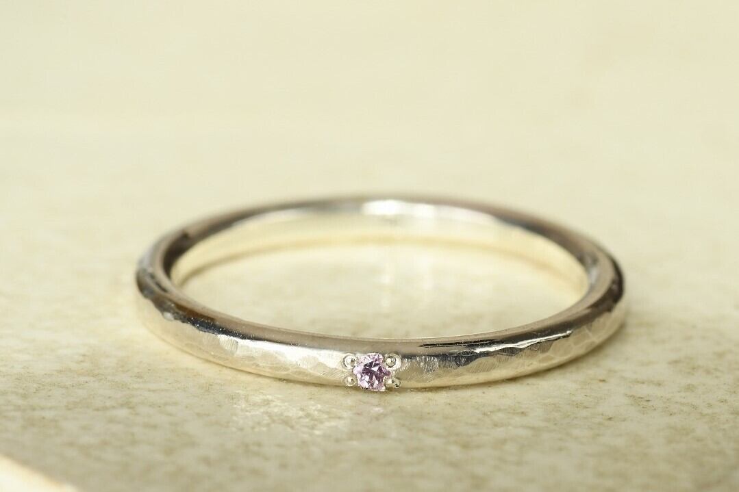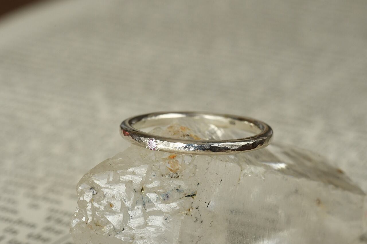 ピンクサファイアの美しい色は他にもあるピンクの石たちともまた異なる魅力がある色でシルバーと合わせることで可憐であり清廉なイメージを演出してくれました。