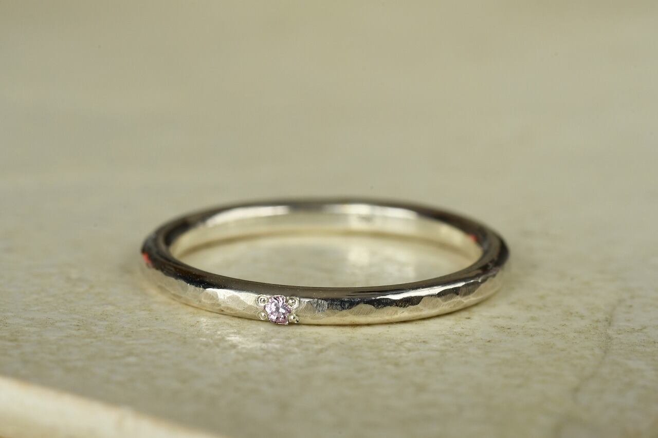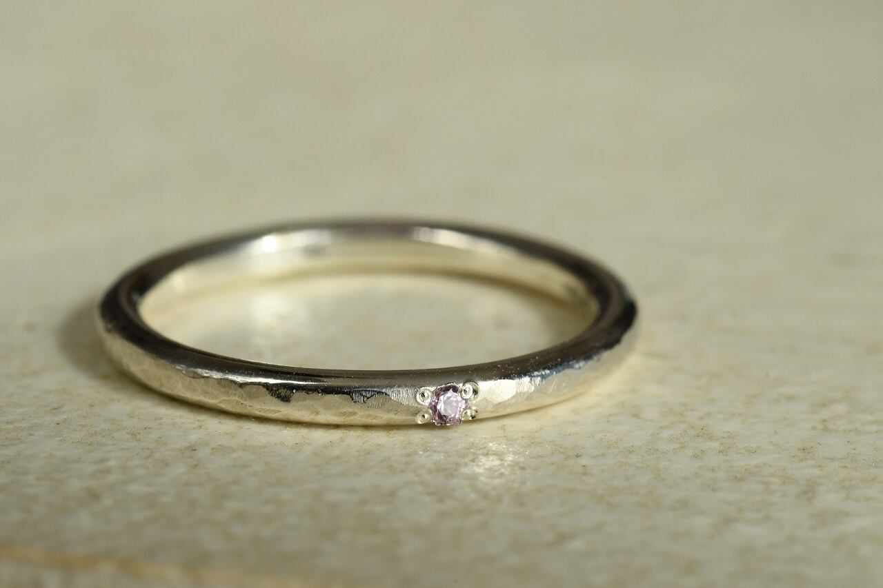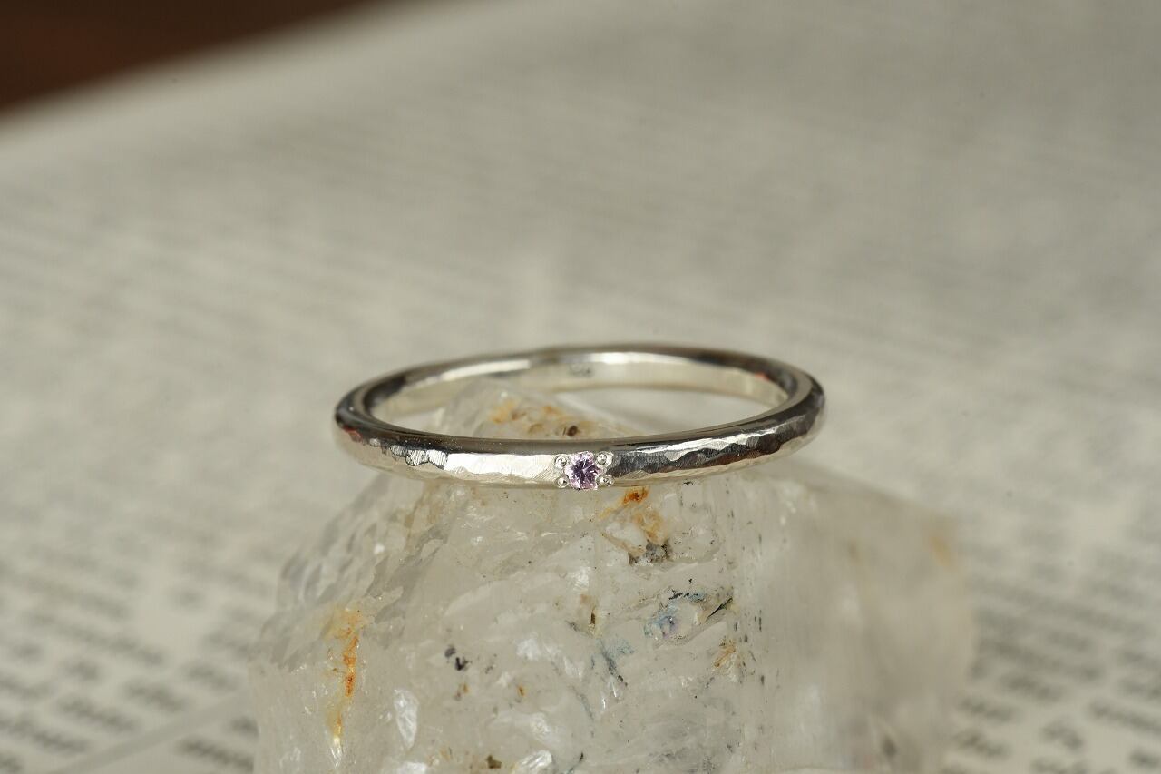 ピンクサファイアの美しい色は他にもあるピンクの石たちともまた異なる魅力がある色でシルバーと合わせることで可憐であり清廉なイメージを演出してくれました。