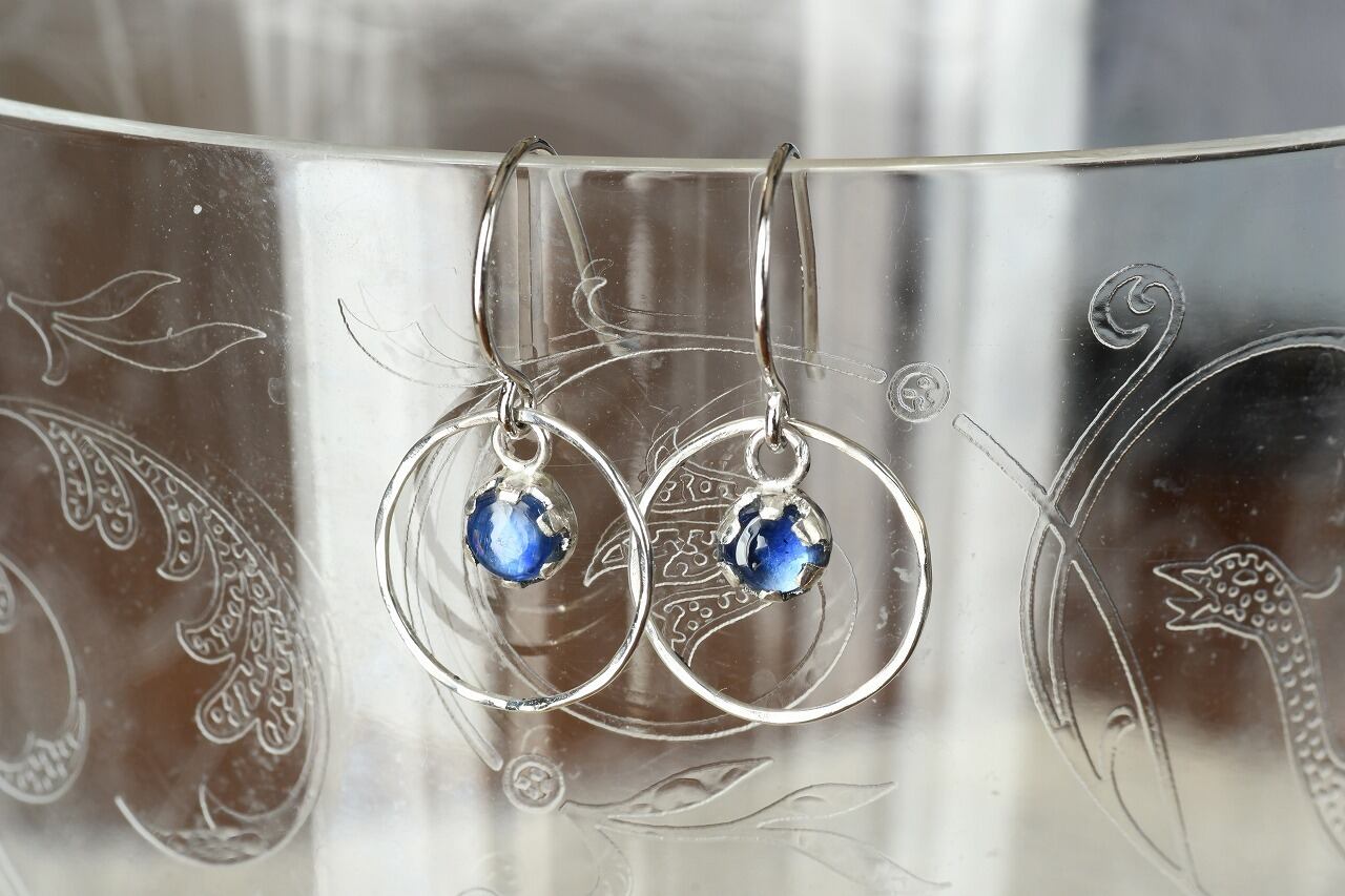 特定の方向に対しては非常に割れやすく、特定の方向にはかなり割れずらいという性質をもつディスシーンと呼ばれる石で、見た目にも一つの方向に繊維がはっきり伸びています。宇宙から見た地球を思わせるような深い青が特徴の石で、依存心や甘えを除き、独立心や探究心、固定概念からの解放や、持つ人の世界観の確立を助ける効果があり、現実面も含め曖昧な物事を明確にクリアに整理するのにも役に立つようです