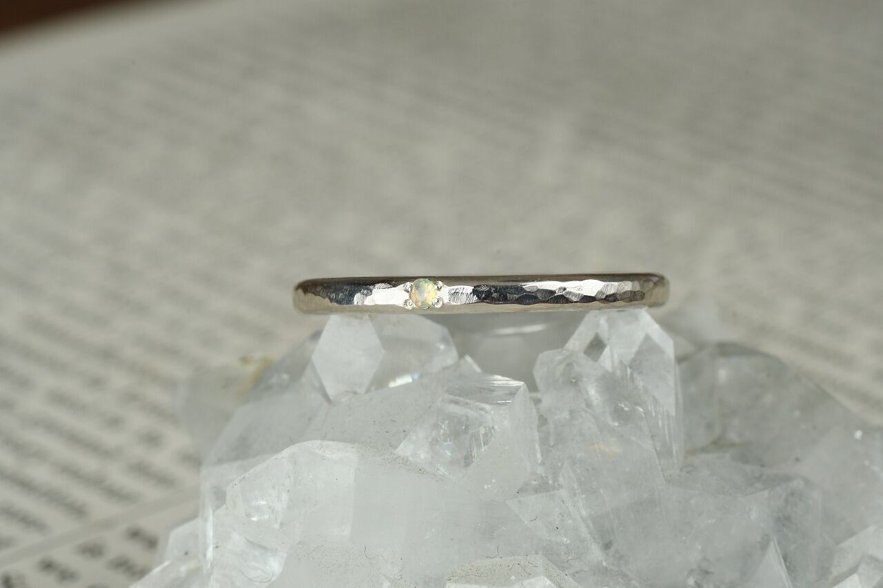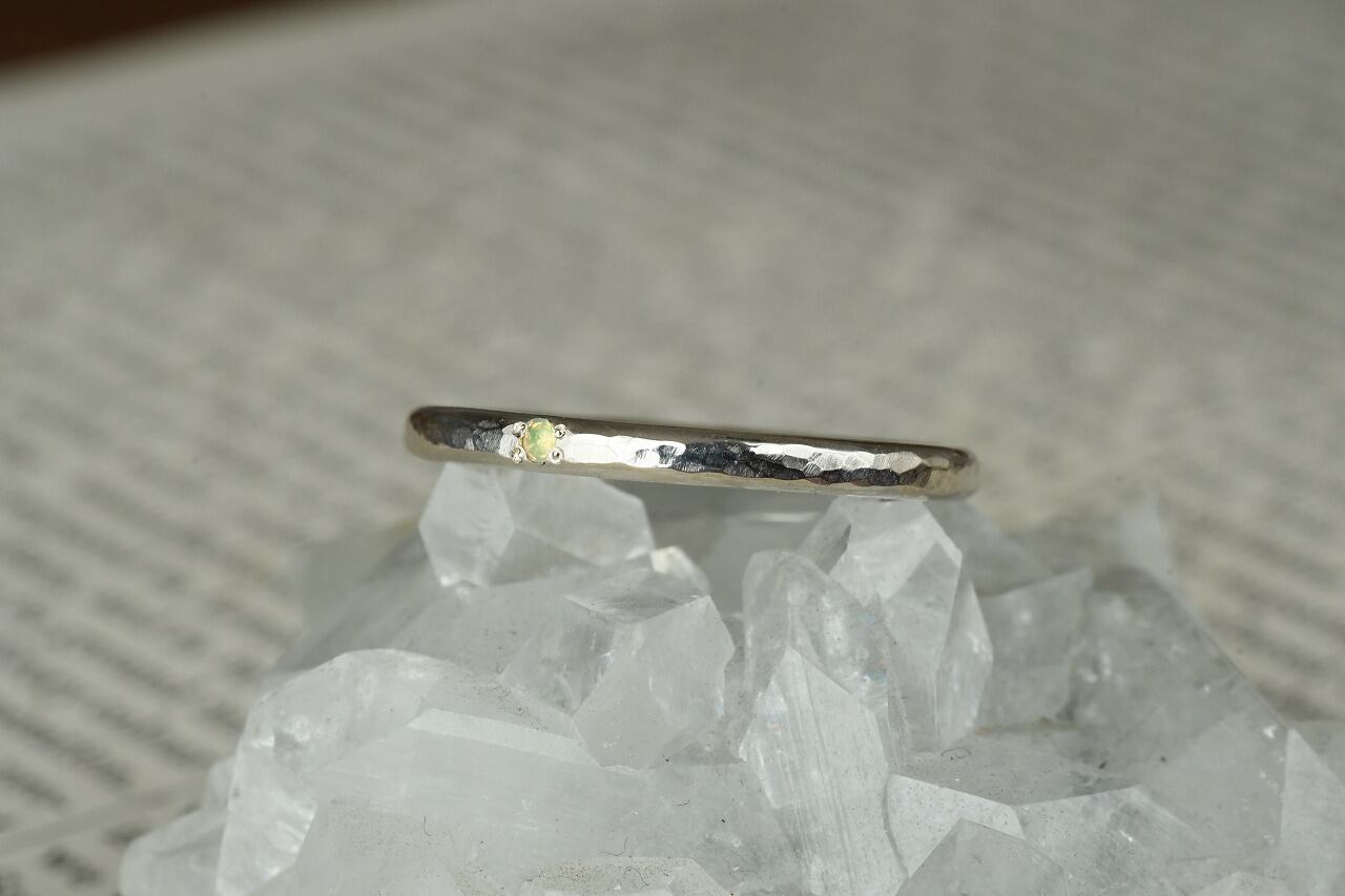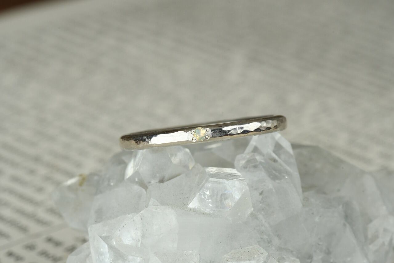 小さいながらも多彩な表情を見せてくれる美しいオパールとシルバーの組み合わせのリングです。