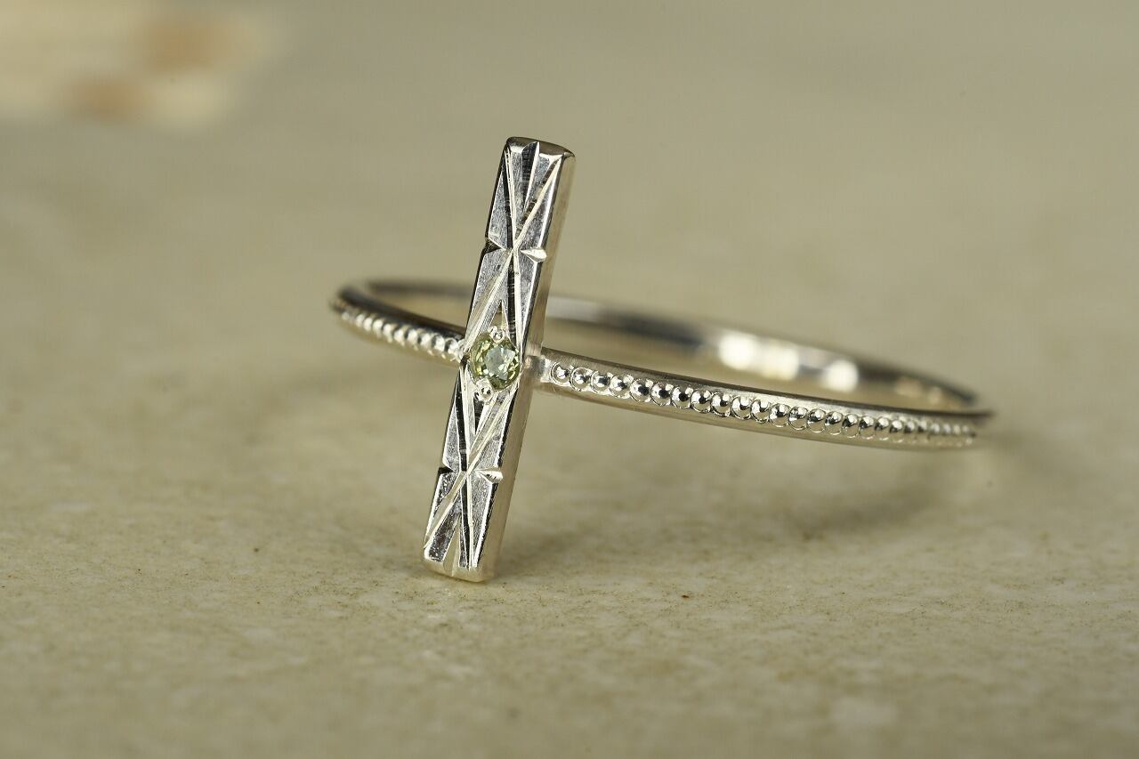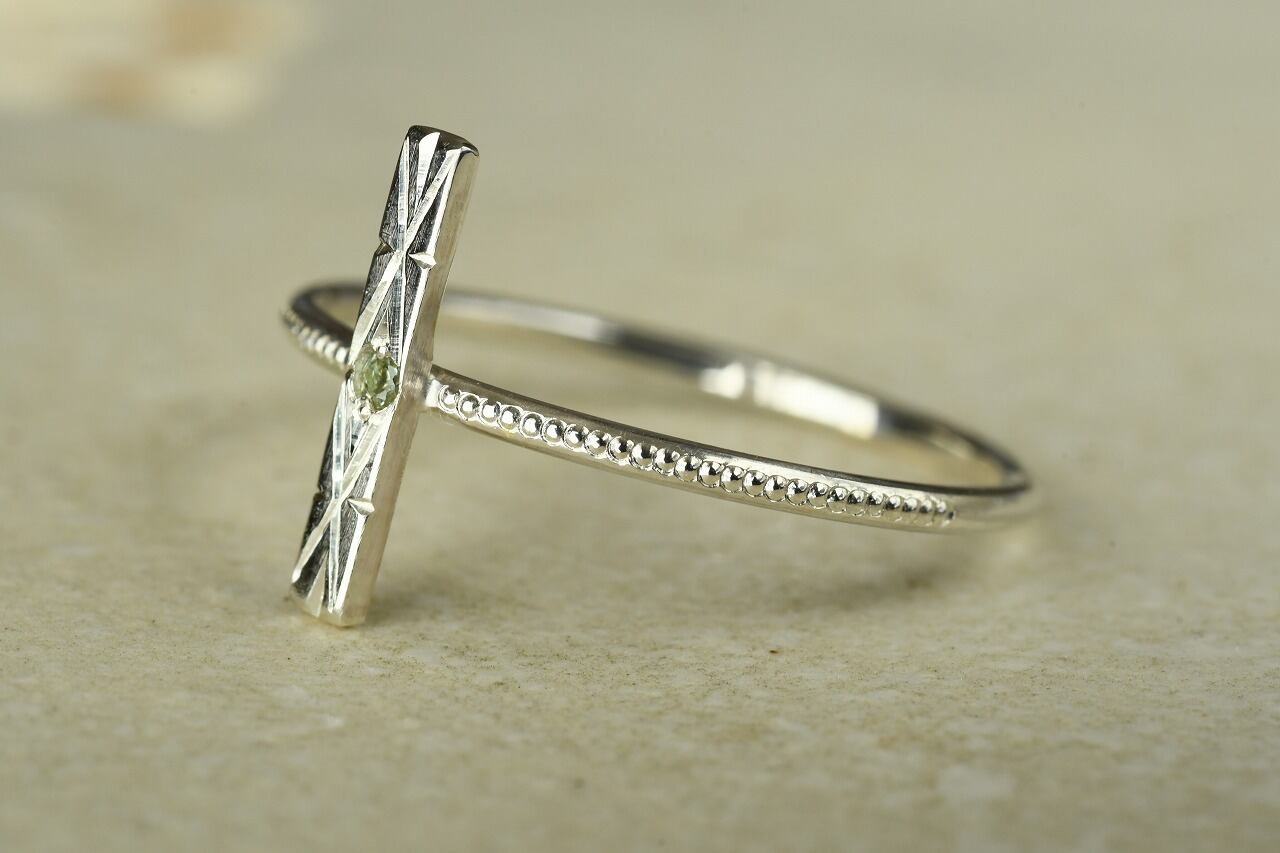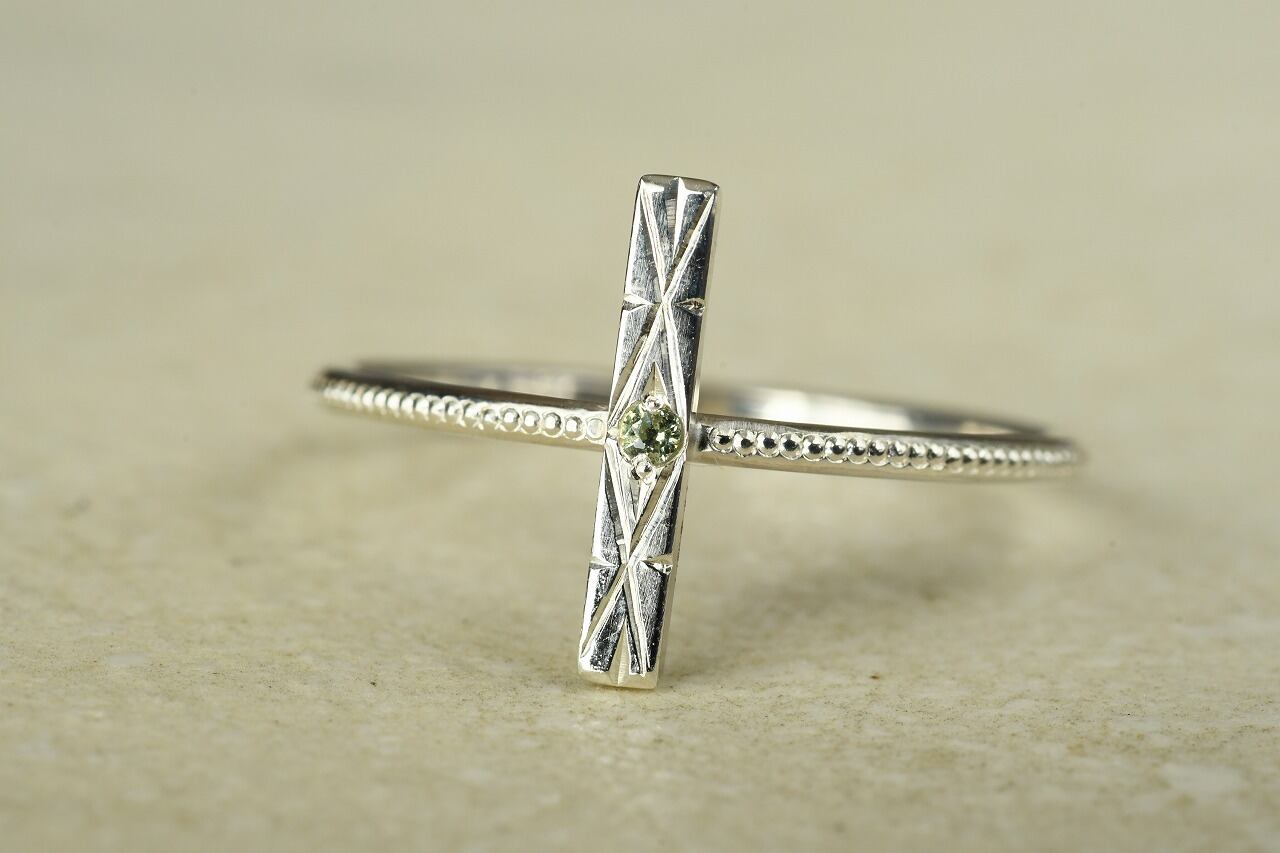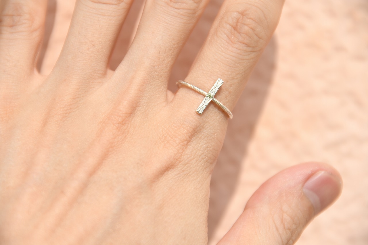 今回は美しい緑色のデマントイドガーネットとシルバーの組み合わせのリングです。