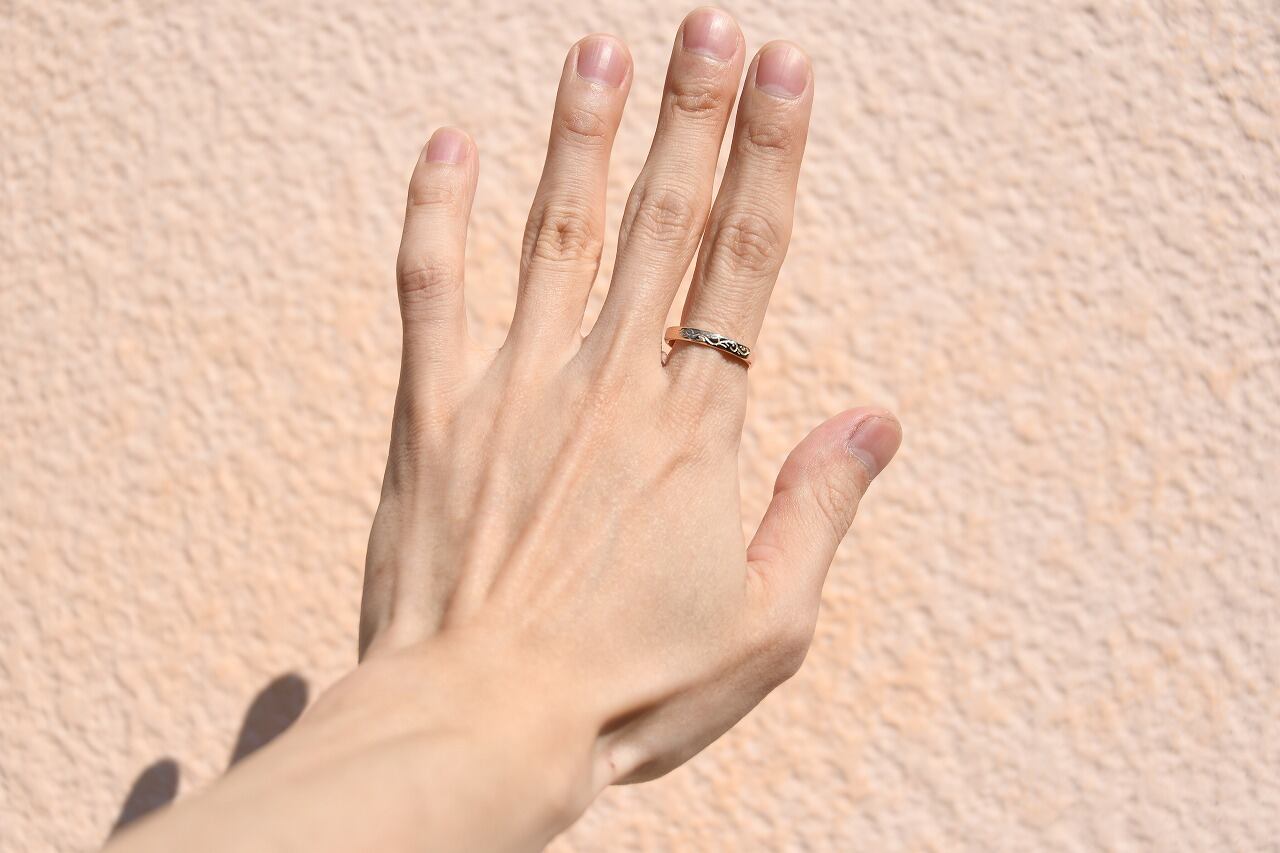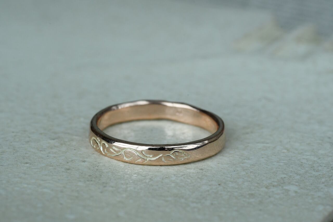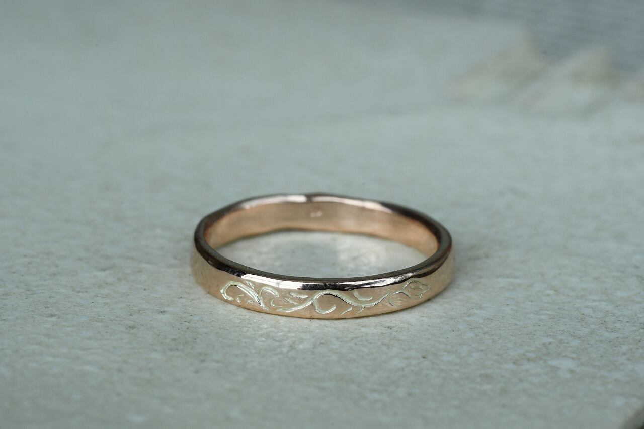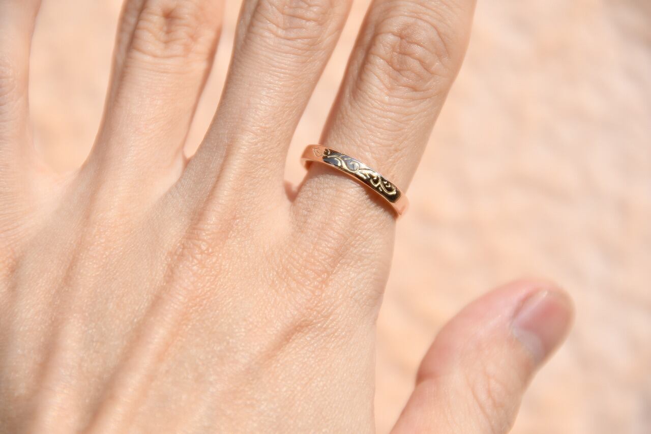 唐草自体はリングの1/4面にのみ彫ってあるシンプルなデザインです。