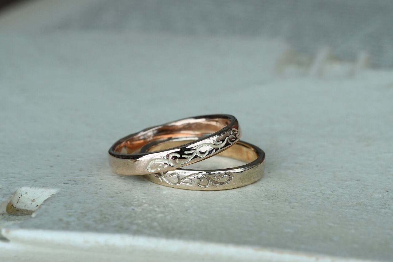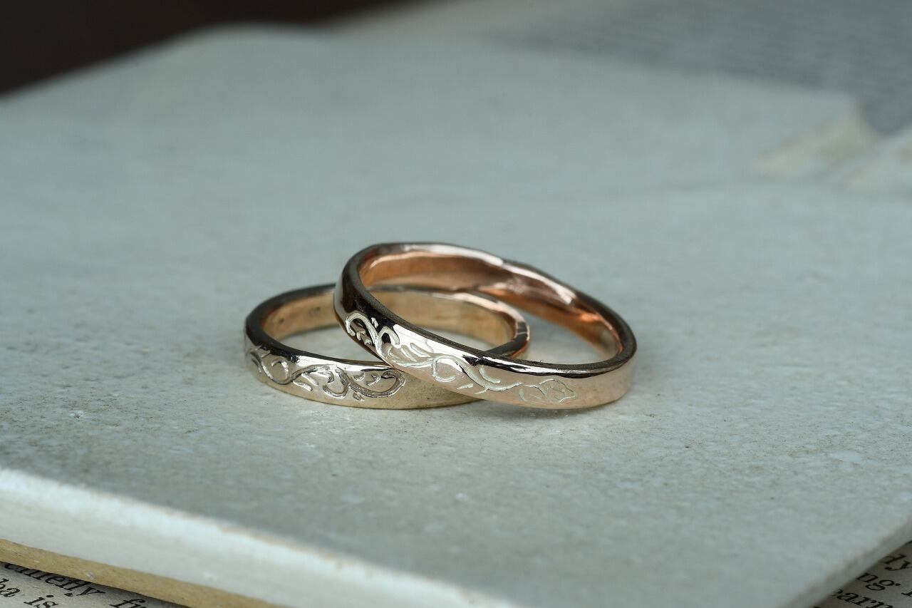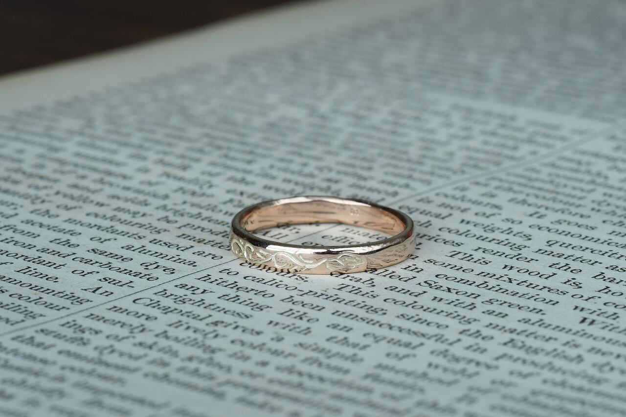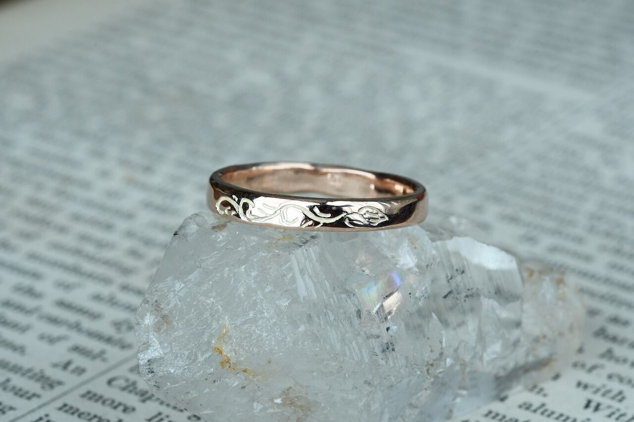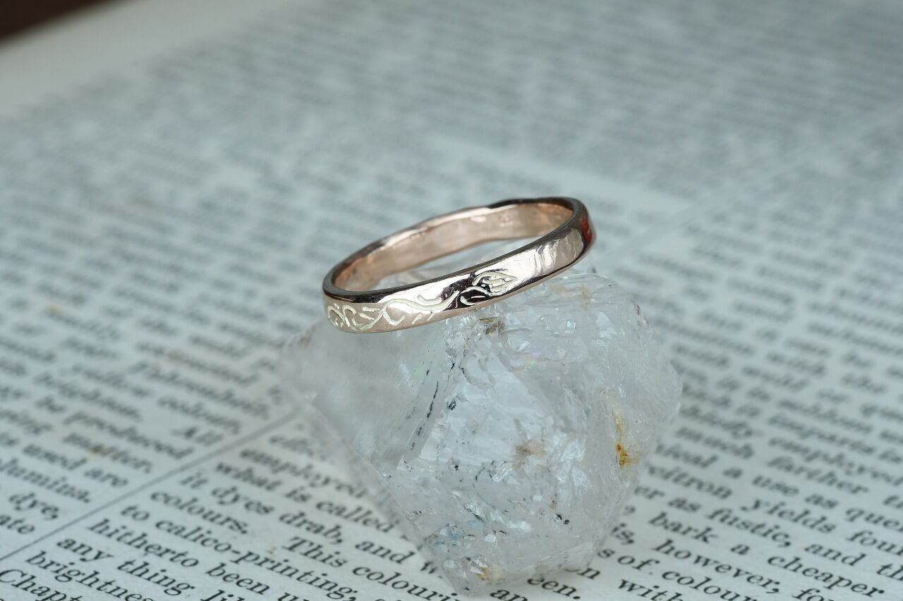 唐草自体はリングの1/4面にのみ彫ってあるシンプルなデザインです。
