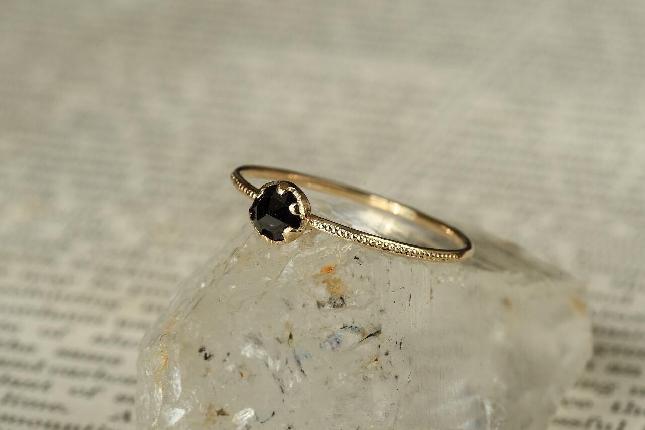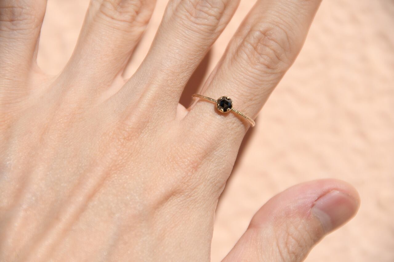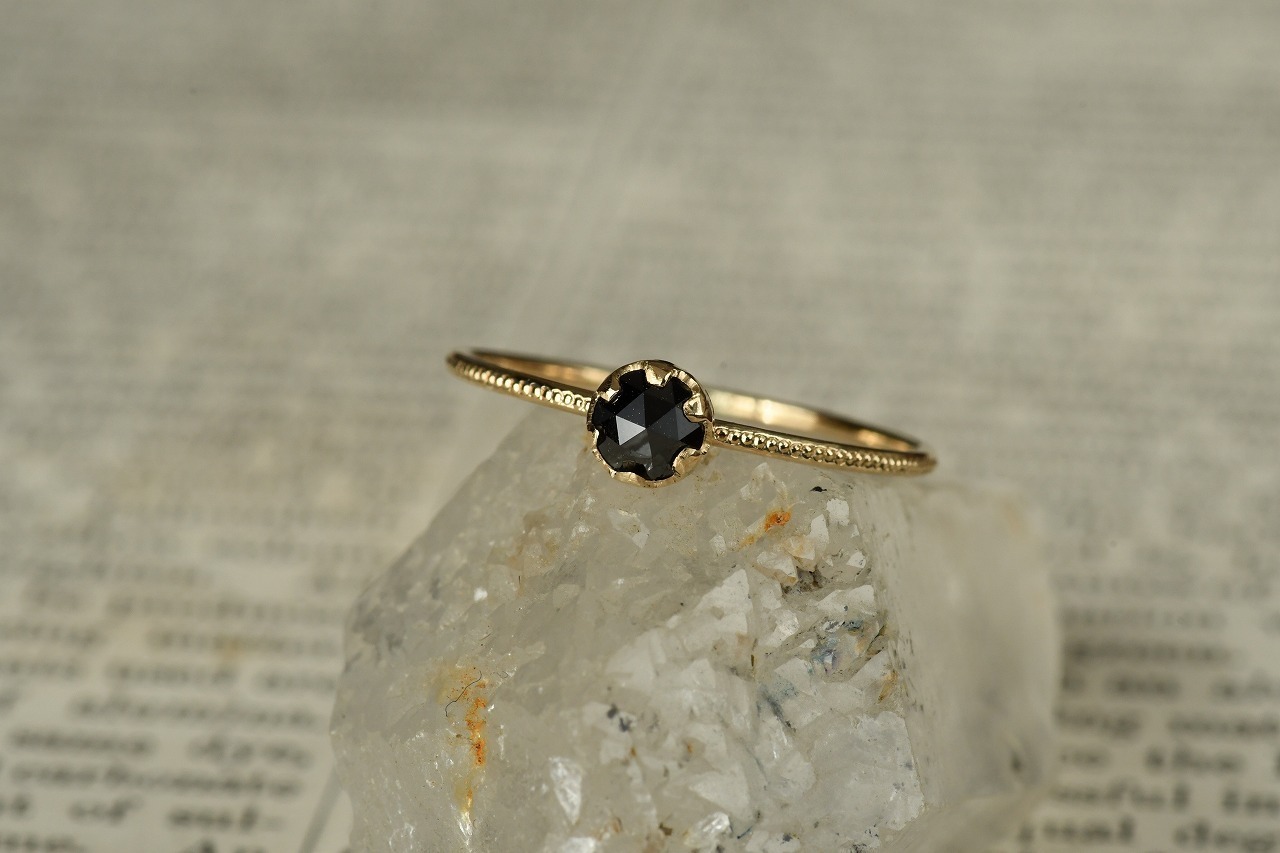 今回はローズカットの美しいブラックダイヤモンドと10金の組み合わせの作品です。