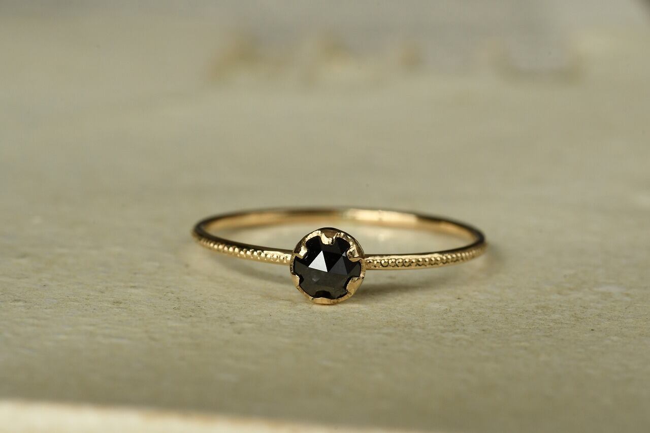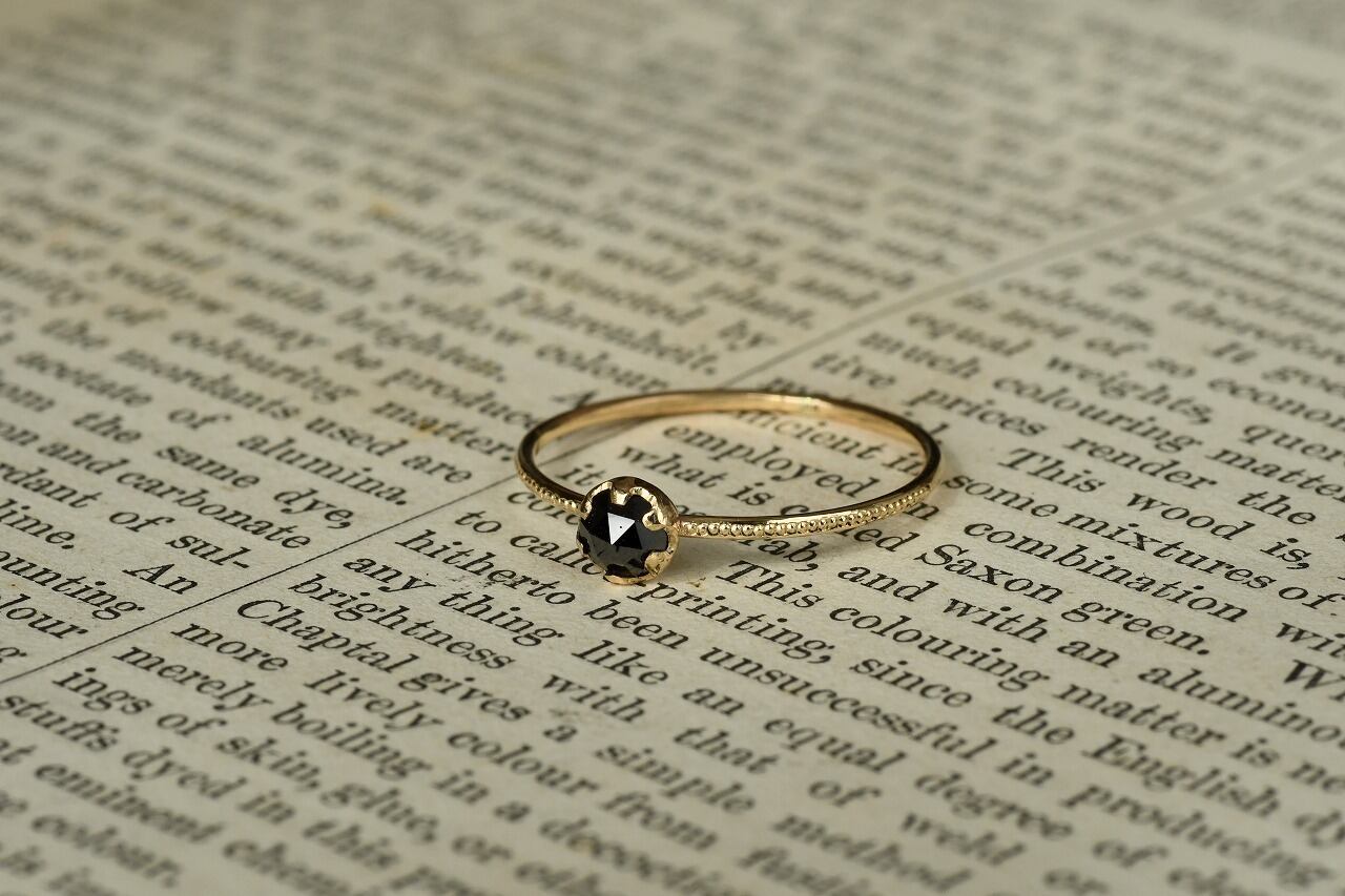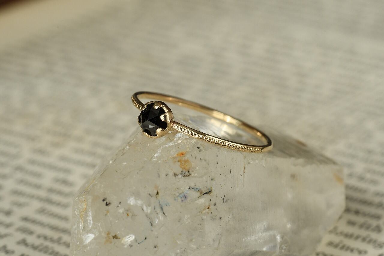 今回はローズカットの美しいブラックダイヤモンドと10金の組み合わせの作品です。
