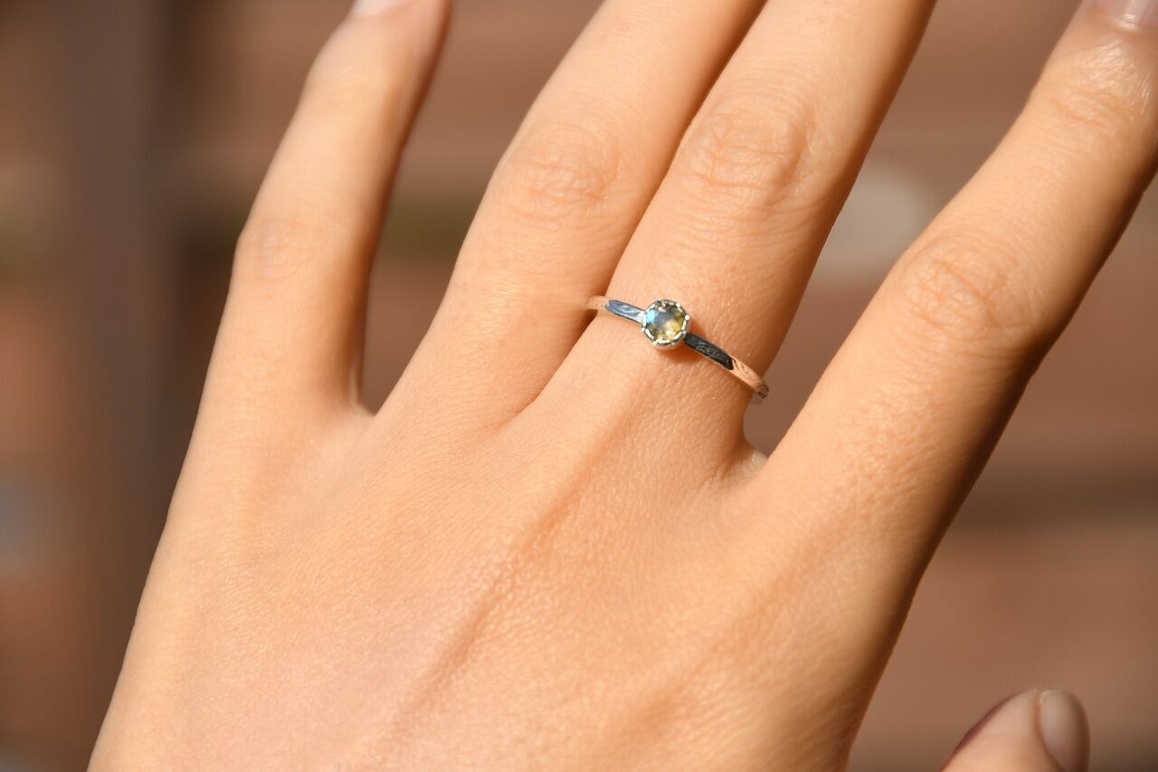 今回はシルバーとラブラドライト組み合わせのリングとして制作を行いました