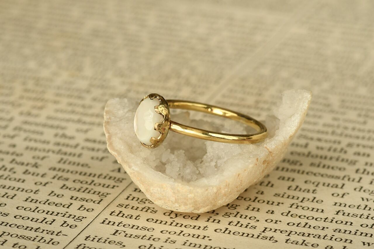 時間の経過とともにアンティークのように色を変化せていく真鍮との相性もとってもよさそうです。重ね着けにも適したデザインの作品で、特に『時を経る物語』という作品シリーズとの相性がいいので試しにご覧になってもらえたら幸いです。