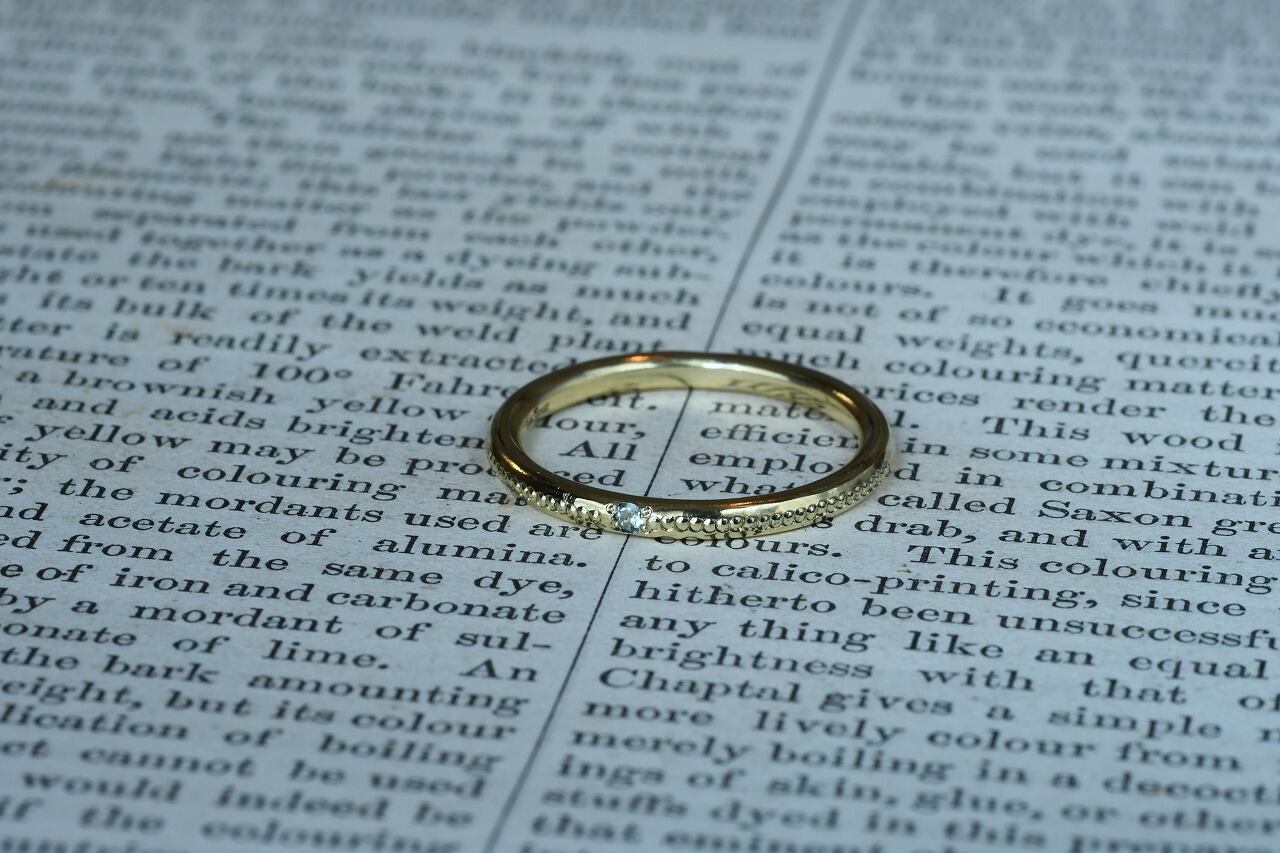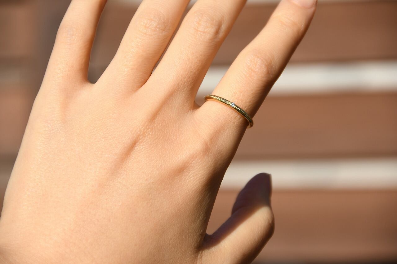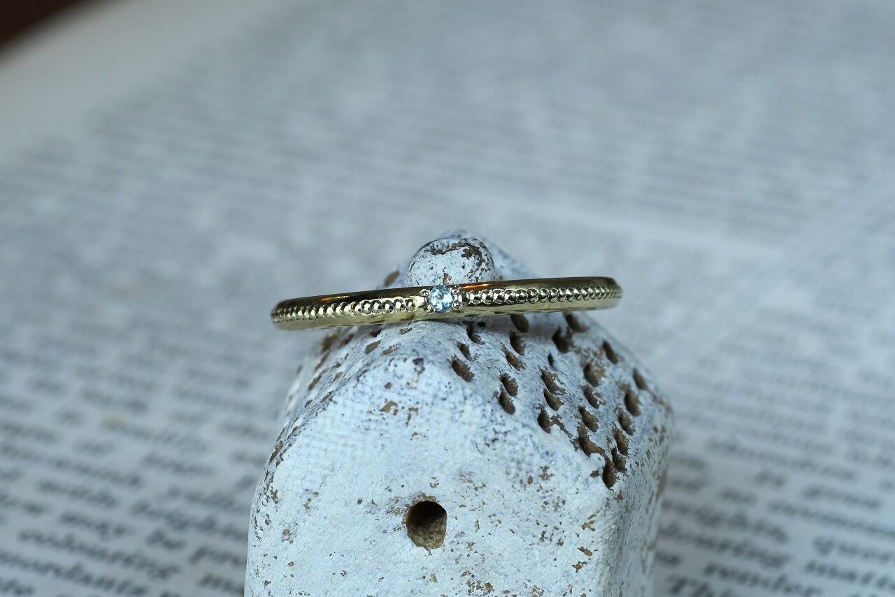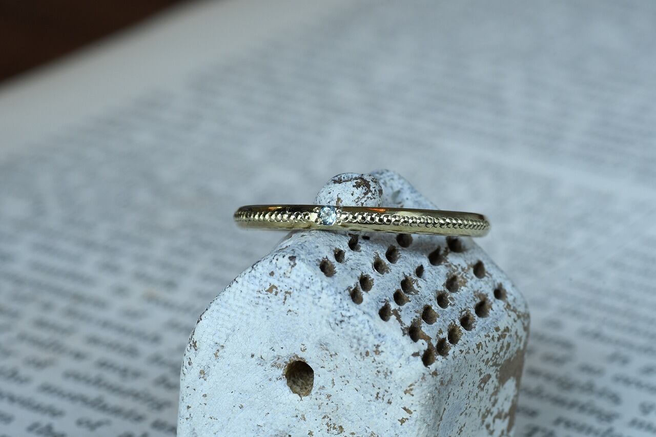 アトリエ Le Tour ここ数年人気があるシンプルなリングに一粒だけ石を留めた作品シリーズの新たなデザインとして制作を行ったのが今回の作品です。