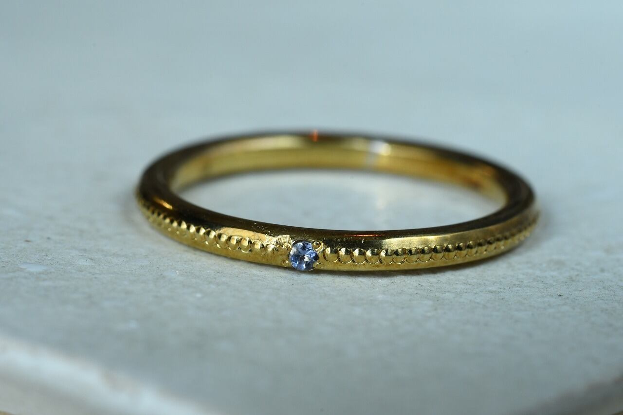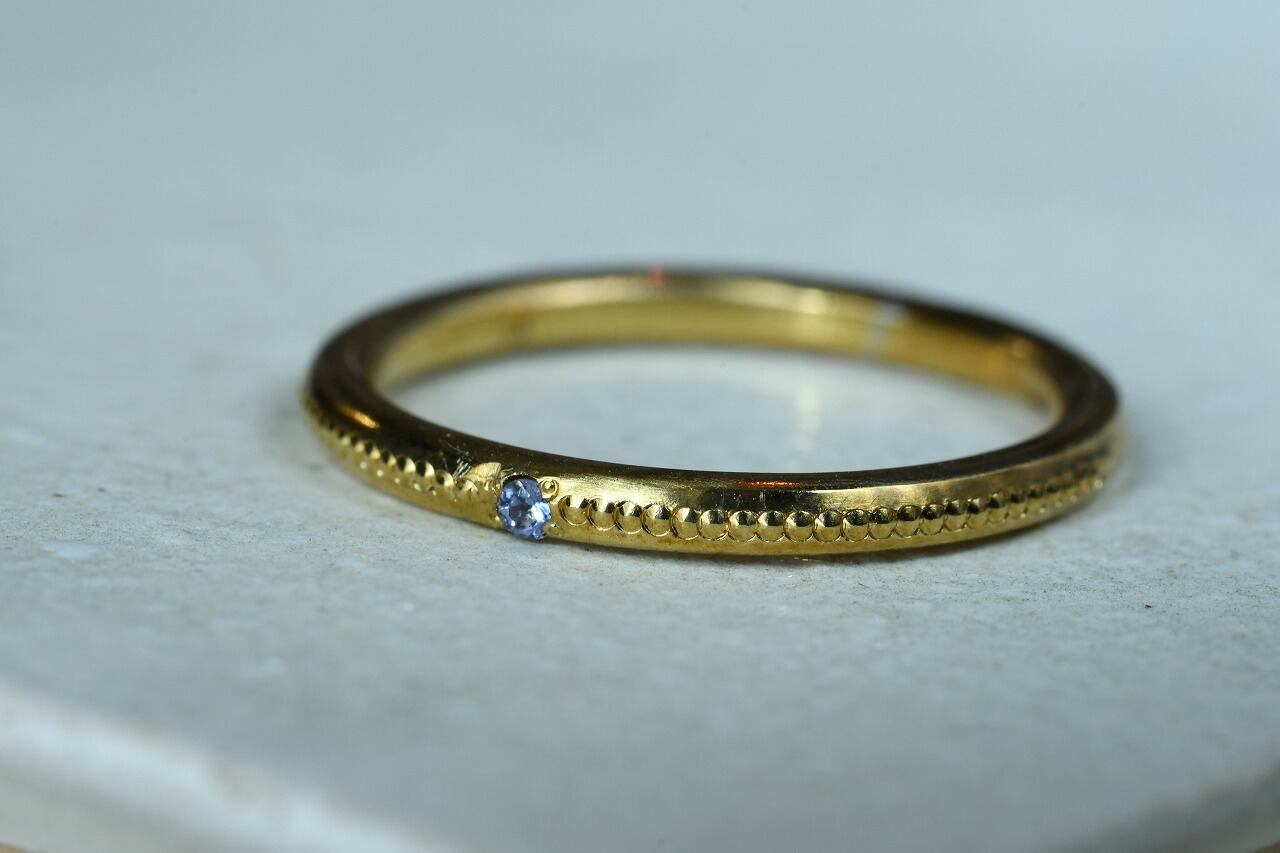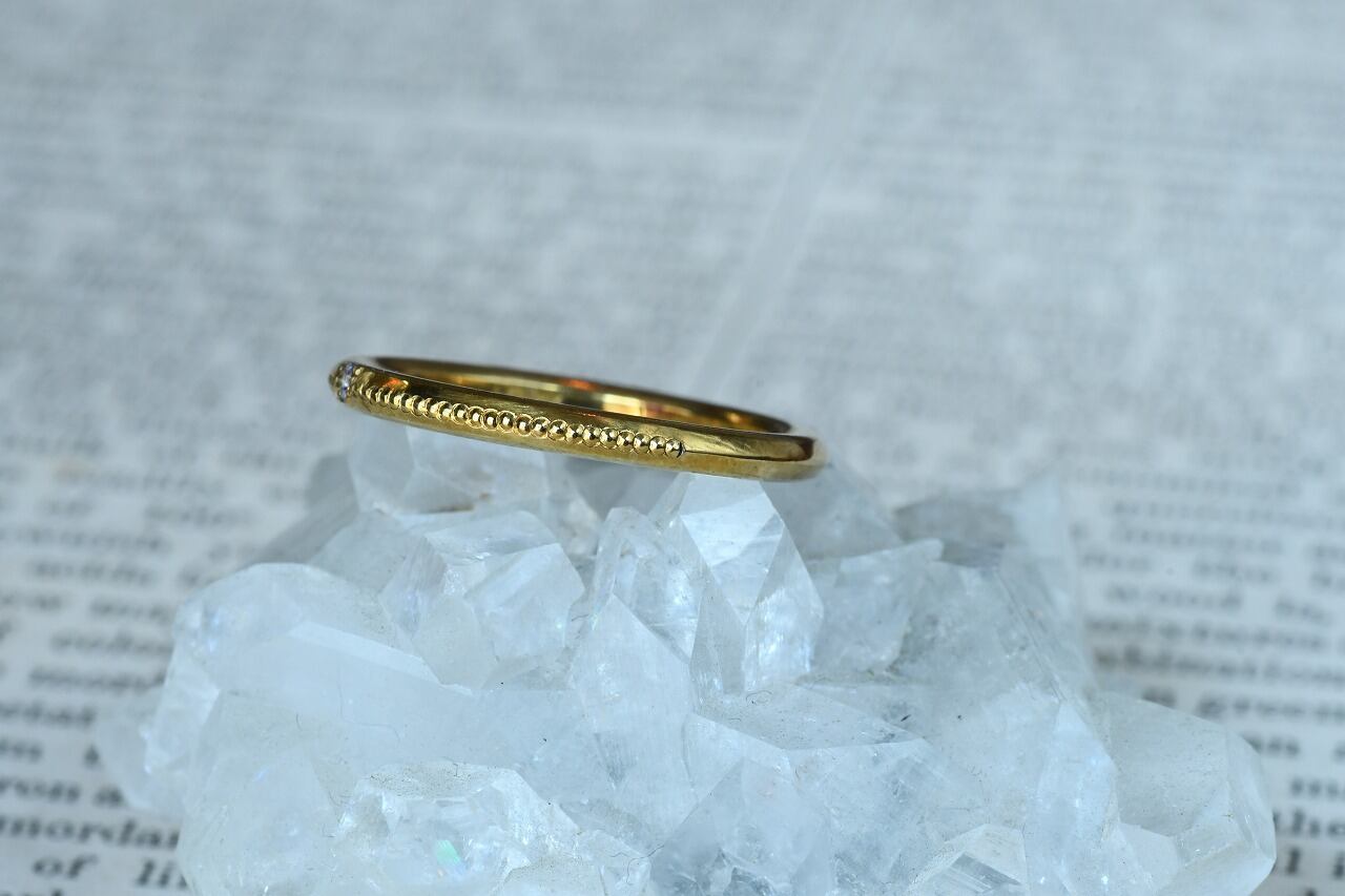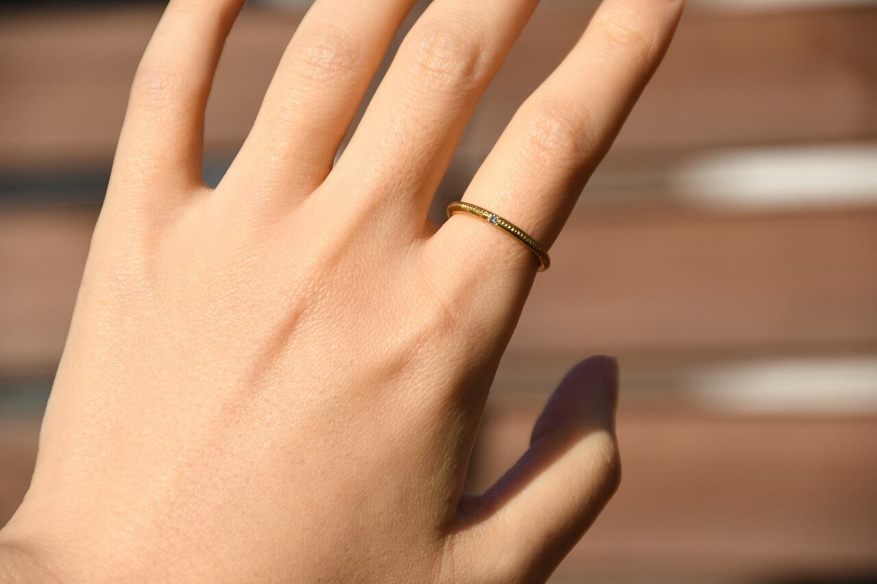 リングの半周にミルを打って一粒だけ石を留める