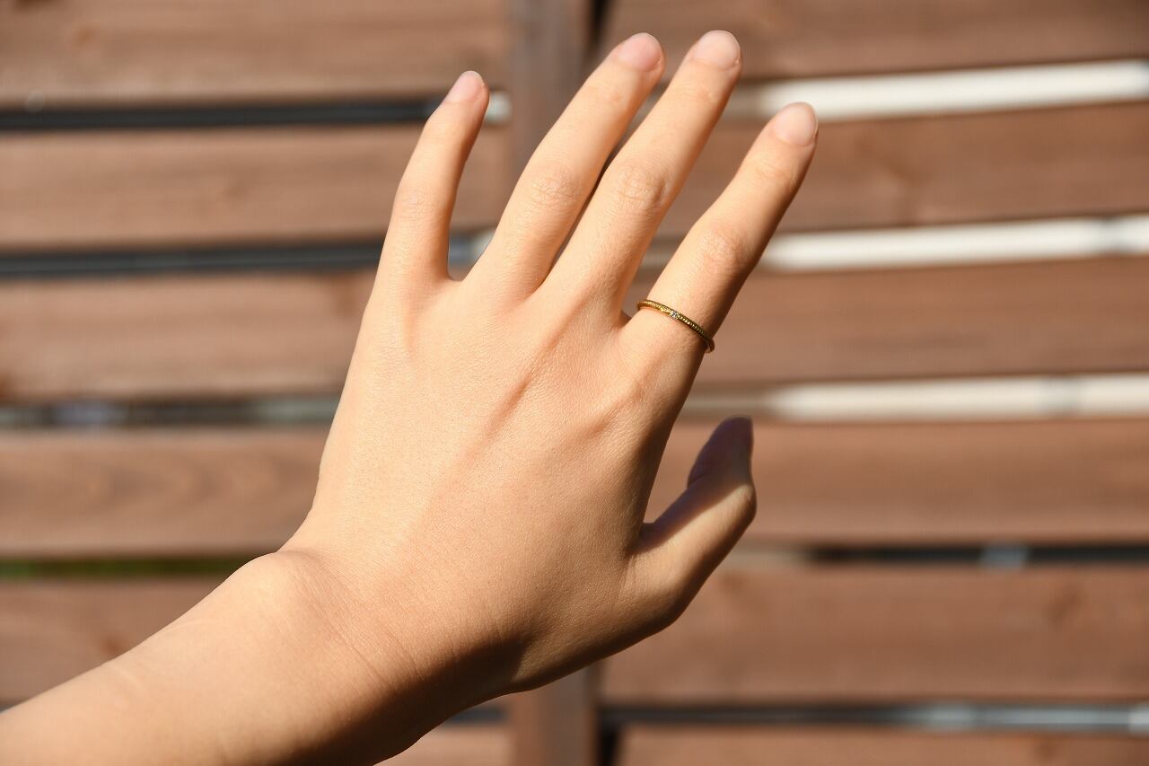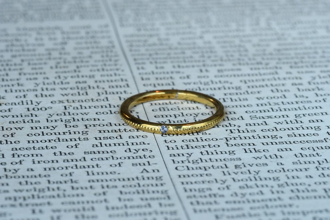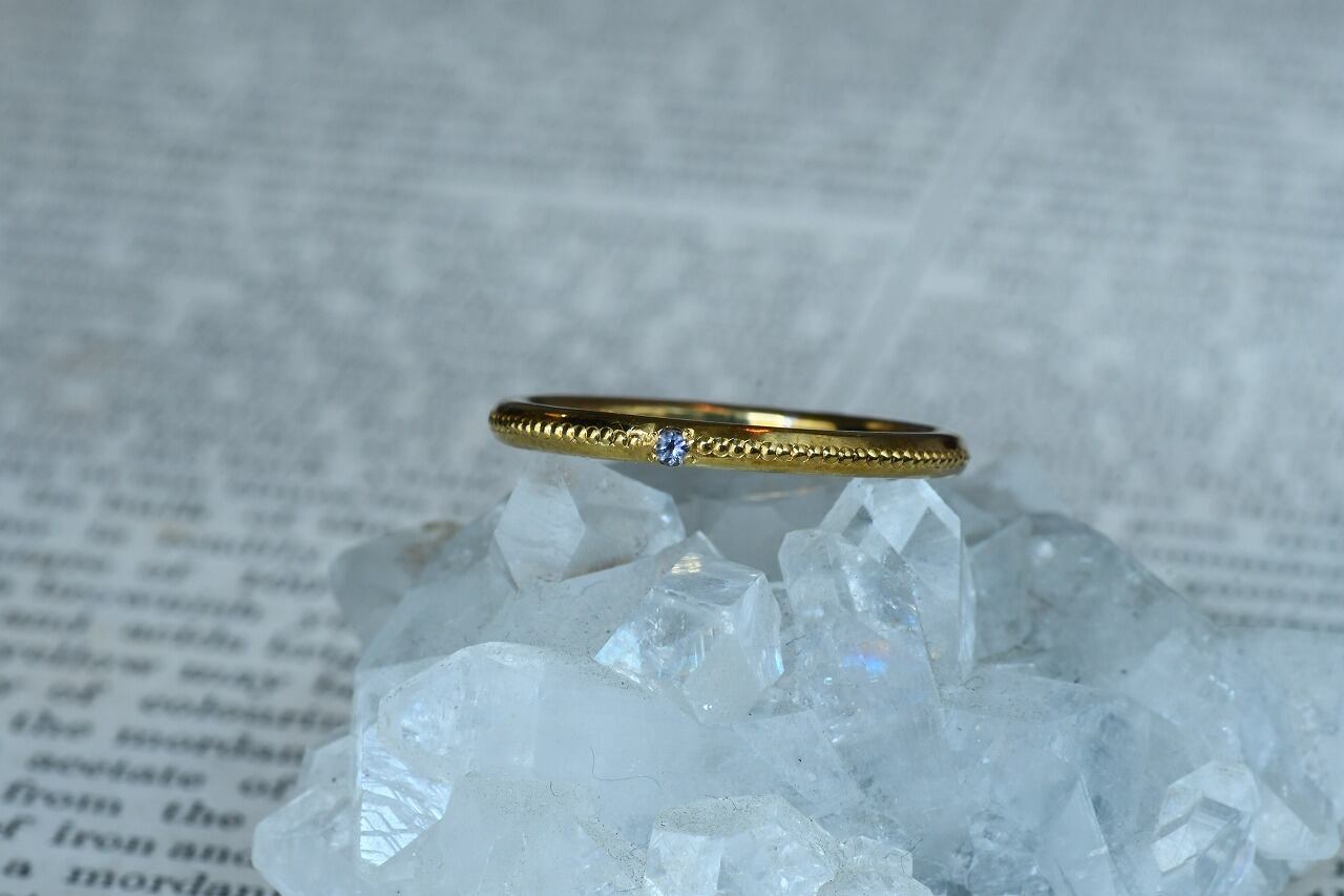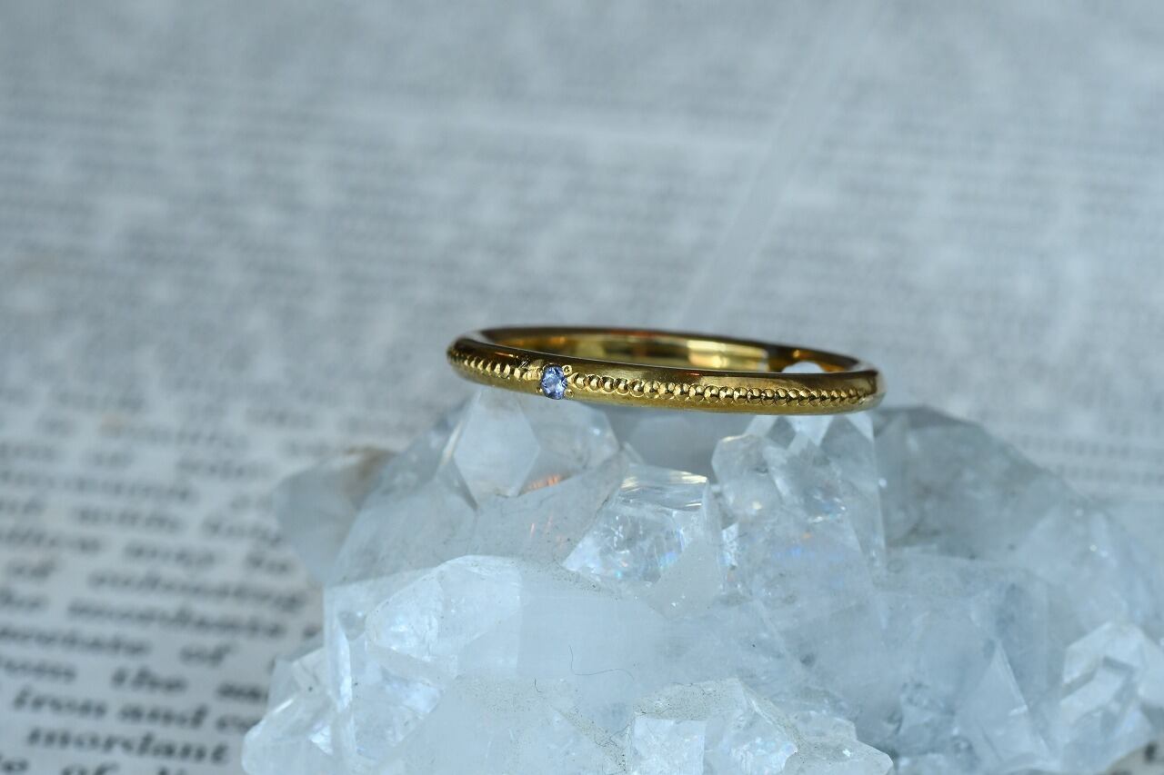 リングの半周にミルを打って一粒だけ石を留める